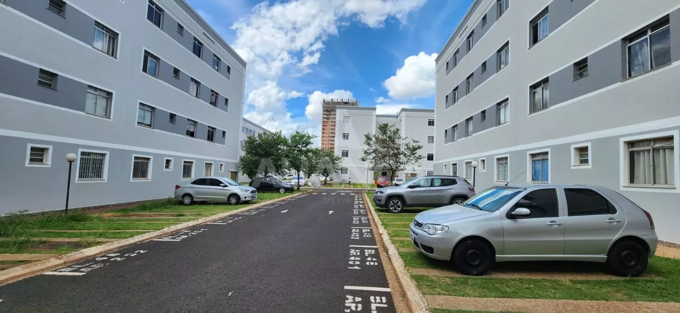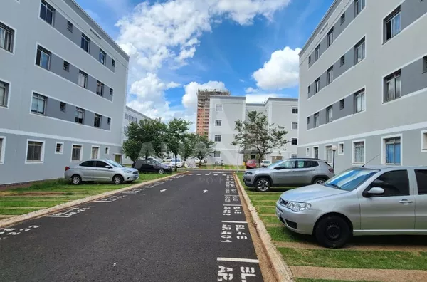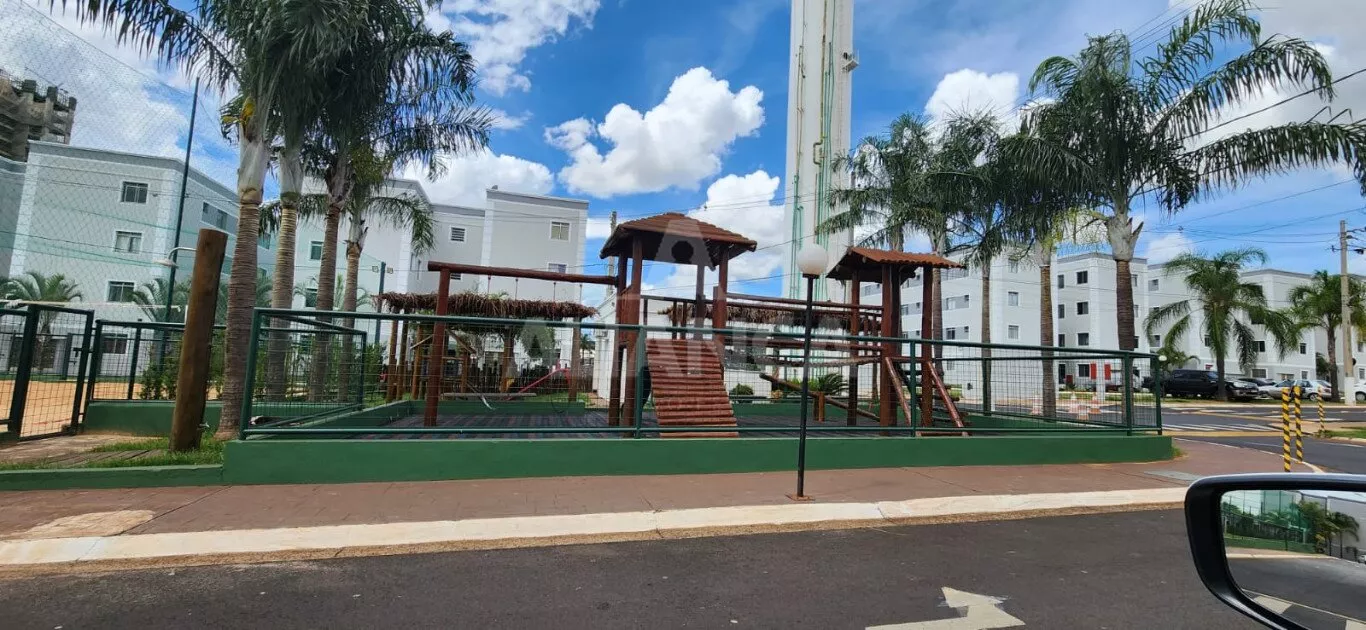 Sala de estar em 02 ambientes, 02 quartos, banheiro social com box, cozinha, área de serviços, ótimo acabamento, 01 vaga, play ground, quadra, campo society, churrasqueira, portaria 24 hr, próximo ao Uberlândia Shopping.