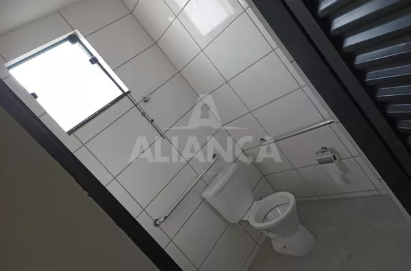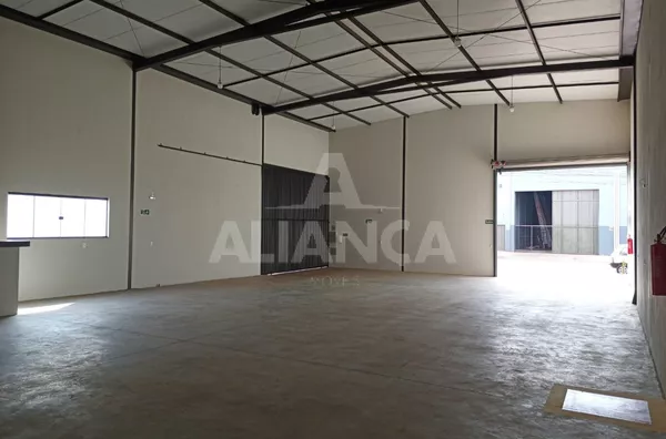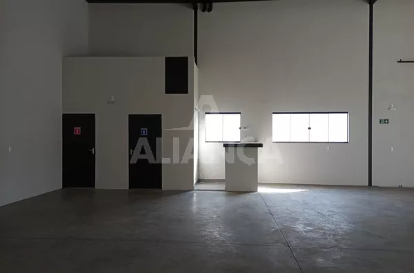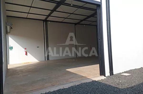 Galpão comercial medindo 240 metros de área útil, 100 metros de estacionamento privativo, recuo de 85 metros.