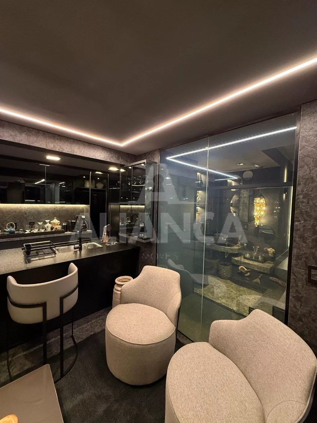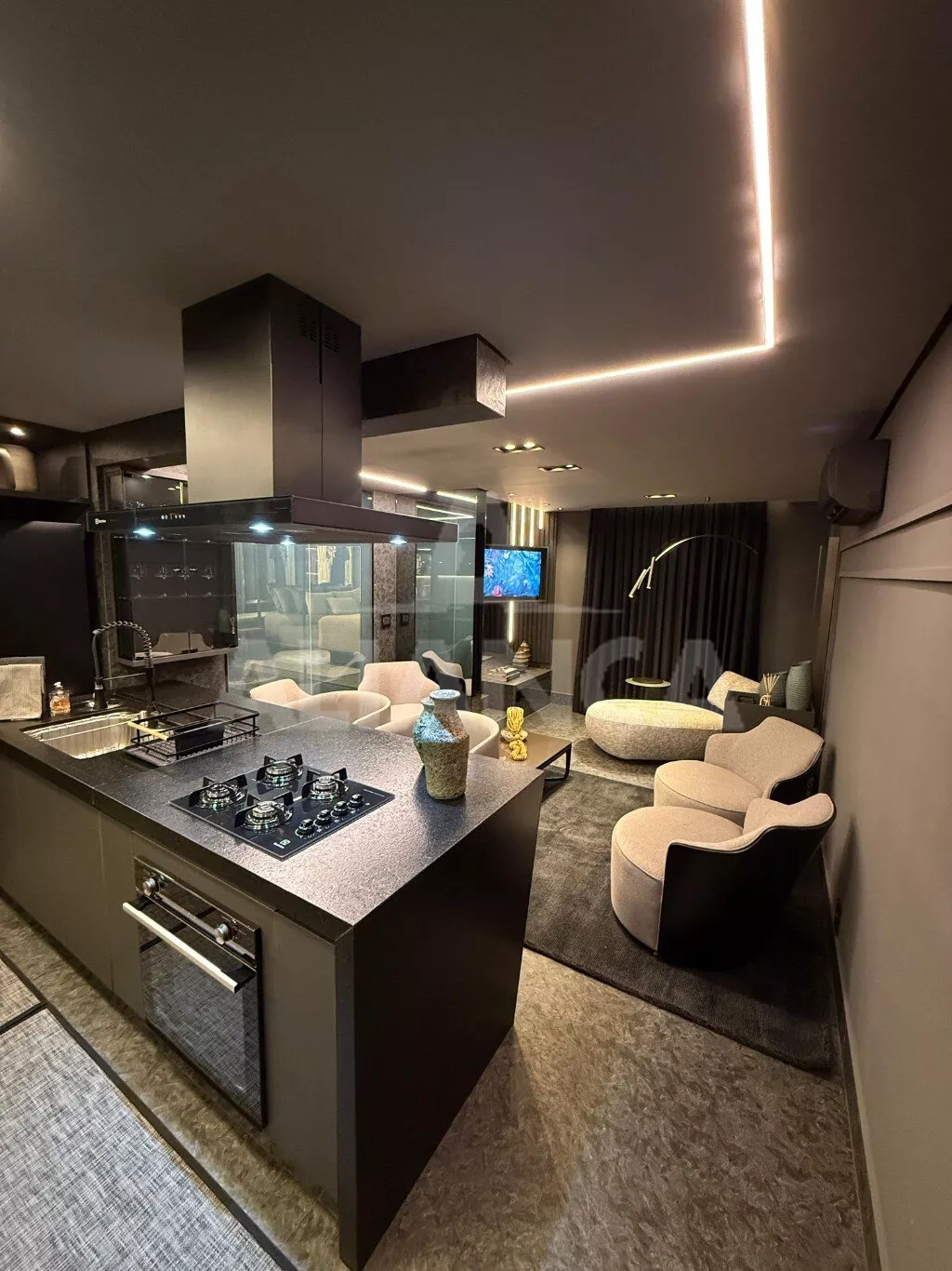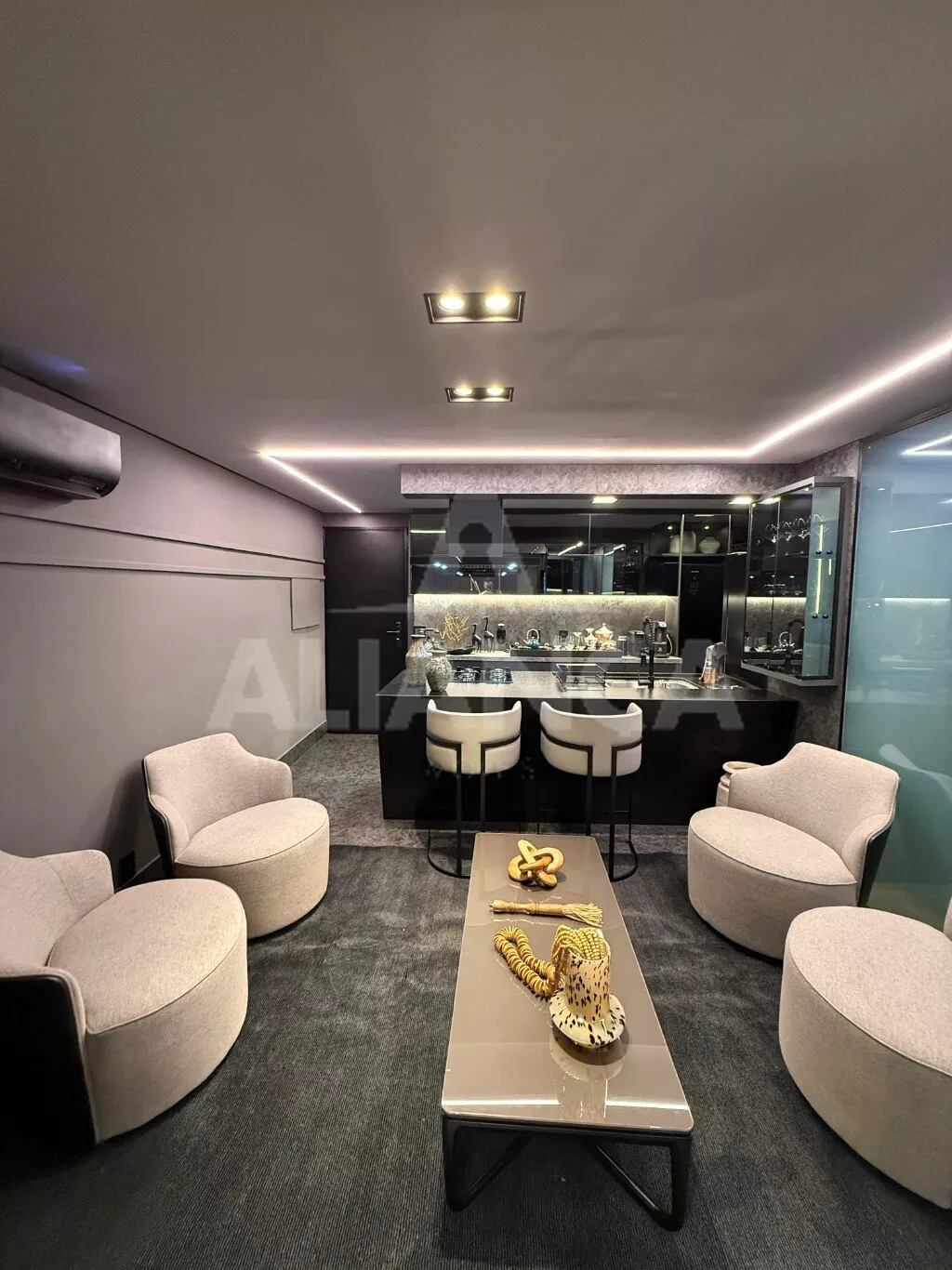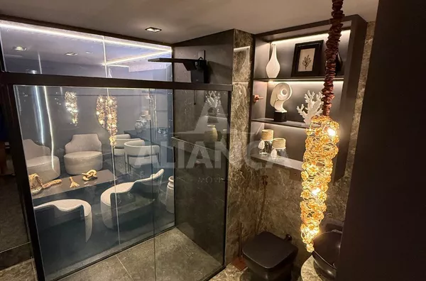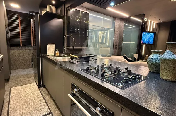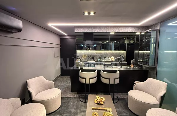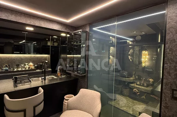 Apartamento mobiliado em alto padrão, estilo studio, sendo sala ampla, 01 suíte, banheiro social, cozinha com ilha, fogão cooktop, forno elétrico, área de serviço, 01 vaga de garagem, elevador, portaria 24 horas, ar condicionado, todo montado com armários e decorado, mobilias conforme as fotos, localização privilegiada a 100 metros do Praia Clube..