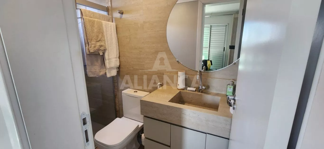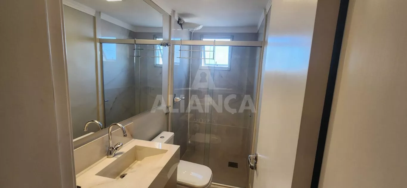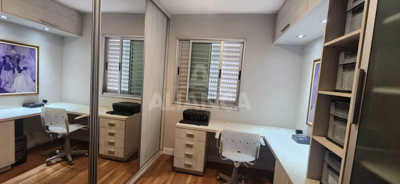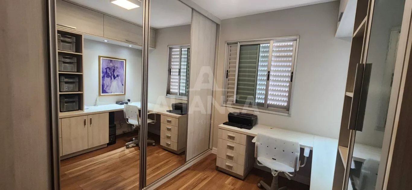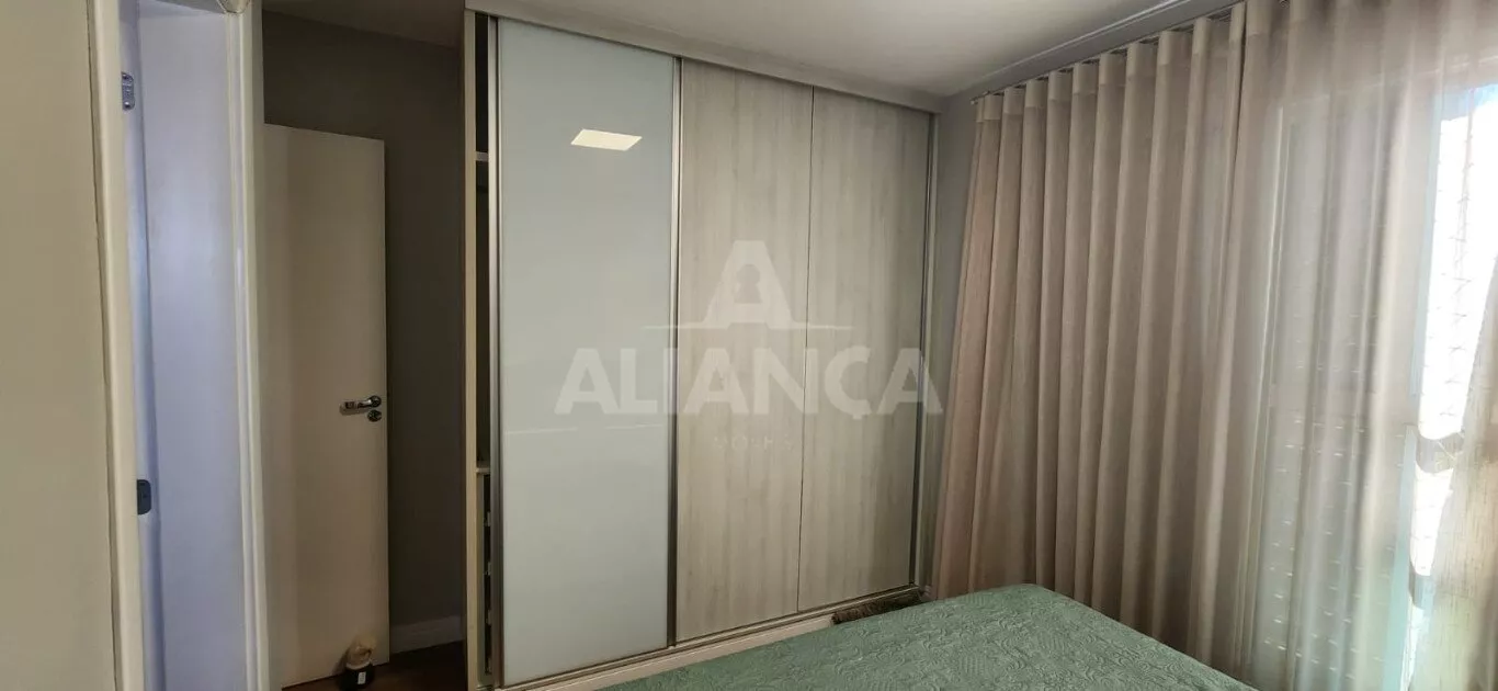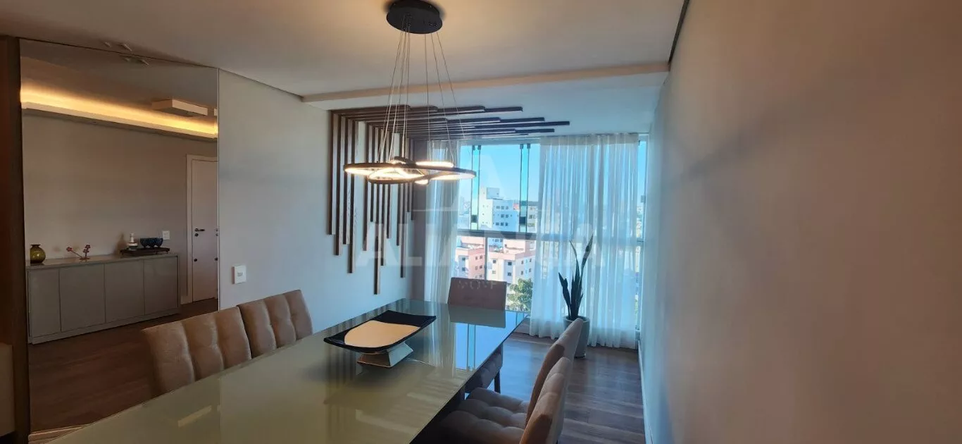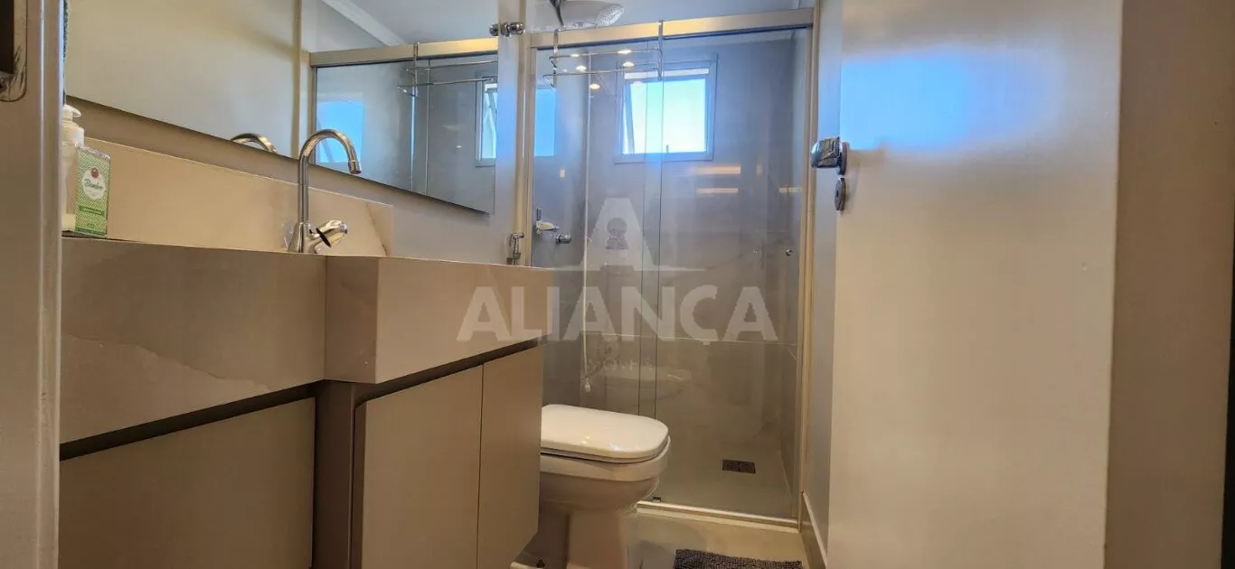 Apartamento todo mobiliado sendo sala em 02 ambientes com sofá, mesa com 06 cadeiras, painel, rack e TV, 03 quartos sendo 01 suíte todos com armários embutidos sendo 01 deles funcionando como closet e escritório, 02 camas de casal, banheiro social com armários e box, cozinha planejada com geladeira, coifa, cooktop, forno microondas e elétrico, utensílios de cozinha, vaga de garagem para 02 carros.
