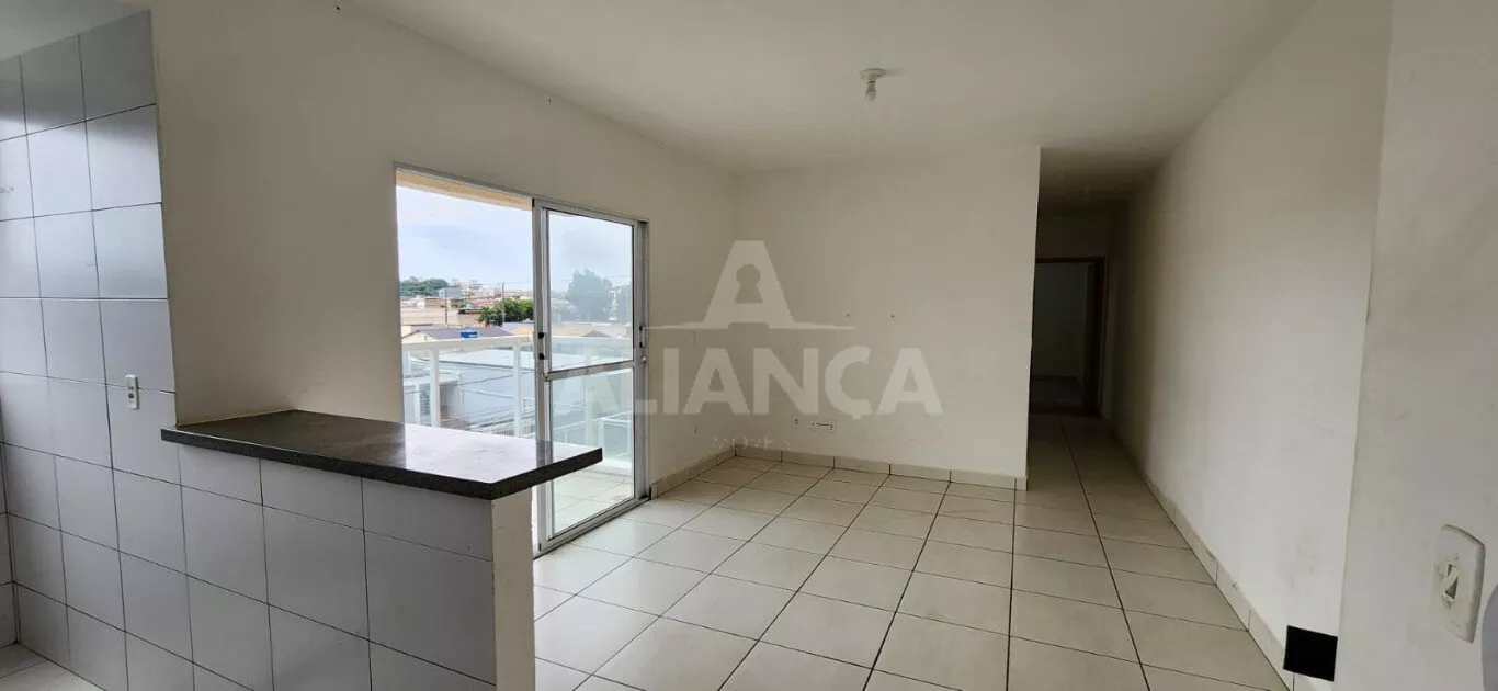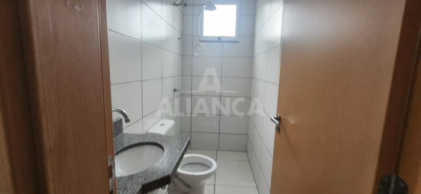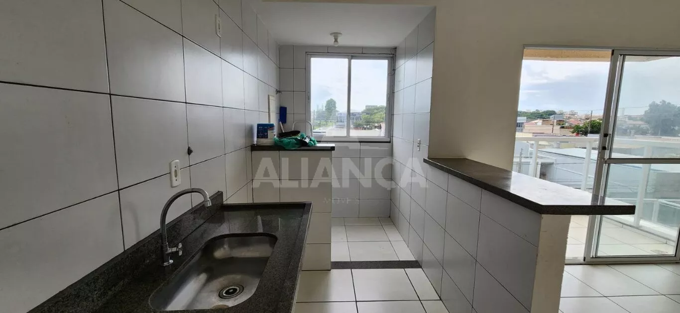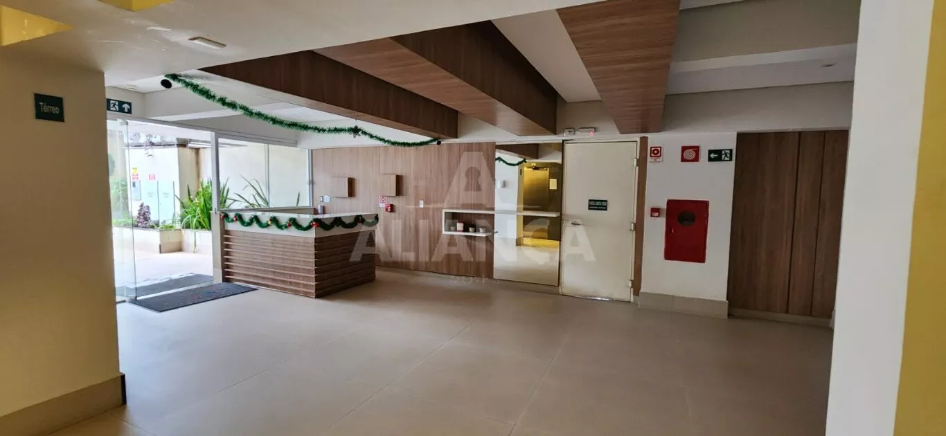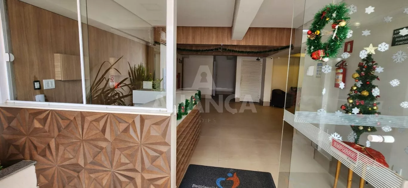 Sala ampla com varanda com pia, 02 quartos sendo 01 suíte, banheiro social, cozinha, 01 vaga de garagem, portaria, prédio com 02 elevadores.