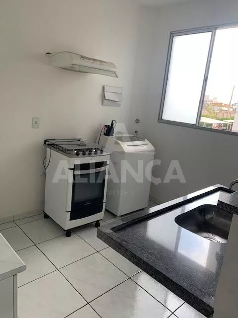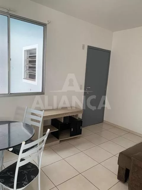 Apartamento mobiliado, sendo sala de estar, 02 quartos, banheiro social, cozinha, área de serviço, 01 vaga, play ground, portaria, quadra poliesportiva, gás canalizado.