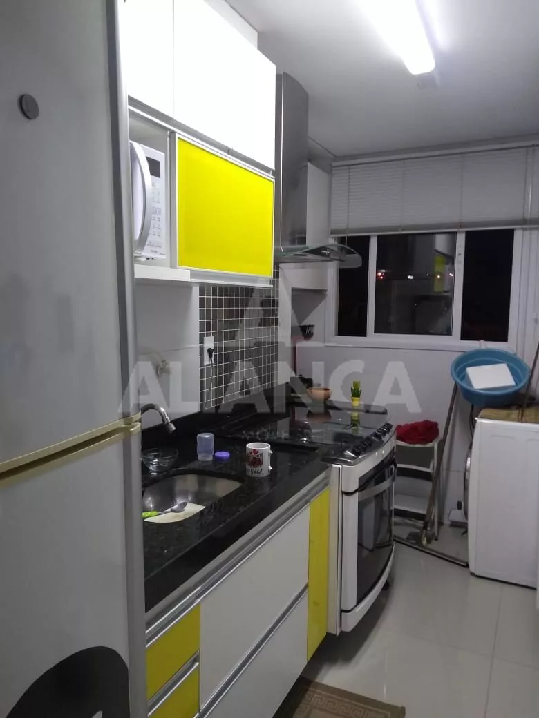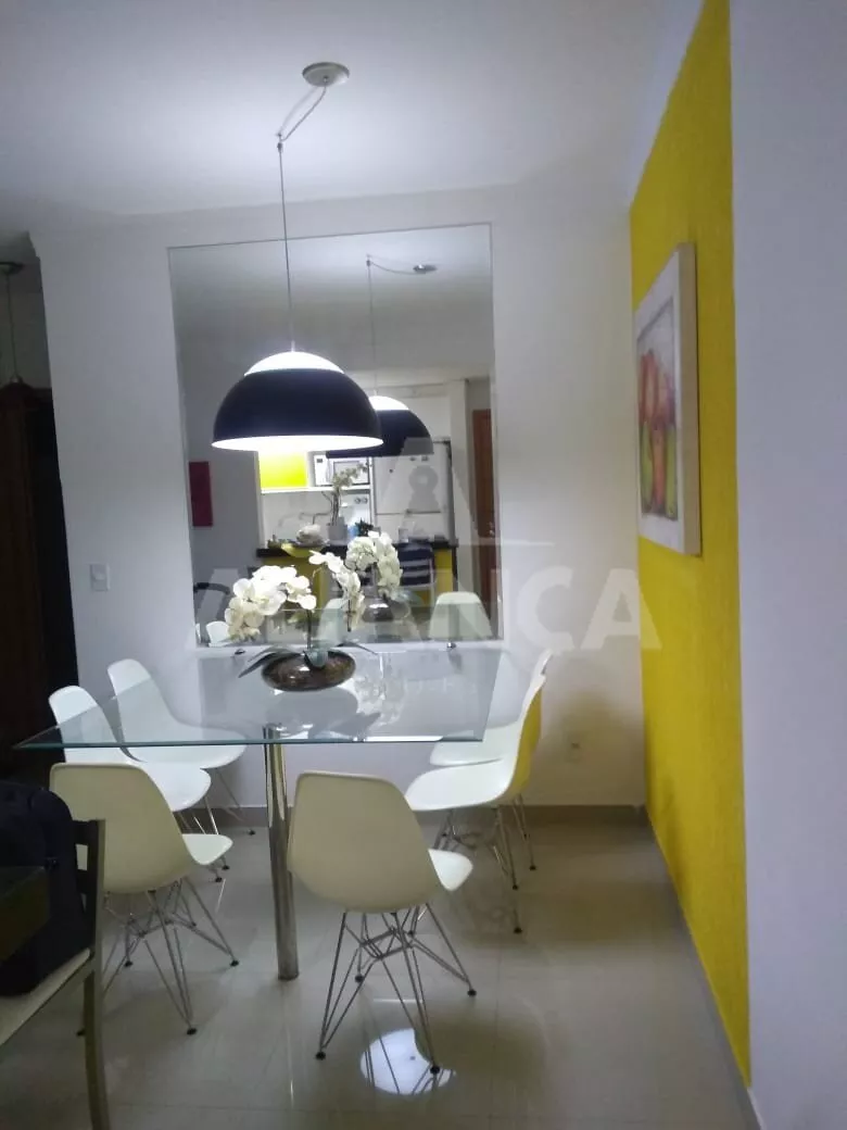 Apartamento mobiliado, sendo sala de estar, 02 quartos, banheiro social, cozinha, área de serviço, 01 vaga de garagem.