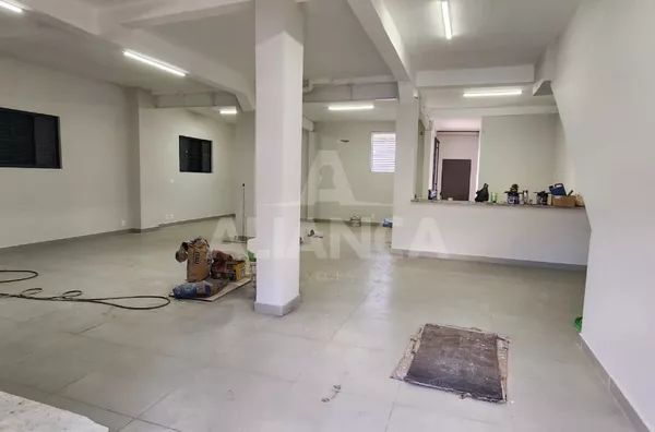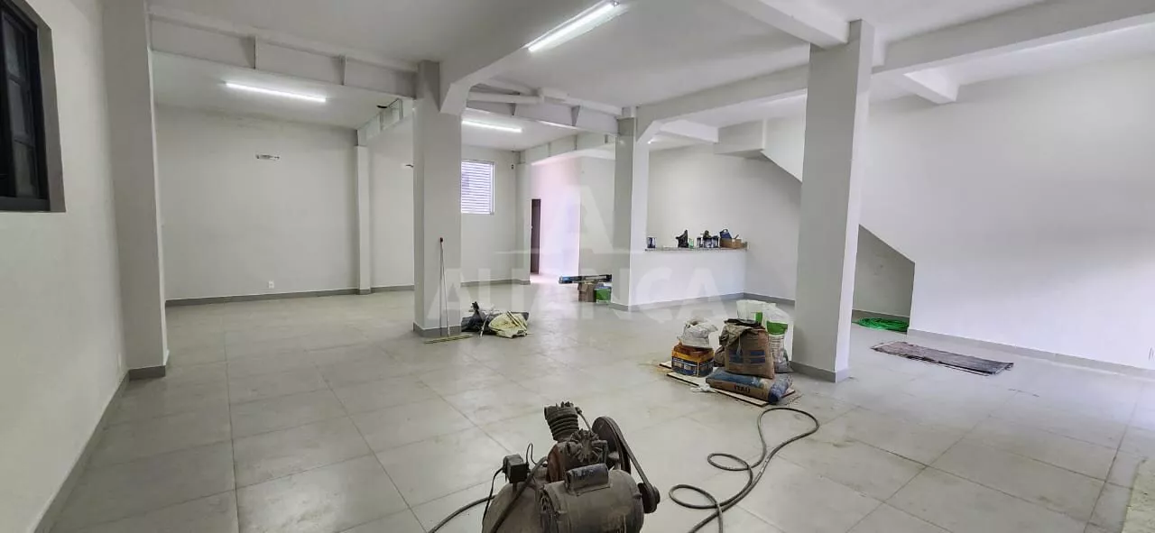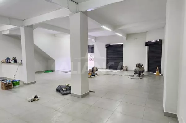 Loja de esquina com acessibilidade pronta, 03 portas de aço, sendo aproximadamente 100m² de vão livre, cozinha, banheiro e área livre nos fundos.