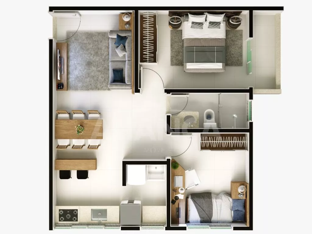 Ótimo apartamento à venda no Bairro Pampulha sendo sala ampla, cozinha tipo americana com bancadas em granito, banheiro social com bancadas em granito, 02 quartos sendo 01 com varanda, 01 vaga de garagem.