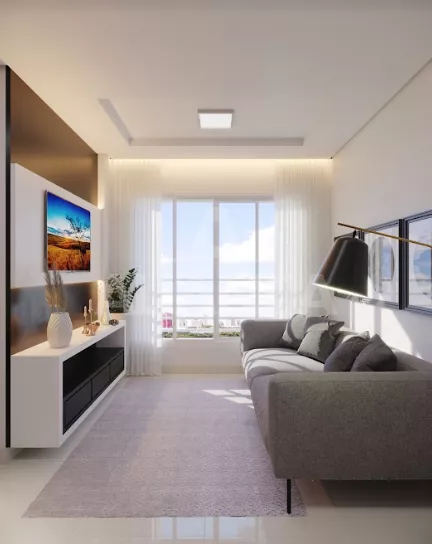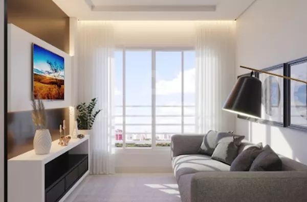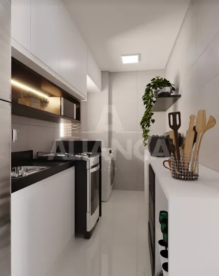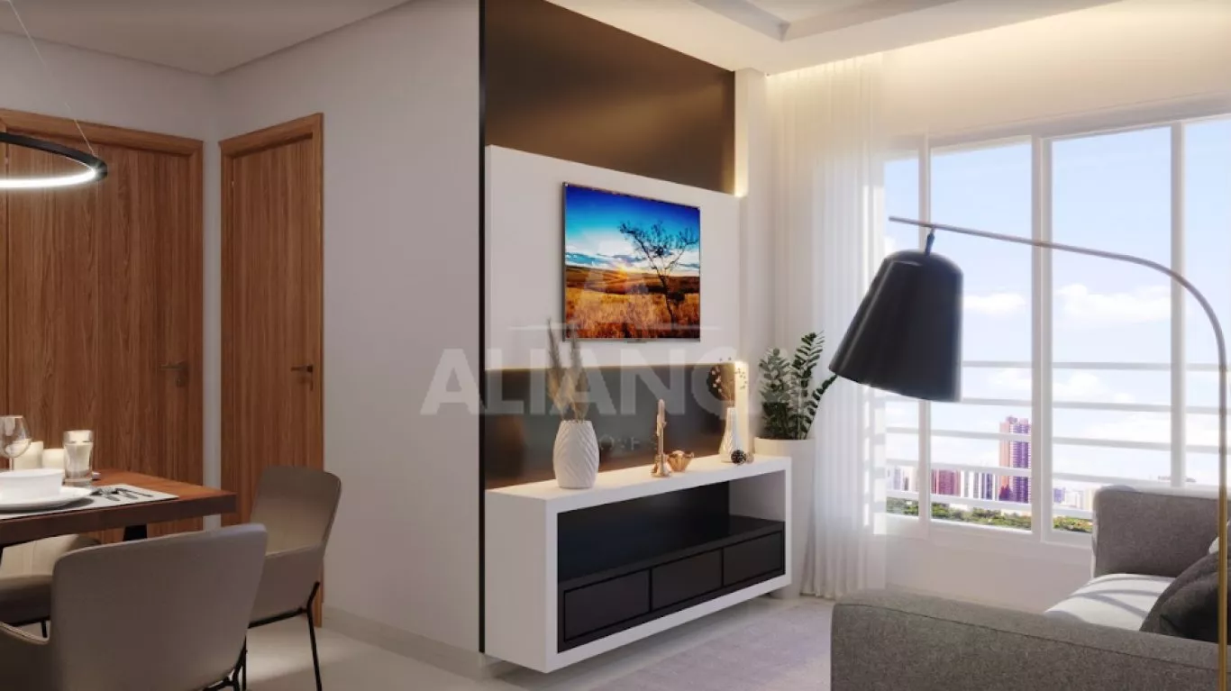 Sala de estar com janela panoramica. 02 quartos, banheiro social, cozinha, área de serviço, infra estrutura para ar condicionado, 01 vaga de estacionamento, 02 elevadores, área de lazer: espaço para eventos, 02 quiosques com churrasqueira, playground. E ainda estrutura para portaria 24 horas, medição individual de água e gás. Tudo isso na região mais “nobre” do Shopping Park.