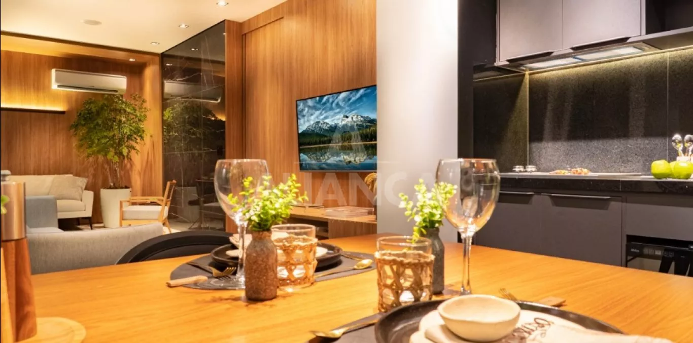 Conforto, qualidade e sofisticação, são os principais diferenciais. O edifício conta com diversas características capazes de oferecer ao morador vantagens exclusivas para se sentir seguro, tanto nas áreas internas, quanto nos espaços comuns, que são entregues mobiliadas e decoradas. O morador será capaz de aproveitar com a família cada espaço, sala de estar com sacada, 01 ou 03 suítes, banheiro social, cozinha, área de serviço, 02 vagas de garagem. Alto padrão construtivo. Salão de eventos. Tratamento acústico entre as lajes. Pintura refletiva nas áreas externas. Preparação para instalação de câmeras nas áreas comuns. Preparação de ar condicionado em todos os quarto e sala. Bicicletário. Hall de entrada imponente. Sistema de intercomunicação predial entre os apartamentos. Preparação para instalação de rede Wi-fi. Dispositivos de proteção DR. Condomínio com dois elevadores.