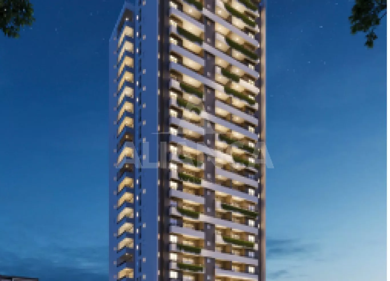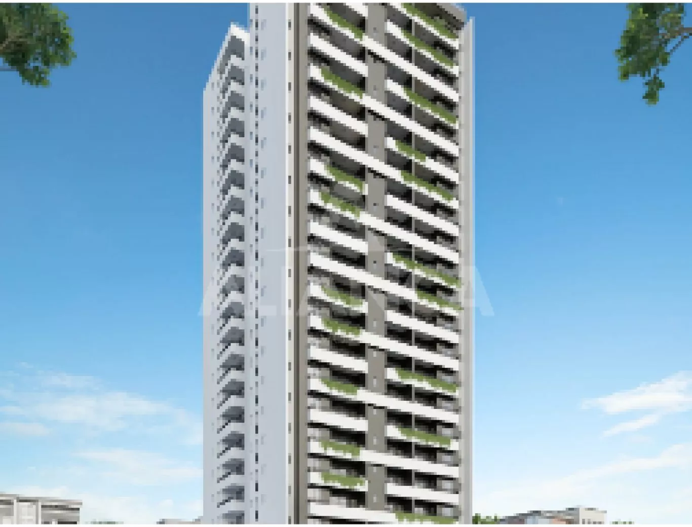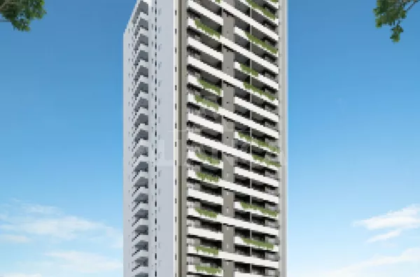 Apartamentos de 1 e 2 quartos com suíte e varanda - Torre única, 8 unidades por pavimento - 20 andares - Garagem totalmente coberta