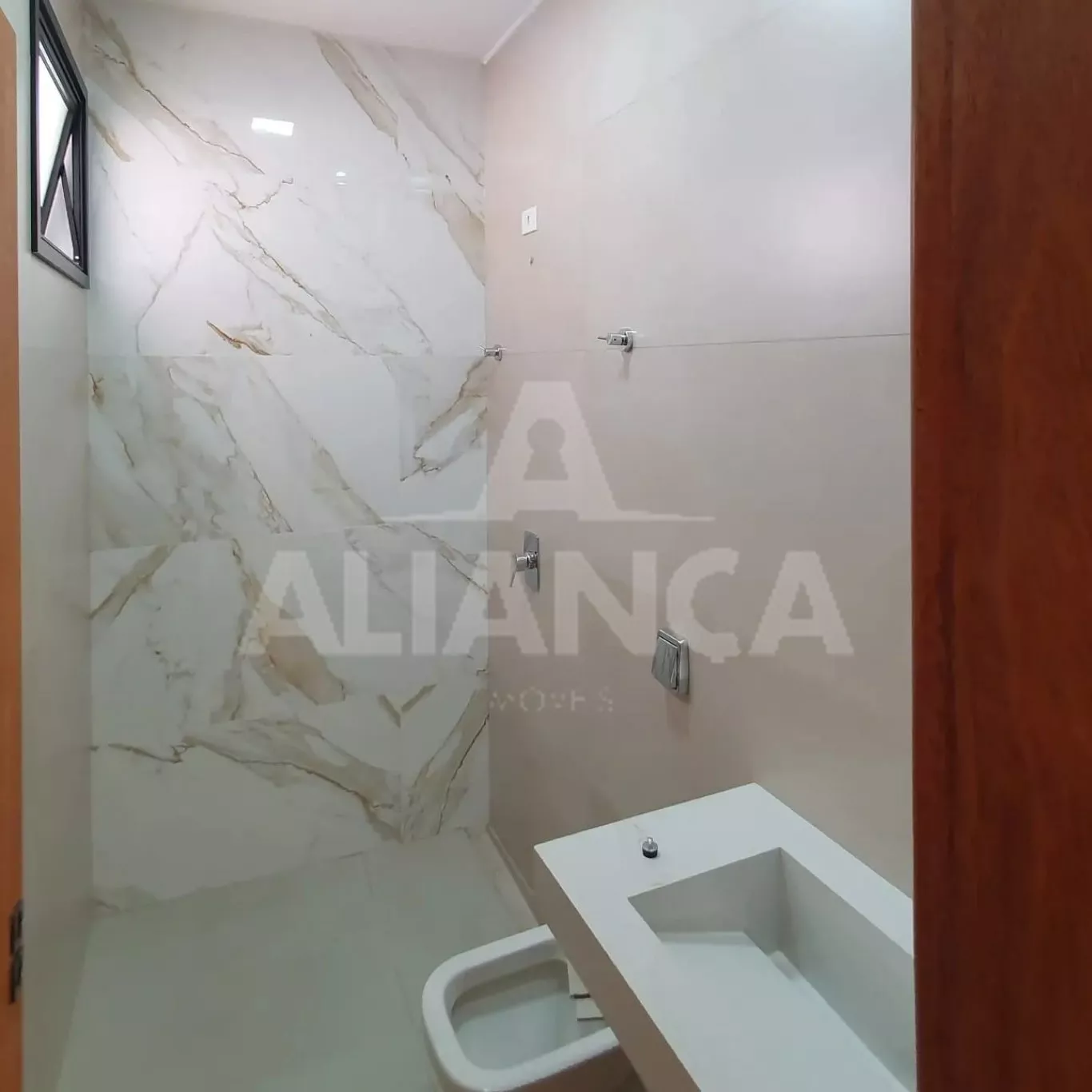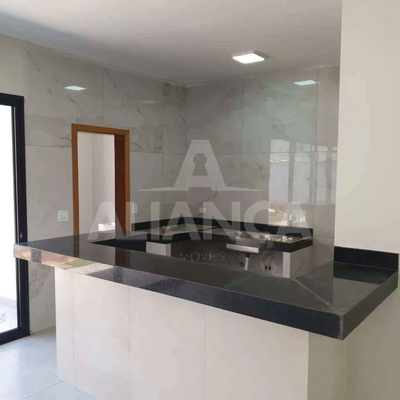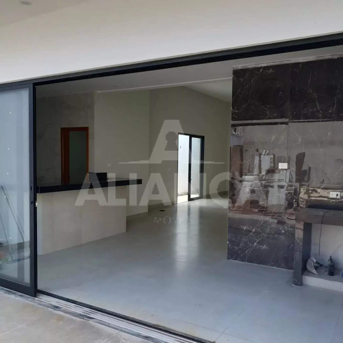 Sala de estar em dois ambientes com pé direito duplo 4m, lavabo, 03 suítes sendo 01 master com closet, cozinha integrada com a área gourmet, churrasqueira revestida em porcelanato, despensa, lavanderia, jardim de inverno, piscina, vestiário para piscina, fino acabamento, toda preparada para aquecimento solar.