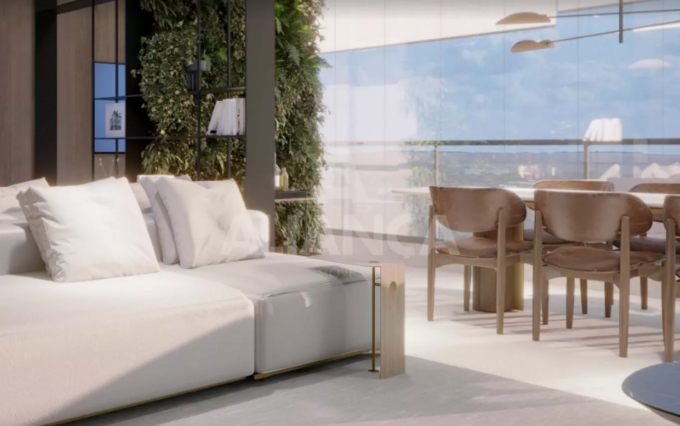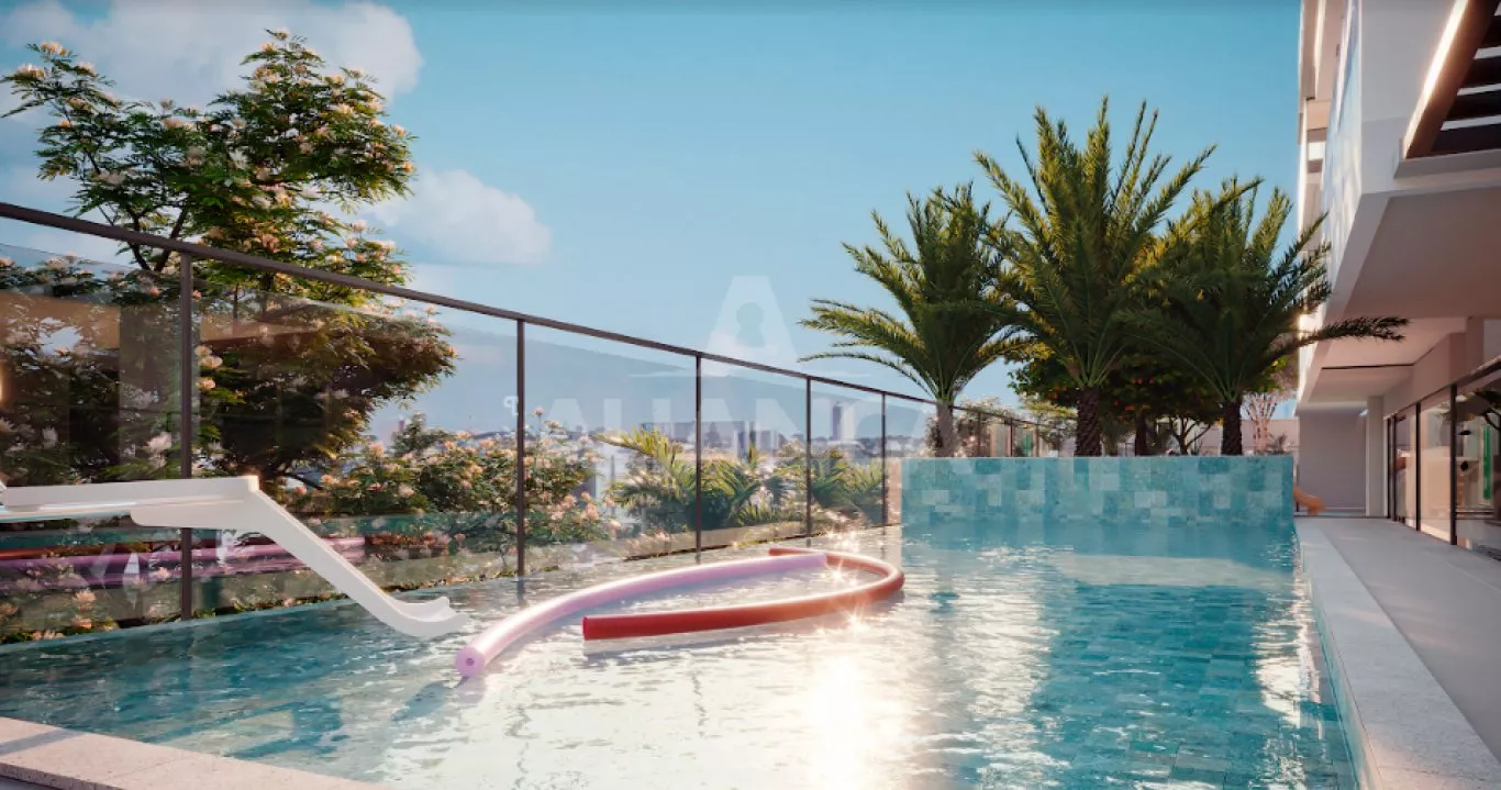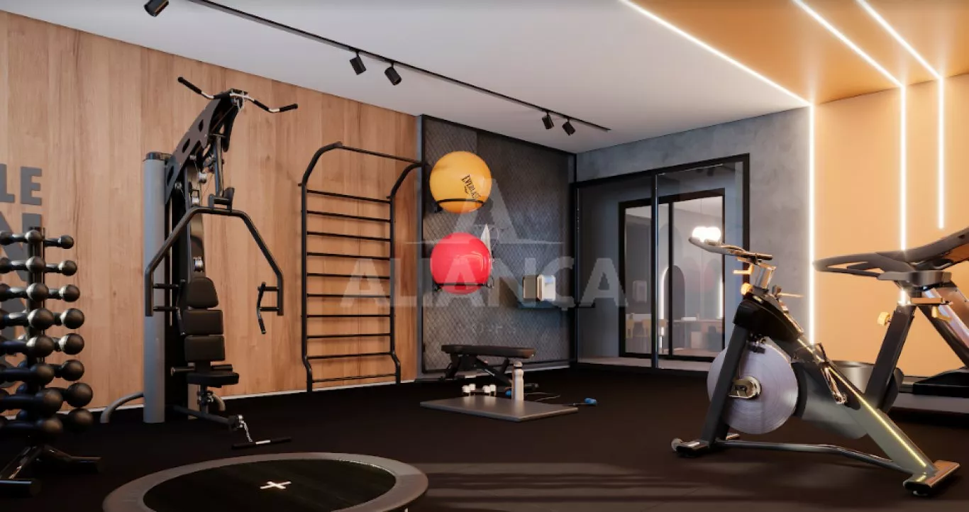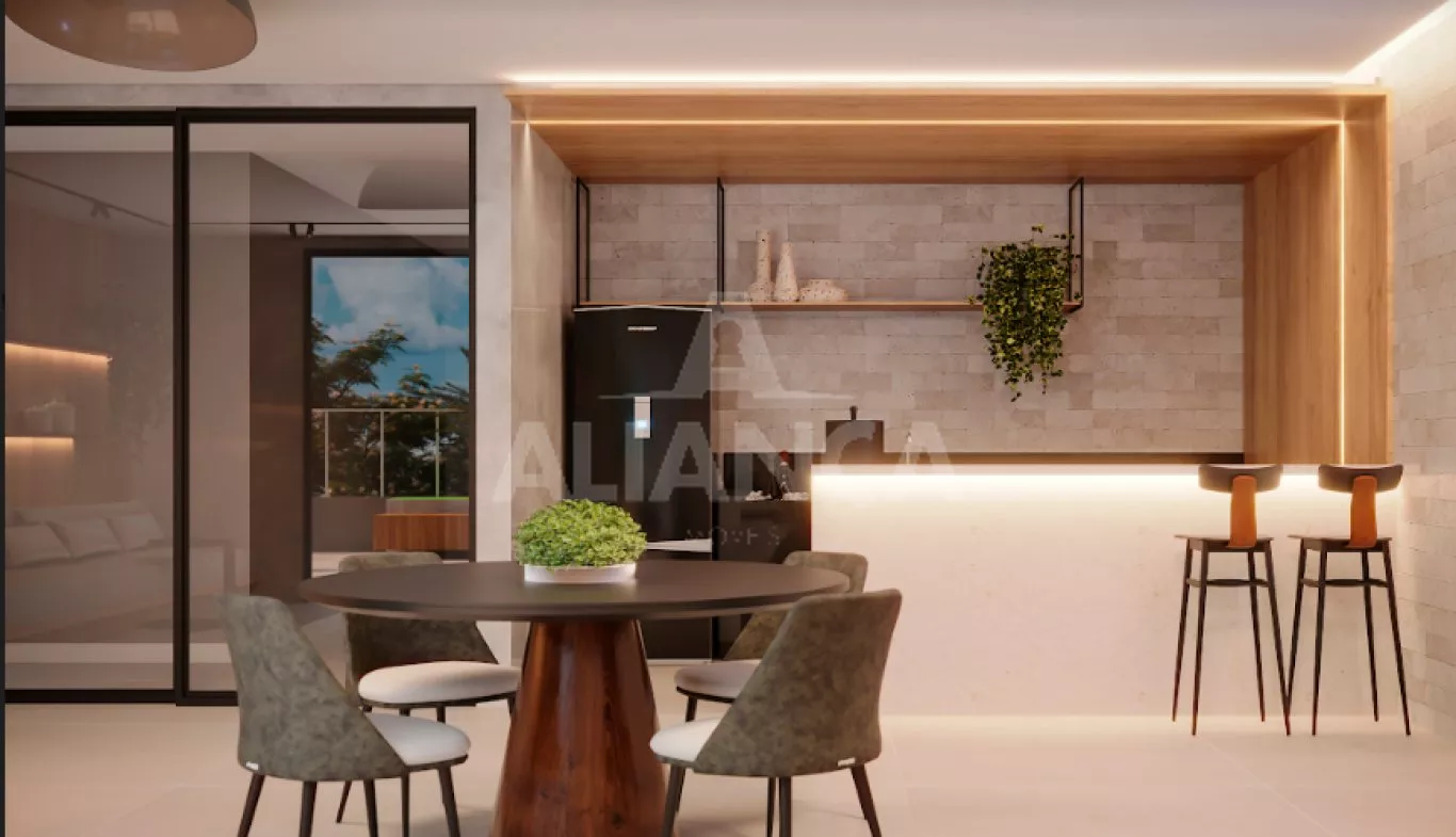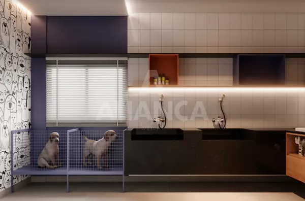 Sala de estar com varanda gourmet, (churrasqueira a carvão a ser adquirida separadamente), lavabo, 03 quartos sendo 01 suíte, banheiro social, cozinha, área de serviço, elevador, espaço pet, play ground, salão de festas, academia, bicicletário, espaç;o grill, área gourmet, sport bar, piscina, 02 vagas de garagem, com disponibilidade de instalação de tomada individual para carro elétrico. home cinema, coworking, laje técnica.