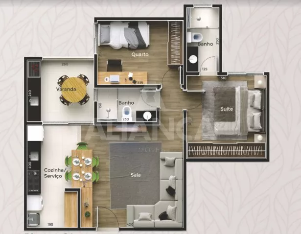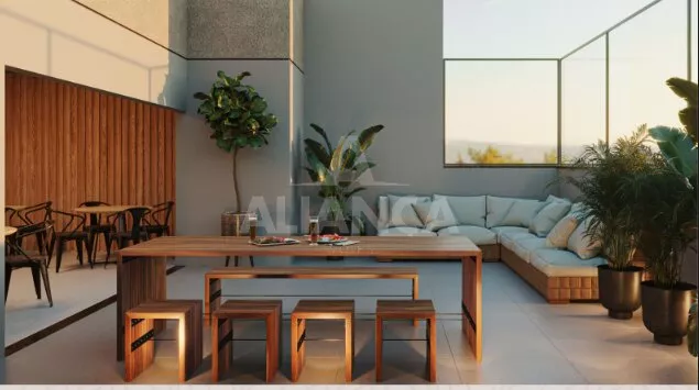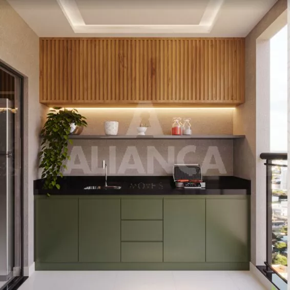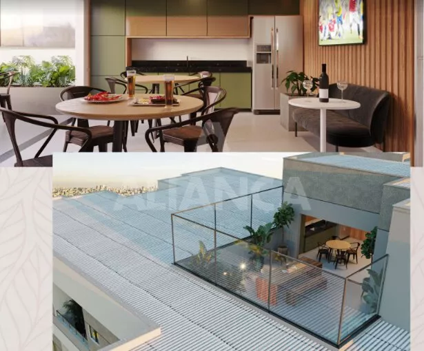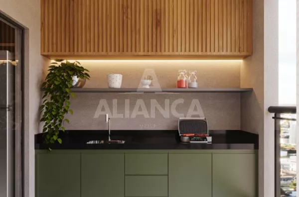 Sala de estar, cozinha integrada com varanda gourmet, área de serviço, 02 quartos sendo 01 suíte, banheiro social, elevador, garagem coberta, 02 áreas gourmet, espaço fitness, salão de festas, piscina com deck, quadra poliesportiva, zen plaza, market place, localização privilegiada de fácil acesso.