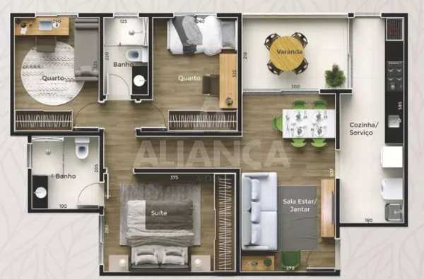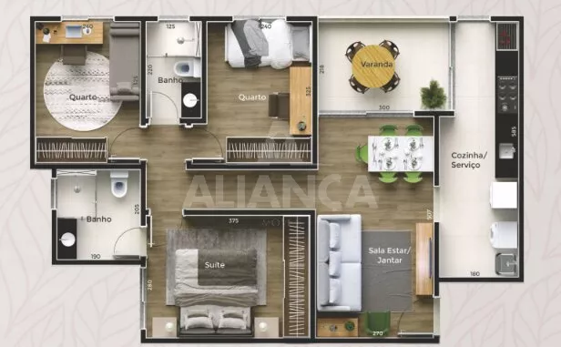 Sala de estar, cozinha integrada com varanda gourmet, área de serviço, 03 quartos sendo 01 suíte, banheiro social, elevador, garagem coberta, 02 áreas gourmet, espaço fitness, salão de festas, piscina com deck, quadra poliesportiva, zen plaza, market place, localização privilegiada de fácil acesso.