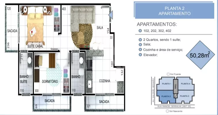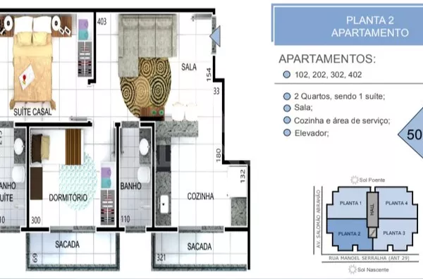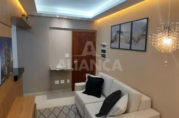 Apartamento decorado sendo sala, 02 quartos sendo 01 suíte, cozinha, sacada, elevador, 01 vaga de garagem.