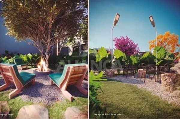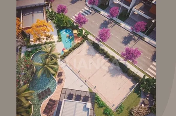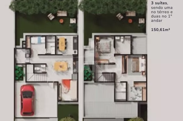 Casas em condomínio fechado estilo sobrados de 2 andares, 3 suítes; Lavabo; Espaço Gourmet com churrasqueira a carvão; Integração dos ambientes (living, sala de jantar, cozinha e espaço gourmet), 2 opções de plantas 150,61m²; Lotes de 180m², 86 unidades; Pé-direito 2,80m , 2 vagas de garagem;. Paredes de Dry Wall no 2º andar facilidade para integrar ambientes; Infraestrutura de recarga para veículos elétricos; Fechadura eletrônica; Infraestrutura para instalação de ar-condicionado nas suítes, living e sala de jantar; Aquecimento solar nos chuveiros.
