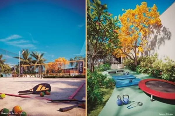 Piscina climatizada ( adulto e infantil), deck seco e molhado, espreguiçadeiras, mesas, ombrelones e 02 duchas; Quadra de beach tennis com areia natural; Espaço pet; Playground; Academia equipada de alto padrão; Salão de festas com churrasqueira a carvão e cozinha de apoio; Espaço gourmet com churrasqueira; Redário; Slackline; Praça espaço de estar ao ar livre; Pomar com árvores frutíferas e horta; Trilha de caminha em pedrisco