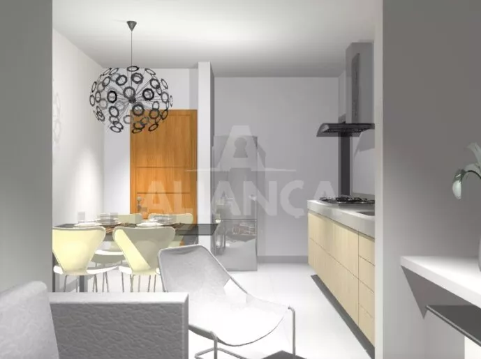 Sala, cozinha, 03 quartos sendo 1 suíte, WC, sacada,