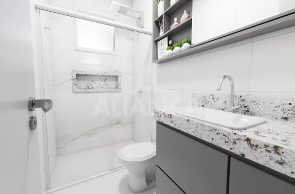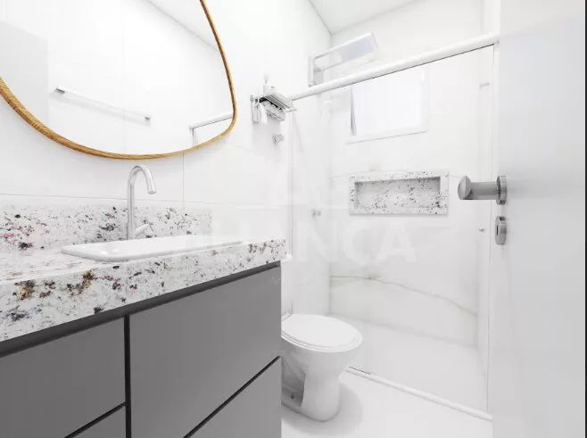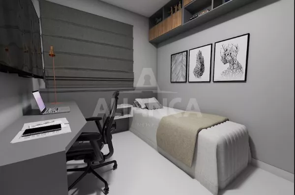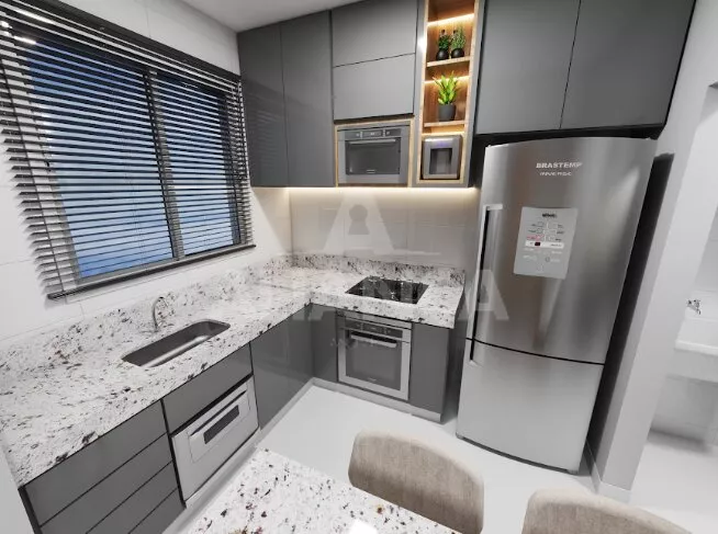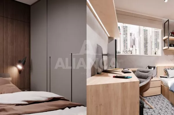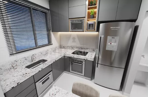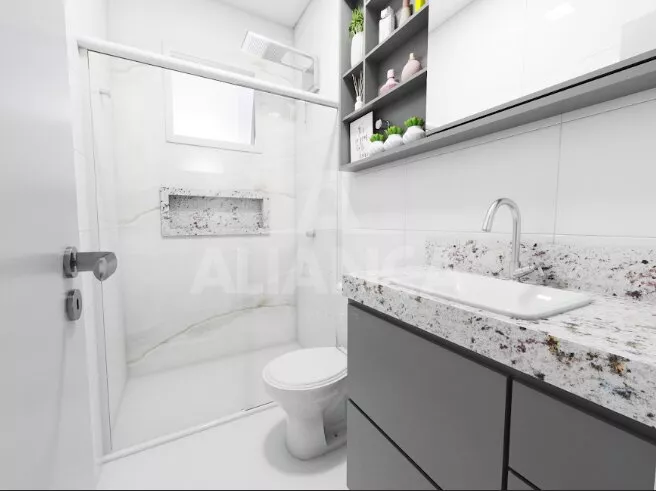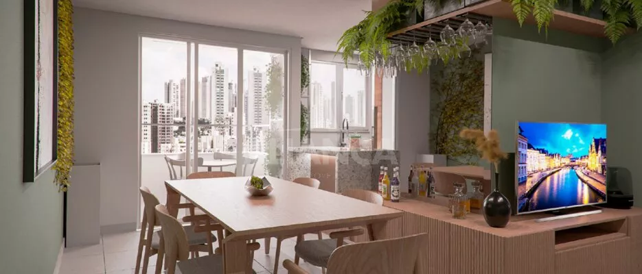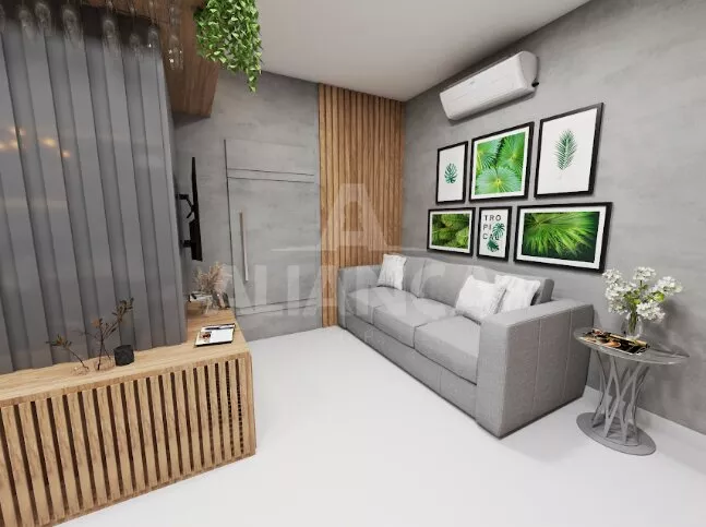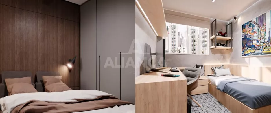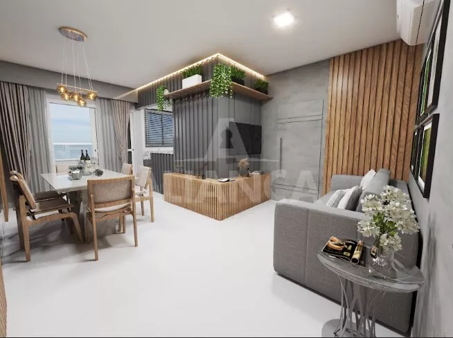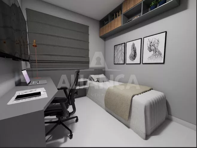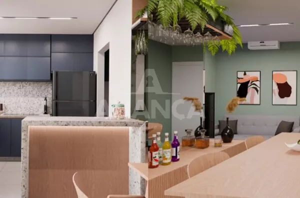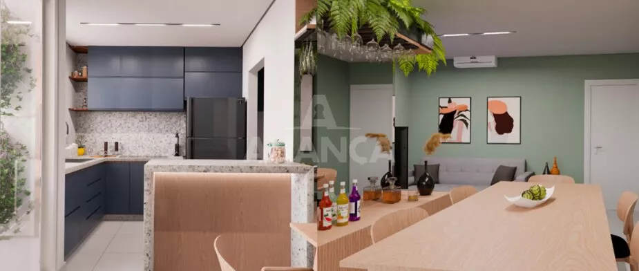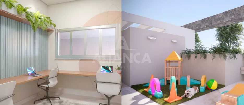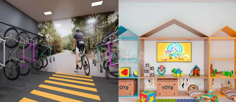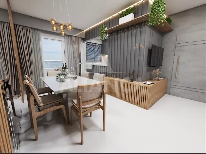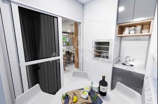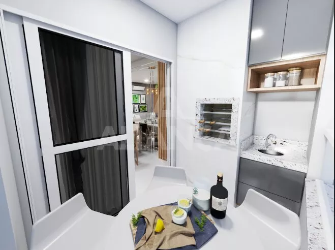 Sala de estar em dois ambientes com varanda com duto para churrasqueira á carvão, 03 quartos sendo 01 suíte, banheiro social, cozinha, área de serviço, garagem, 02 elevadores, espaço fitness, brinquedoteca, salão de festas, acabamento alto padrão, 03 pavimentos de garagem, conforto térmico e acústico, gás canalizado, pré estrutura para ar condicionado na sala e suíte, estrutura para portaria 24 hs