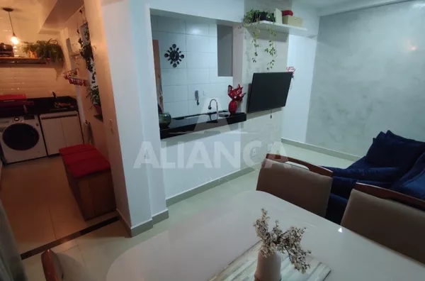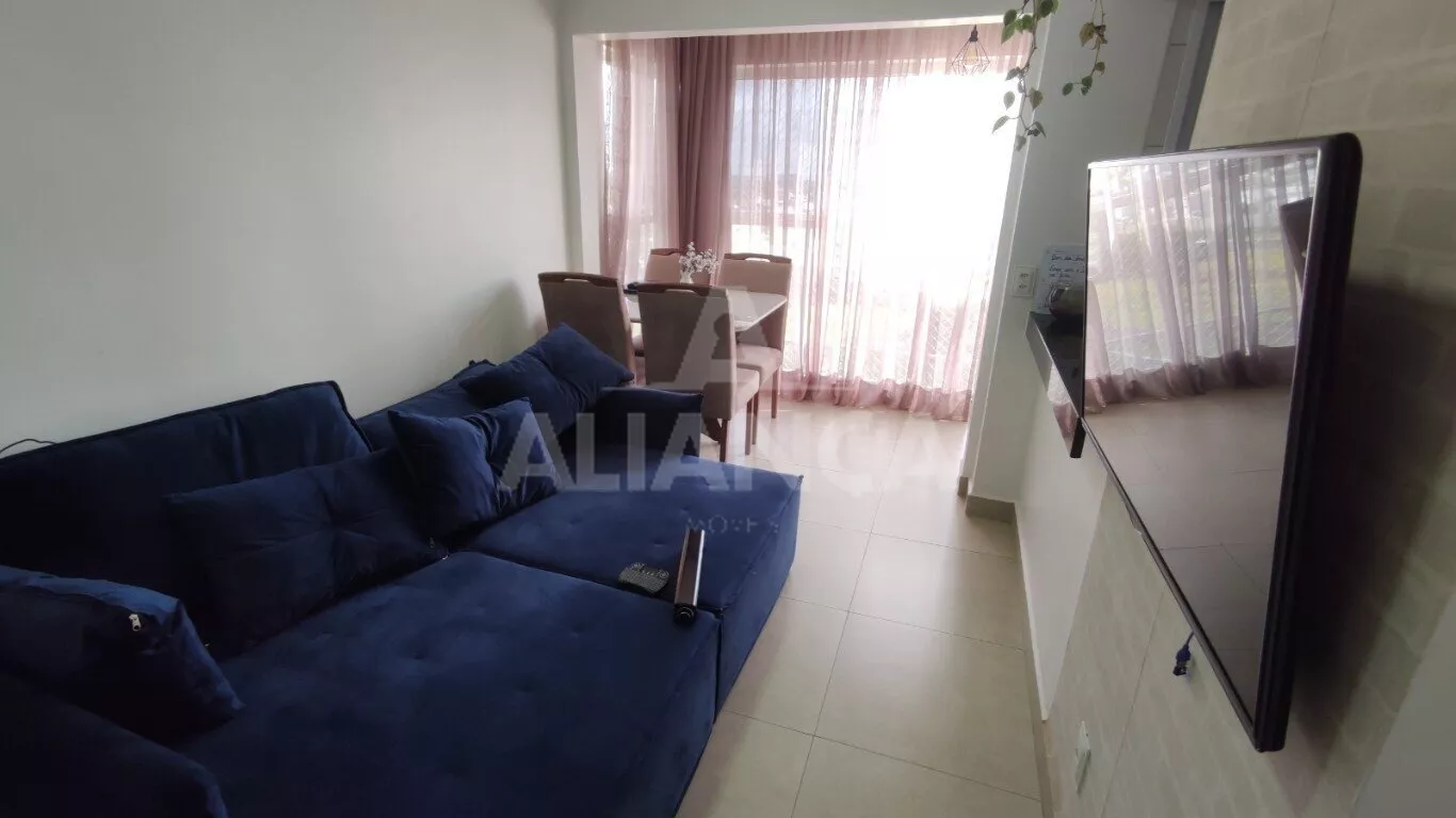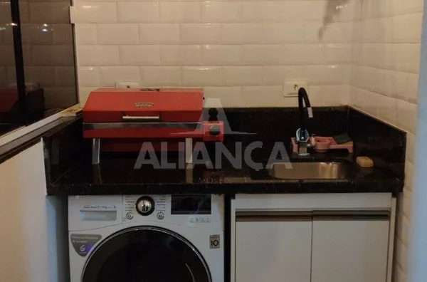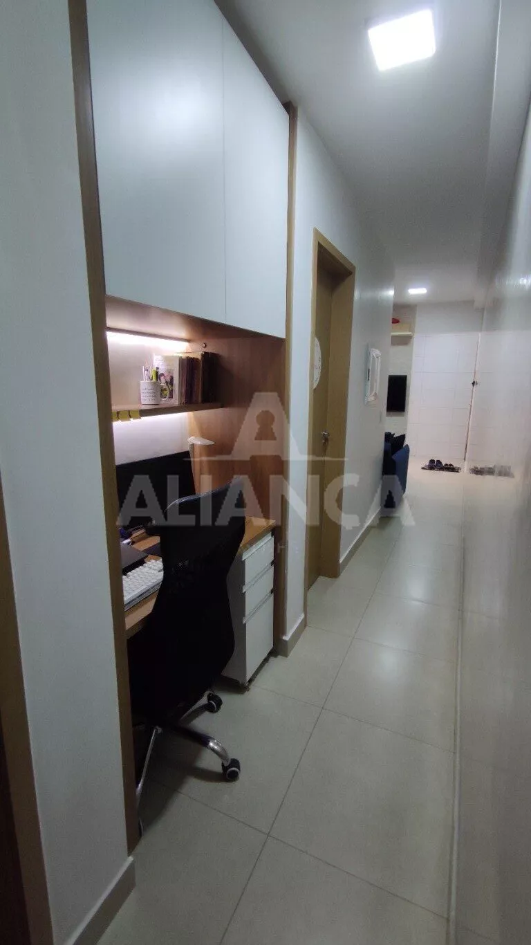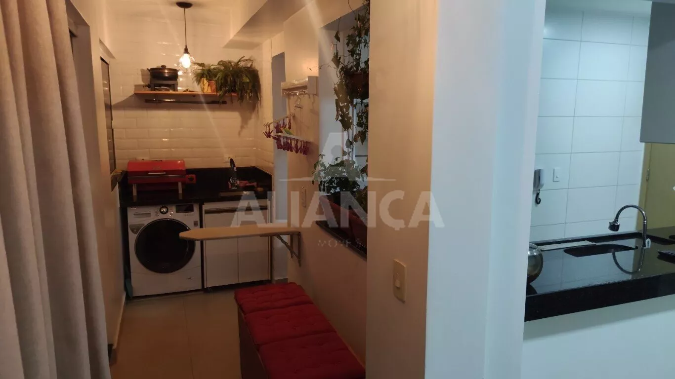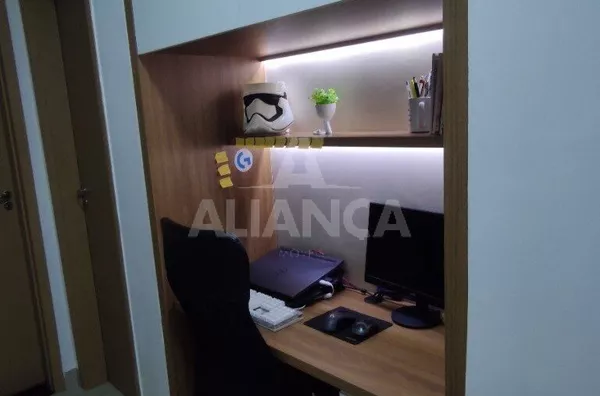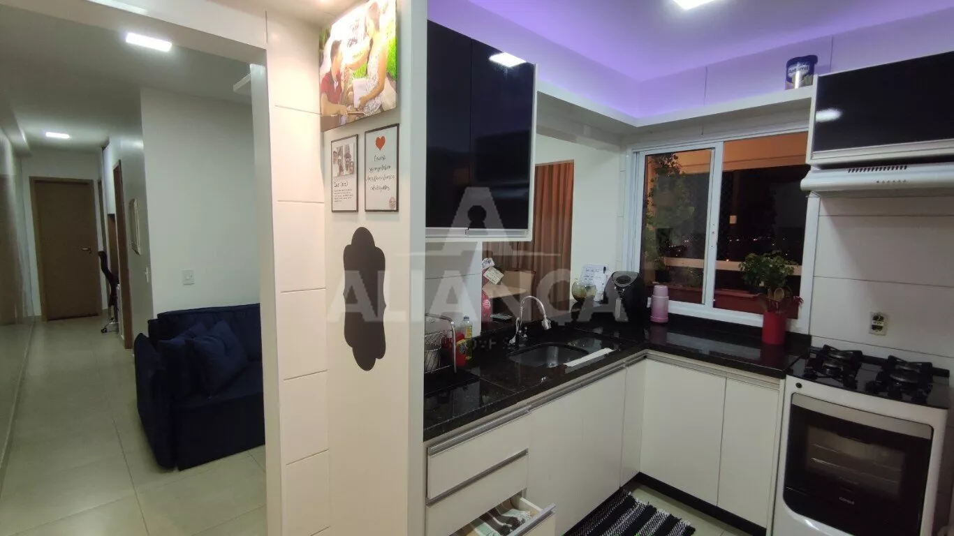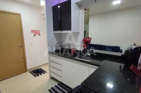 Sala de estar em dois ambientes com varanda gourmet, Cozinha americana, 02 quartos sendo 01 suíte, banheiro social, área de serviço, 01 vaga, elevador, portaria 08 horas, área de academia, churrasqueira, ponto de gás na sacada, vidros com película de redução de calor e tela de proteção em todas as janelas e varanda, vista privilegiada.