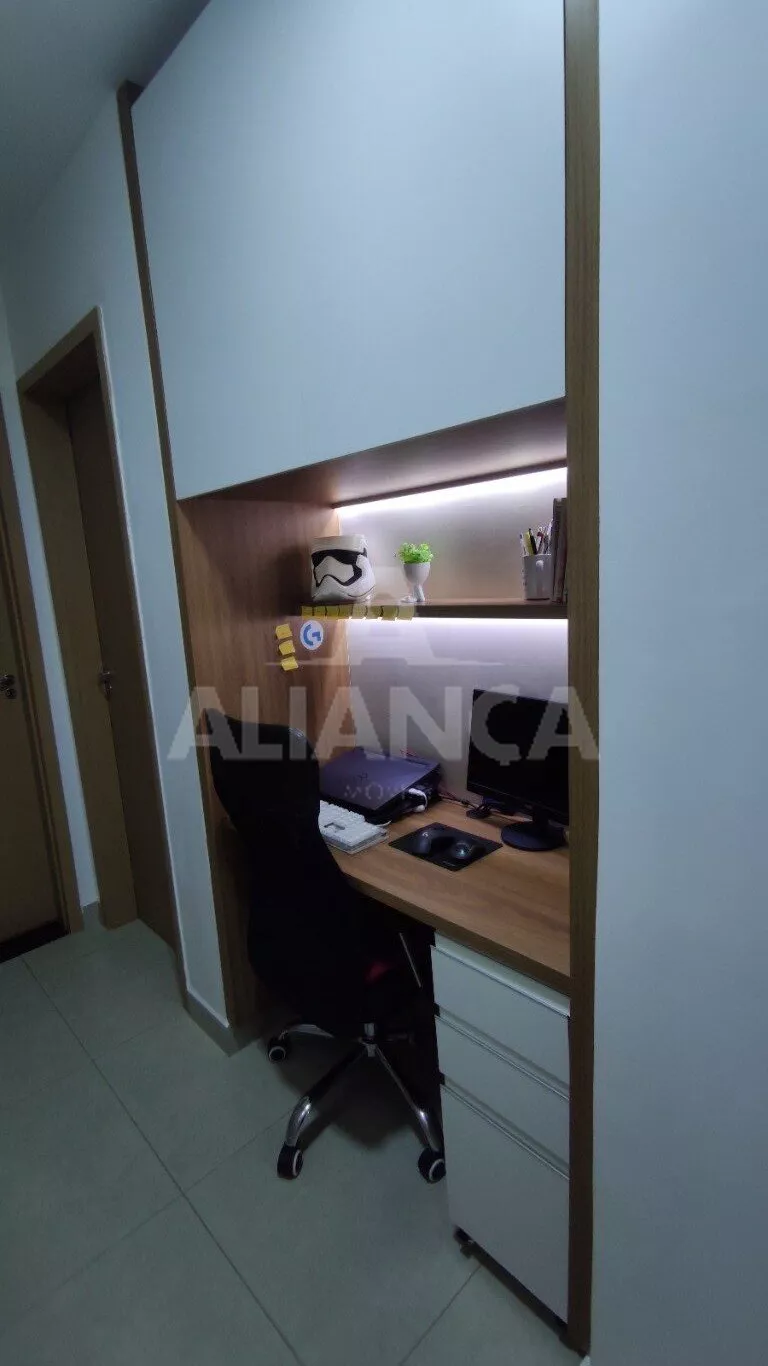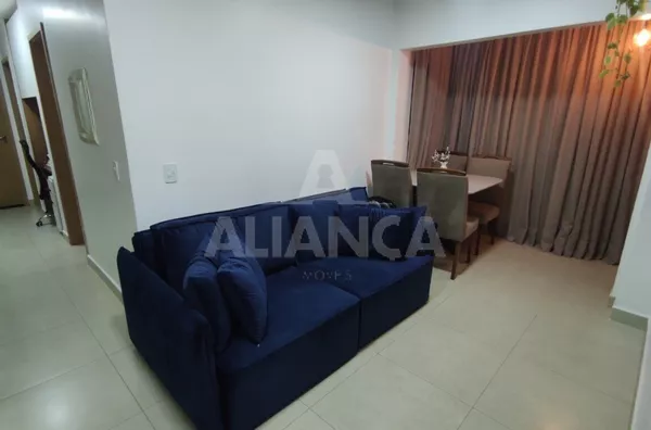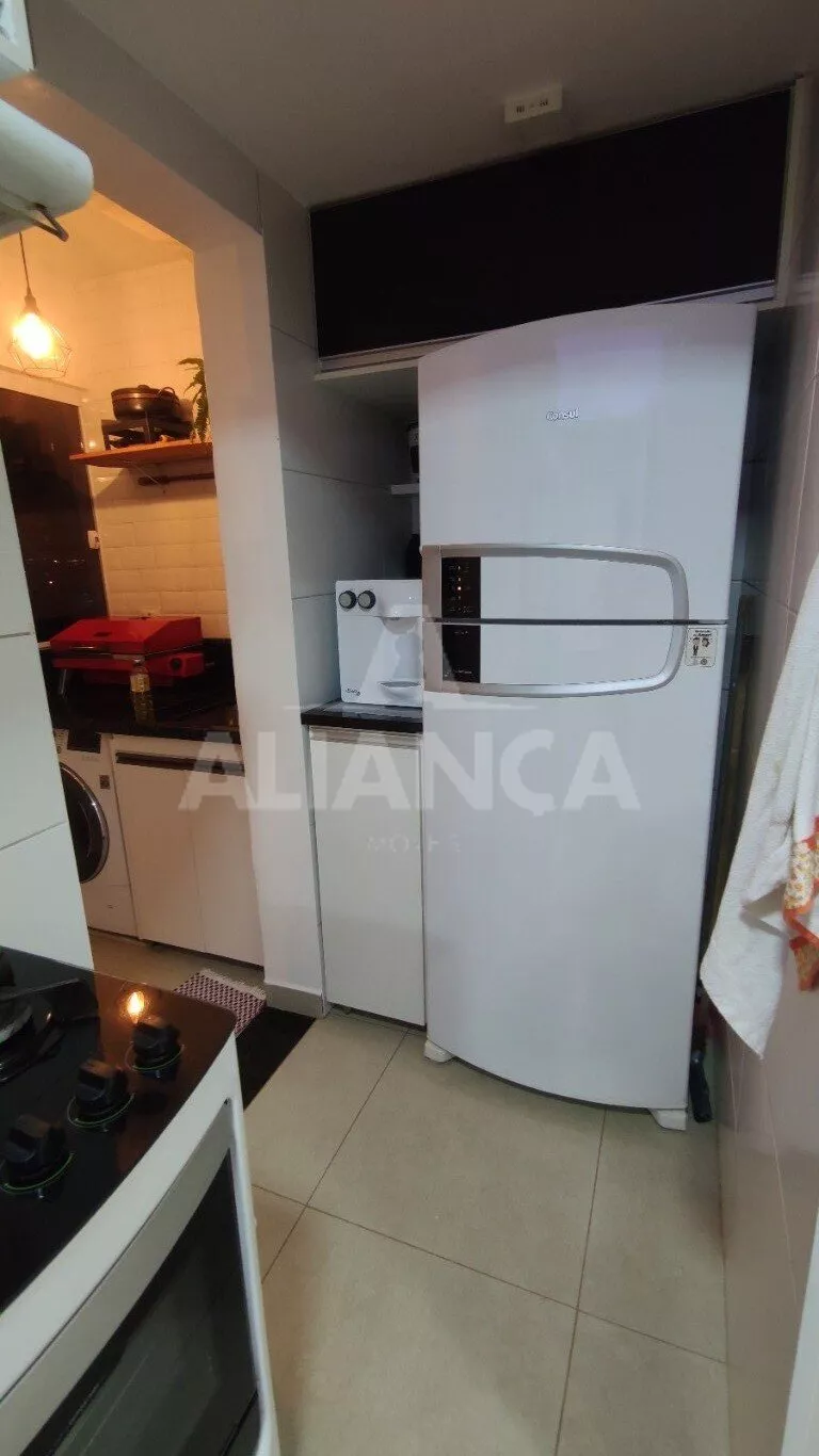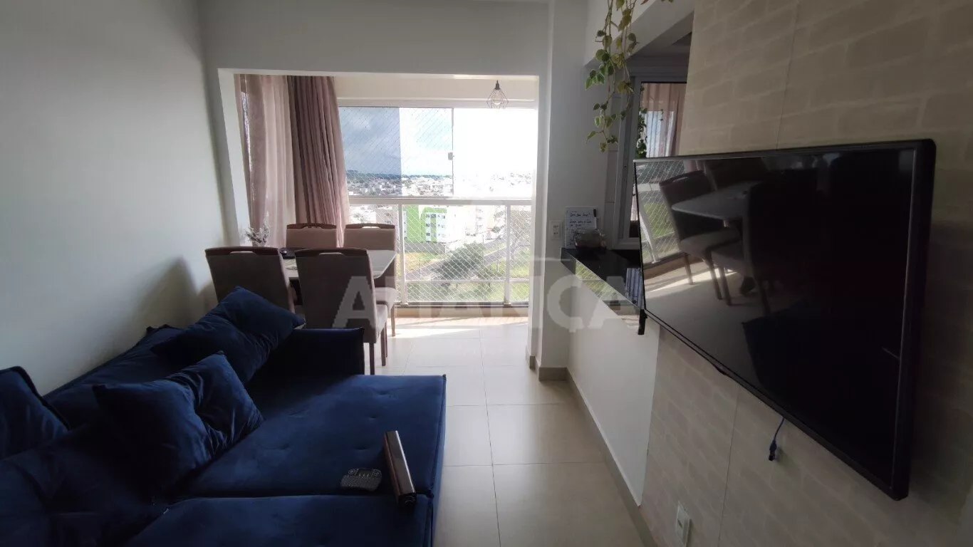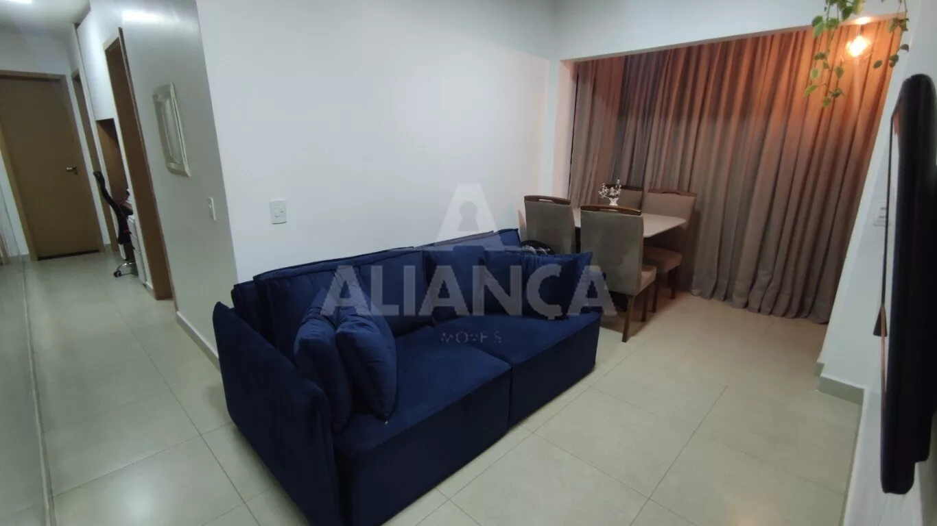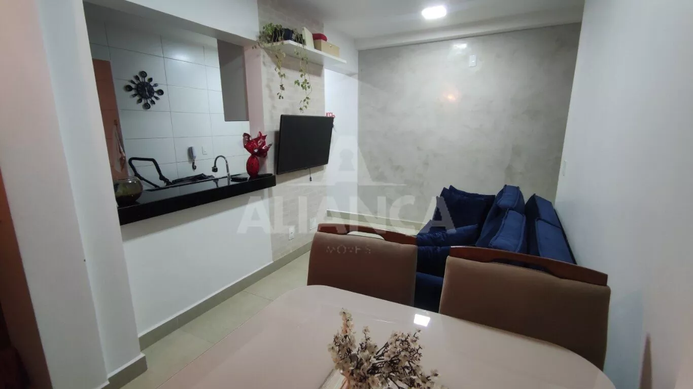 Sala de estar em dois ambientes com varanda gourmet, Cozinha americana, 02 quartos sendo 01 suíte, banheiro social, área de serviço, 01 vaga, elevador, portaria 08 horas, área de academia, churrasqueira, ponto de gás na sacada, vidros com película de redução de calor e tela de proteção em todas as janelas e varanda, vista privilegiada.