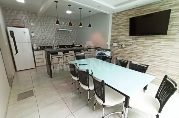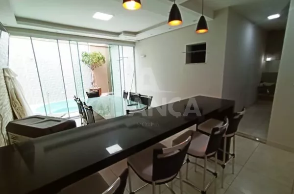 Sala de estar, sala de jantar, escritório, lavabo, 03 quartos com armários sendo 01 suíte, banheiro social com box e armários, cozinha com armários, área de serviço, área de lazer com cozinha com armários, bancada, jacuzzi