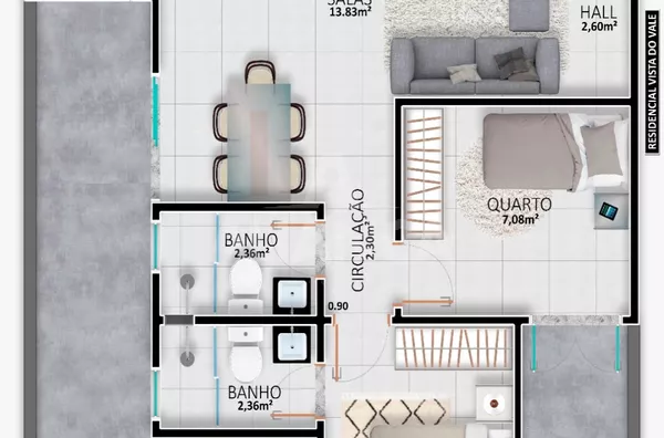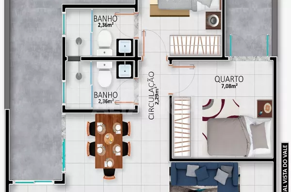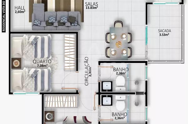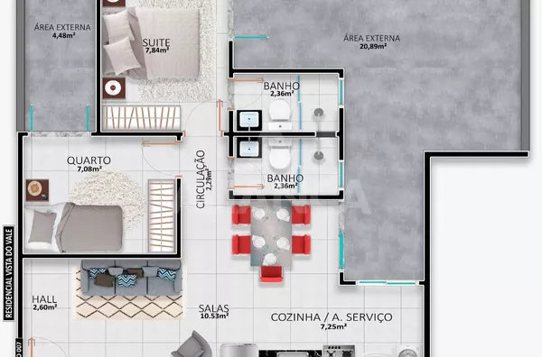 Sala de estar me dois ambientes com sacada, 02 quartos sendo 01 suíte, banho social, cozinha, área de serviço, garagem, play ground, elevador, portaria projetada para 24 hs, espaço gourmet, churrasqueira, próximo ao Praça Shopping, Supermercado, localização privilegiada.