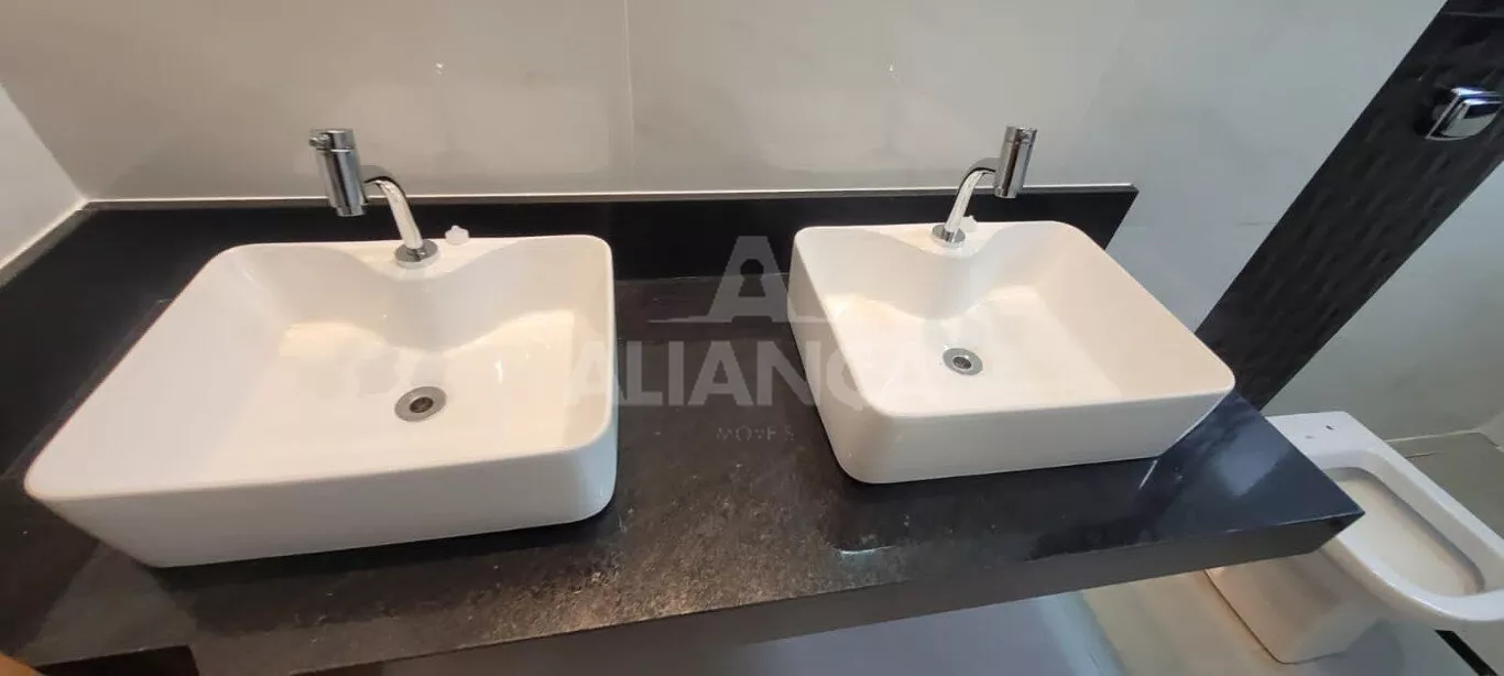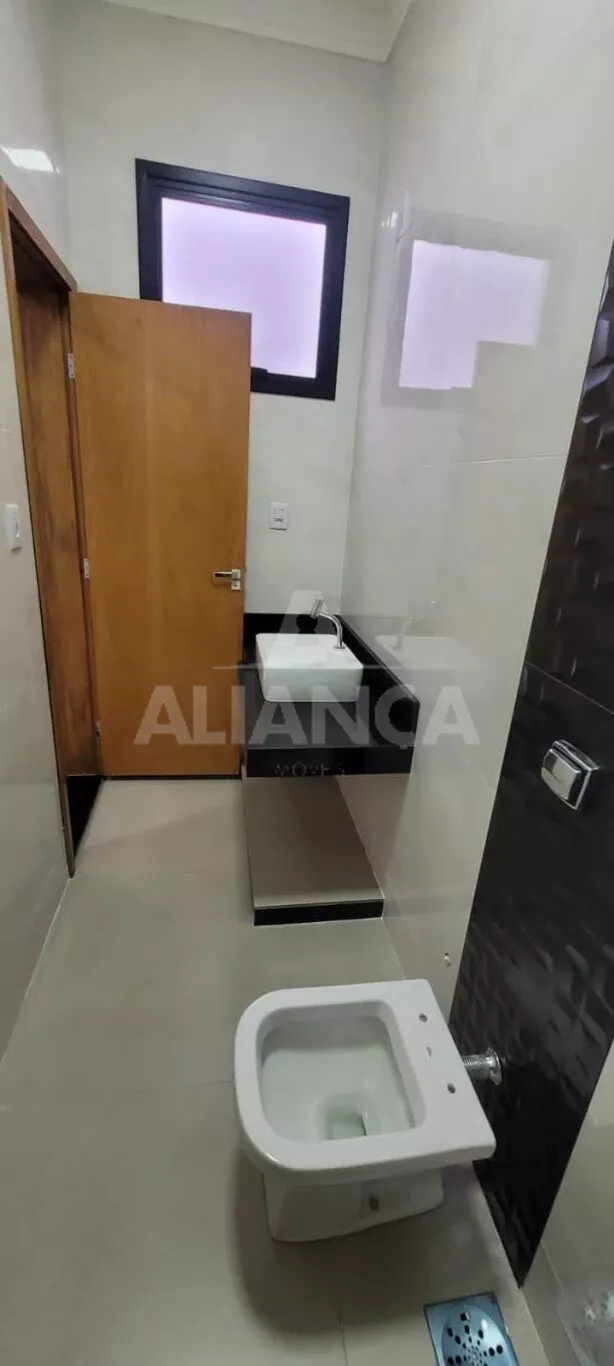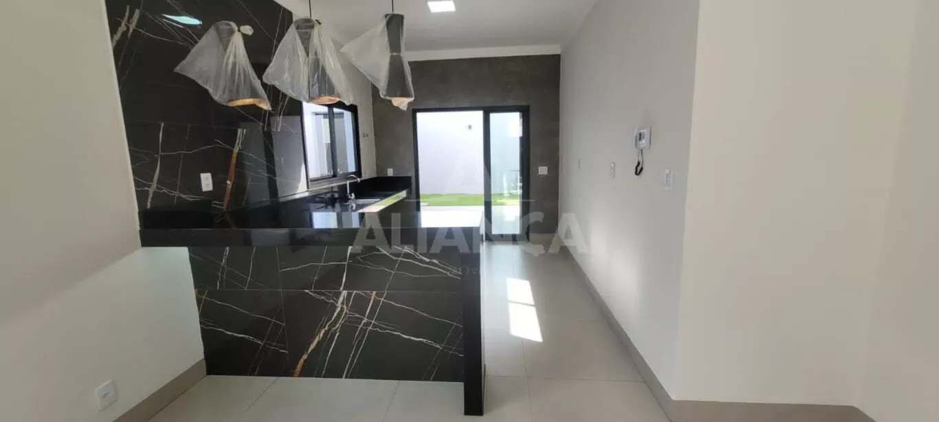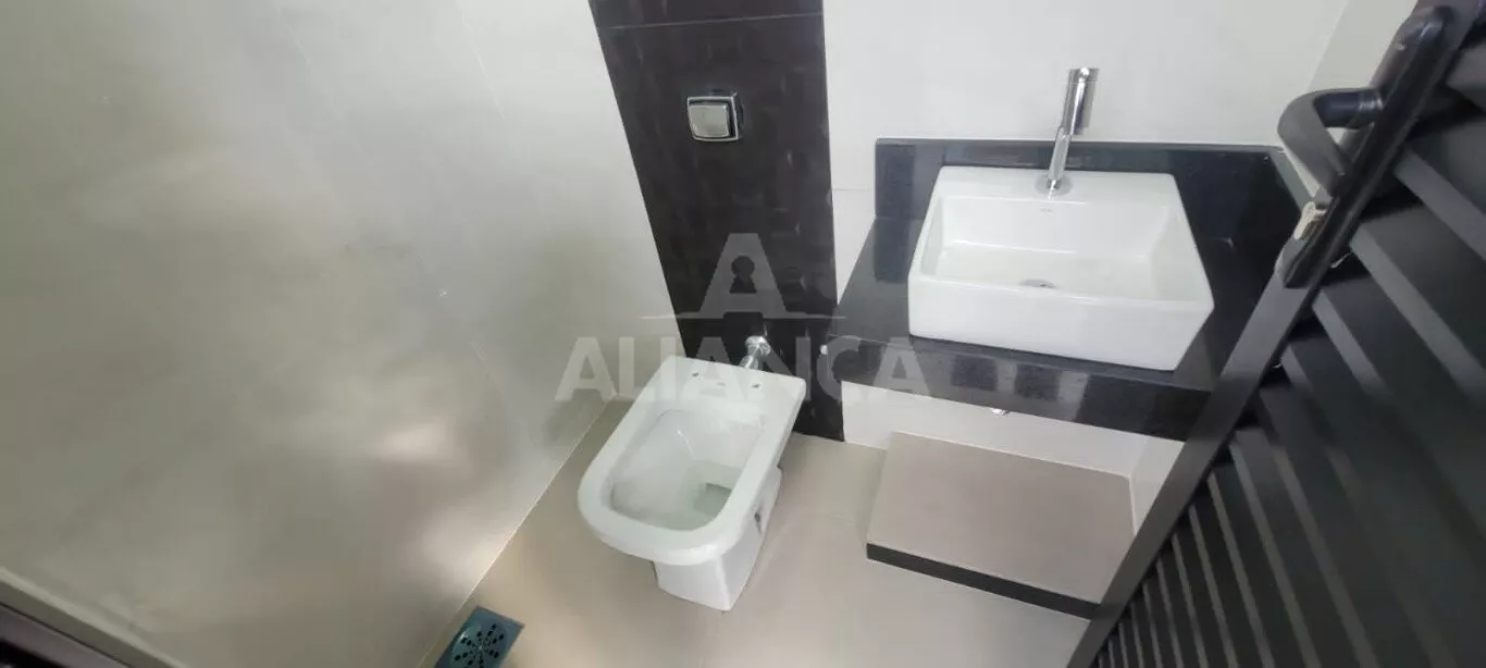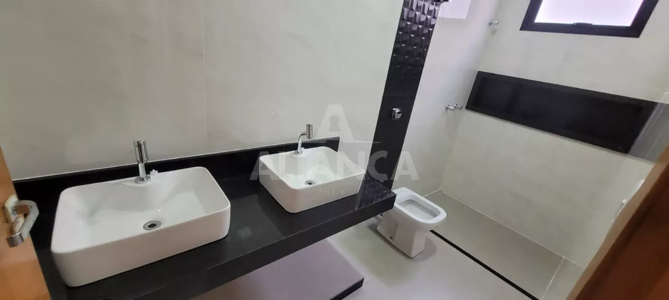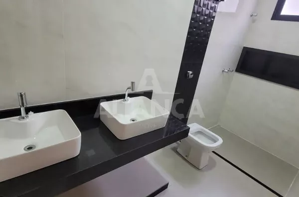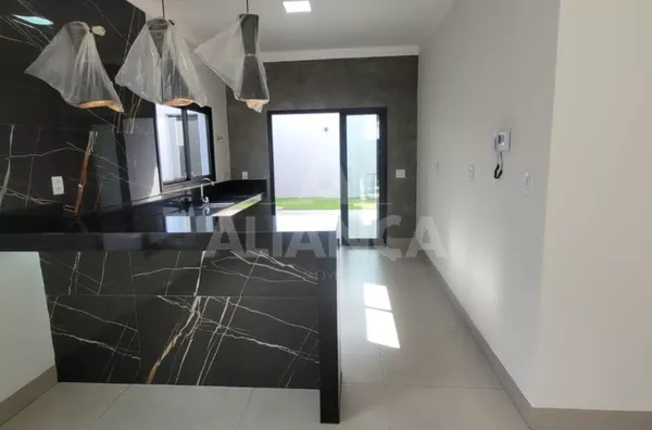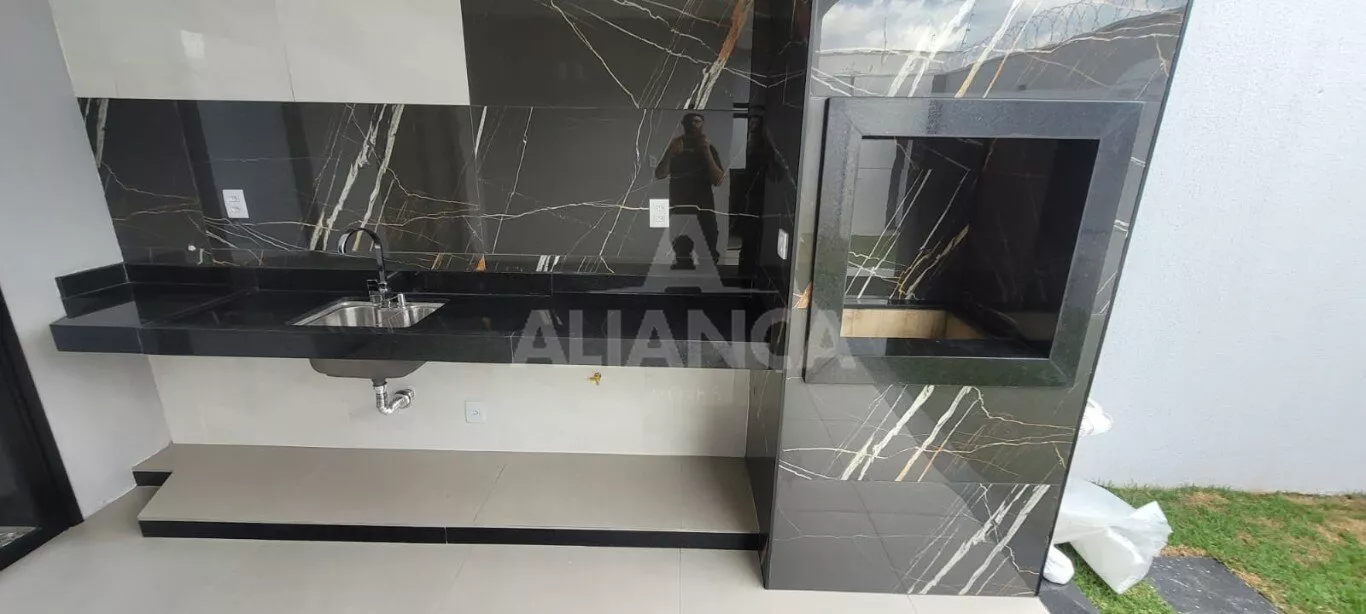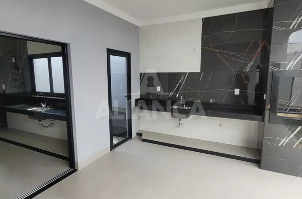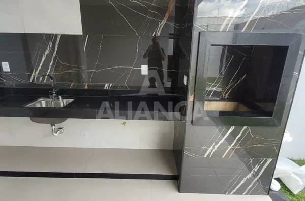 Sala de estar em dois ambientes, porta ACM em grande formato. 03 suítes, banheiro social, cozinha americana, área de serviço, varanda gourmet com churrasqueira, lavabo., preparação para água quente na cozinha e banheiros, preparação ar condicionado nos quartos e fotovoltaica, piso porcelanato, janelas em alumínio, localização privilegiada.