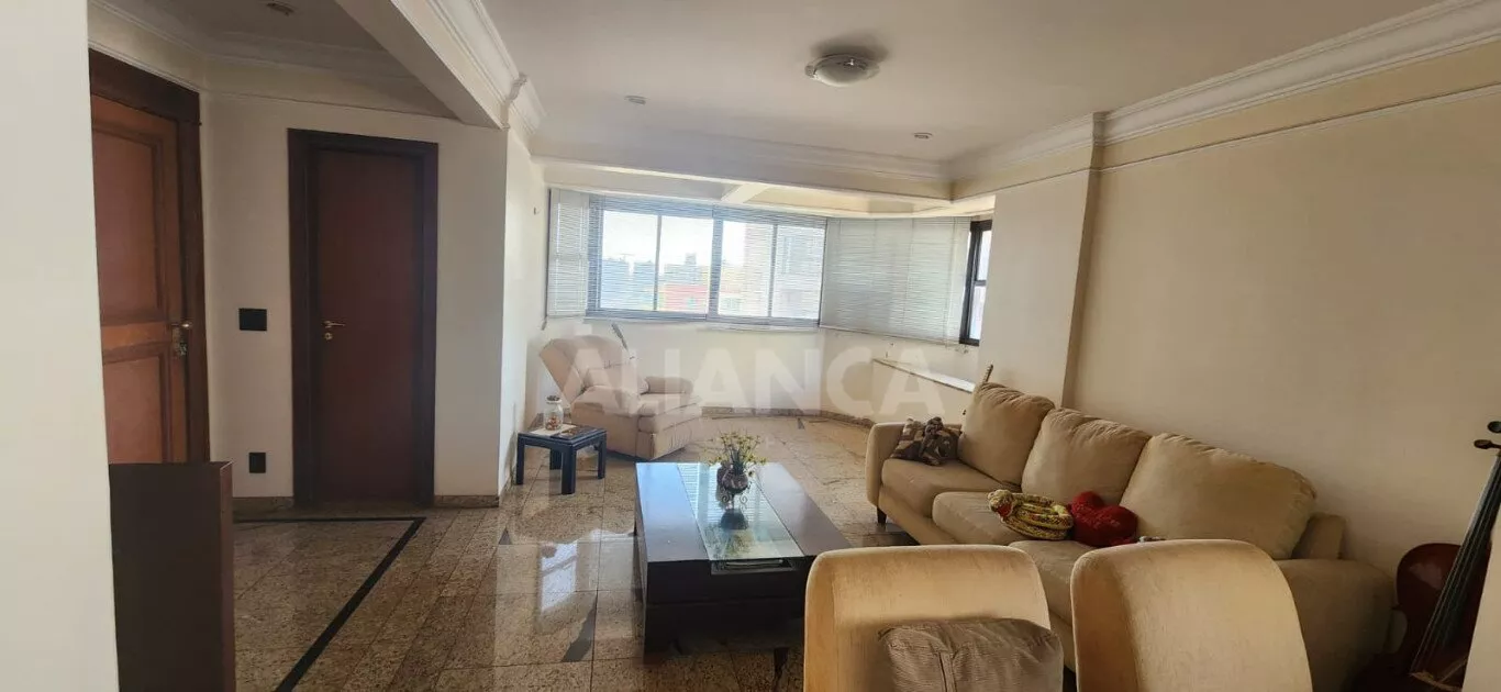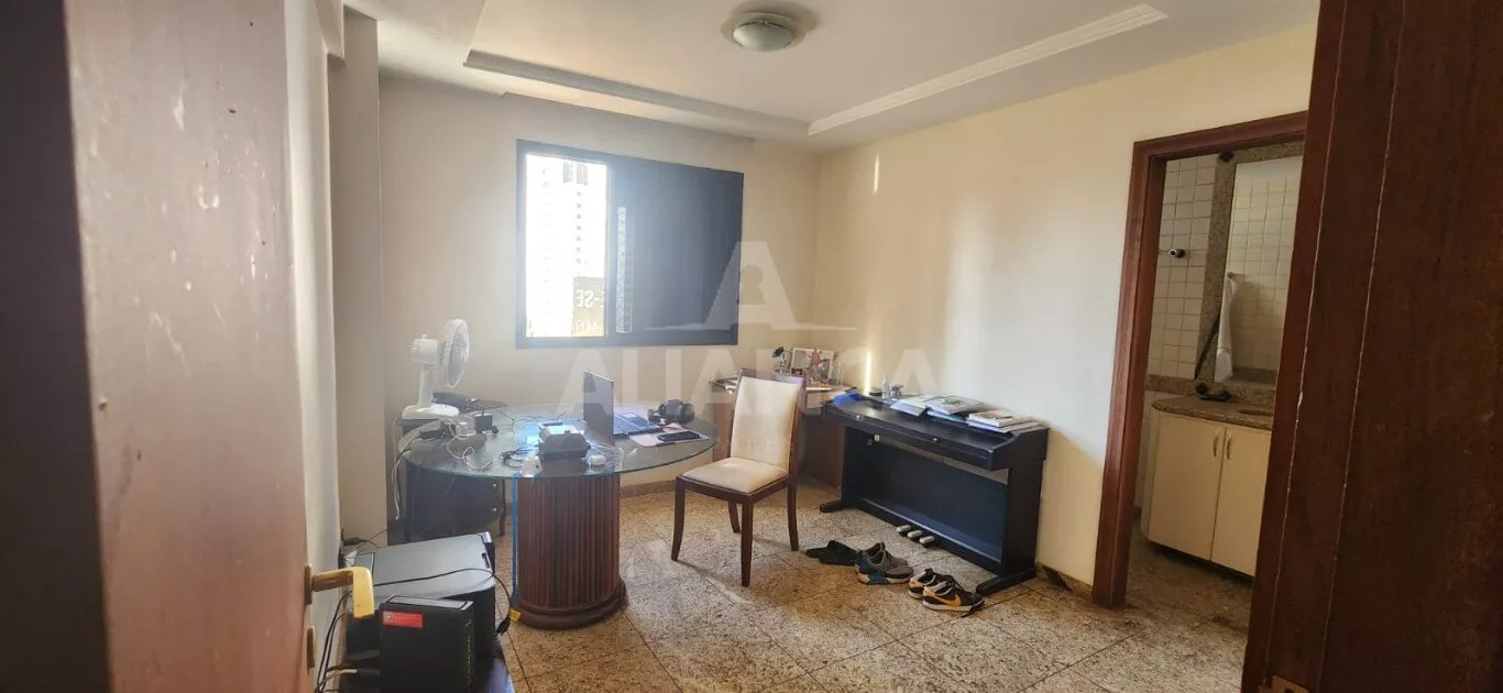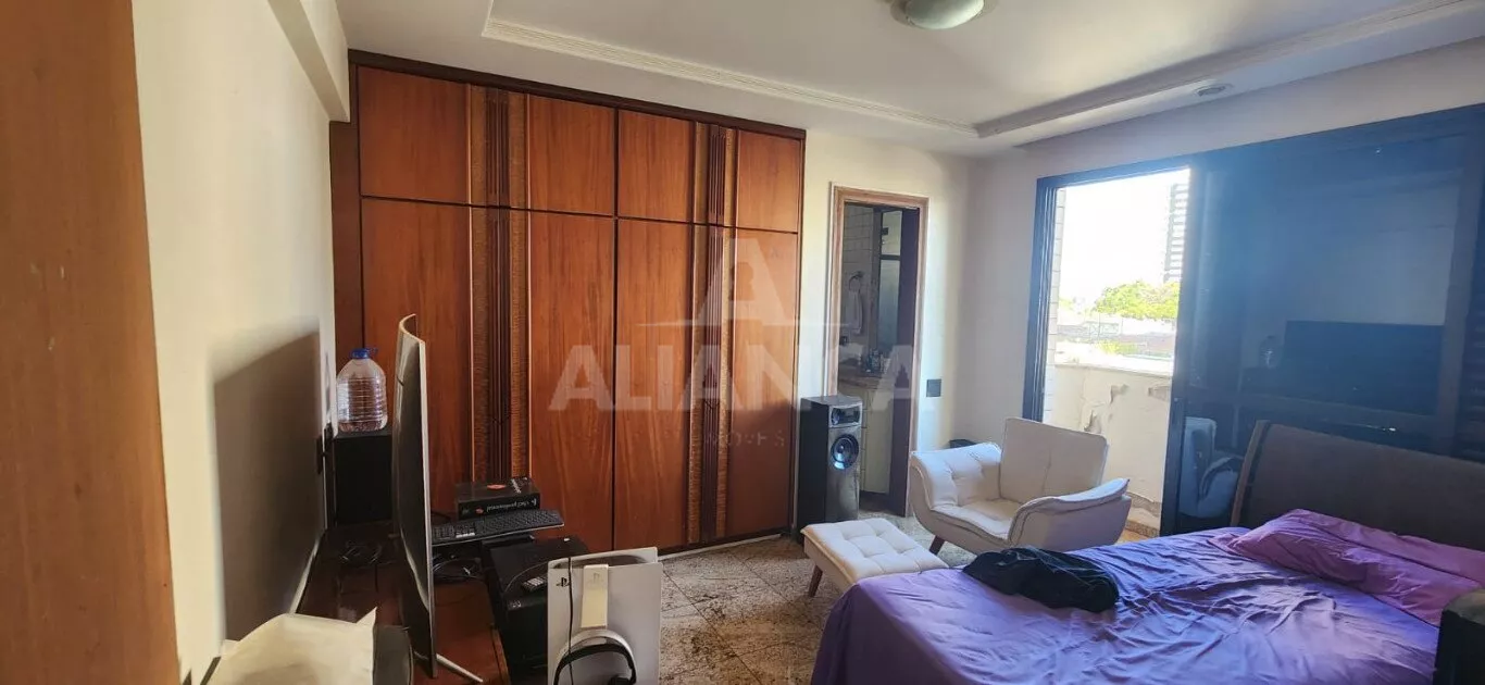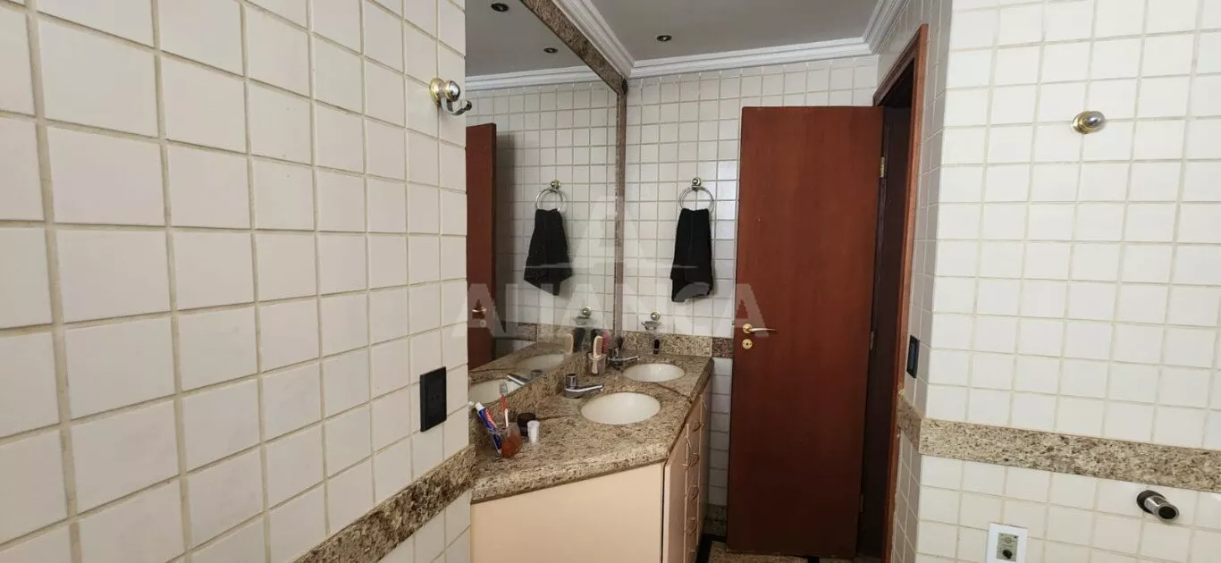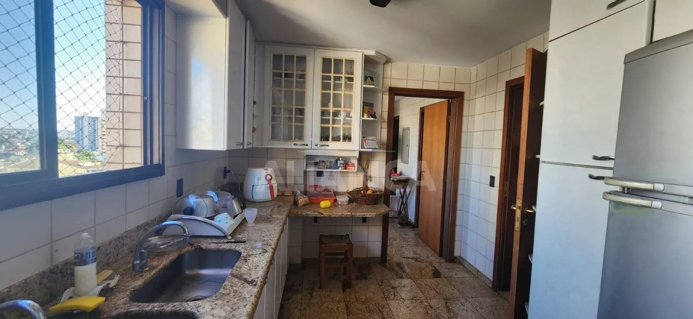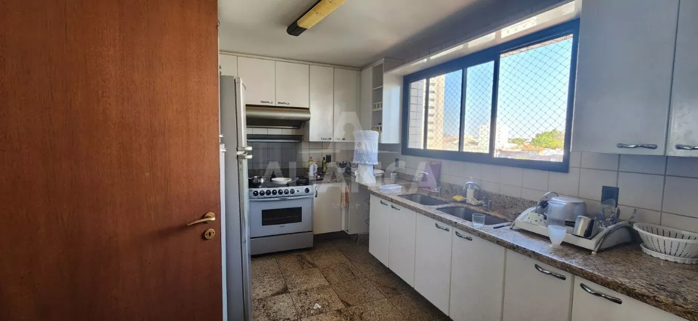 Sala em 03 ambientes, lavabo, sala jantar, cozinha planejada, areade serviços independente, dependência completa de empregada, 04 suítes sendo 02 com sacada, garagem para 03 carros independentes, portaria 24 horas, 02 elevadores, salão de festas com churrasqueira, piscina.