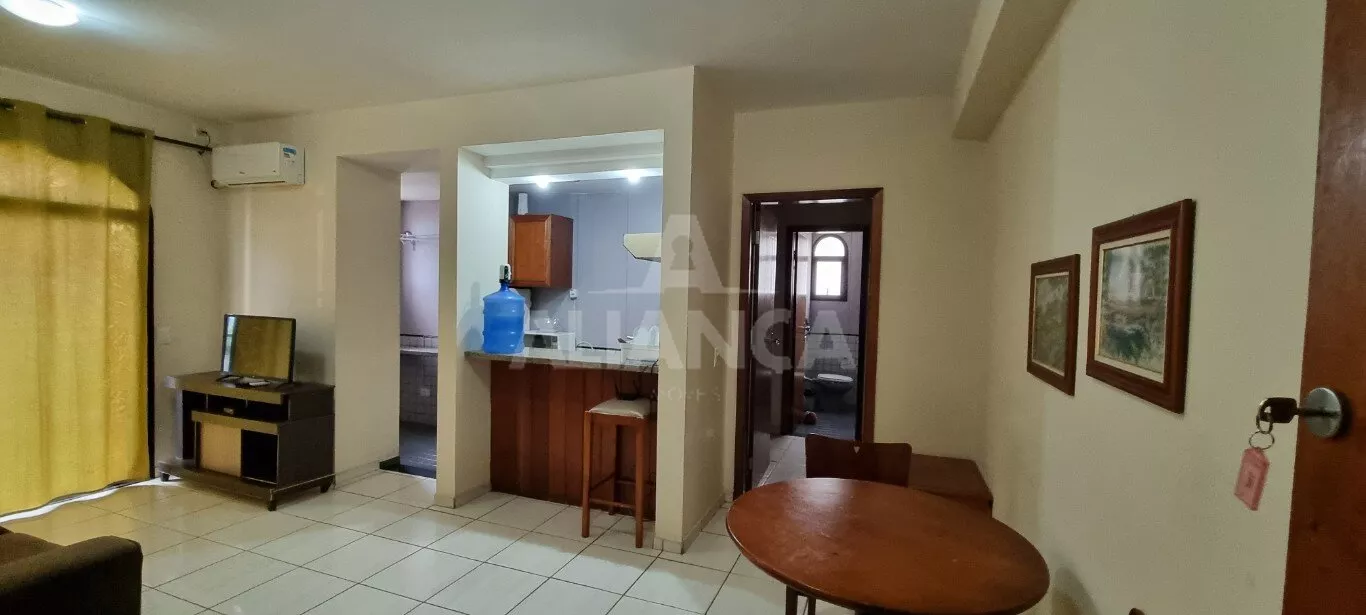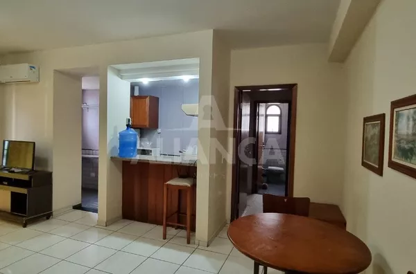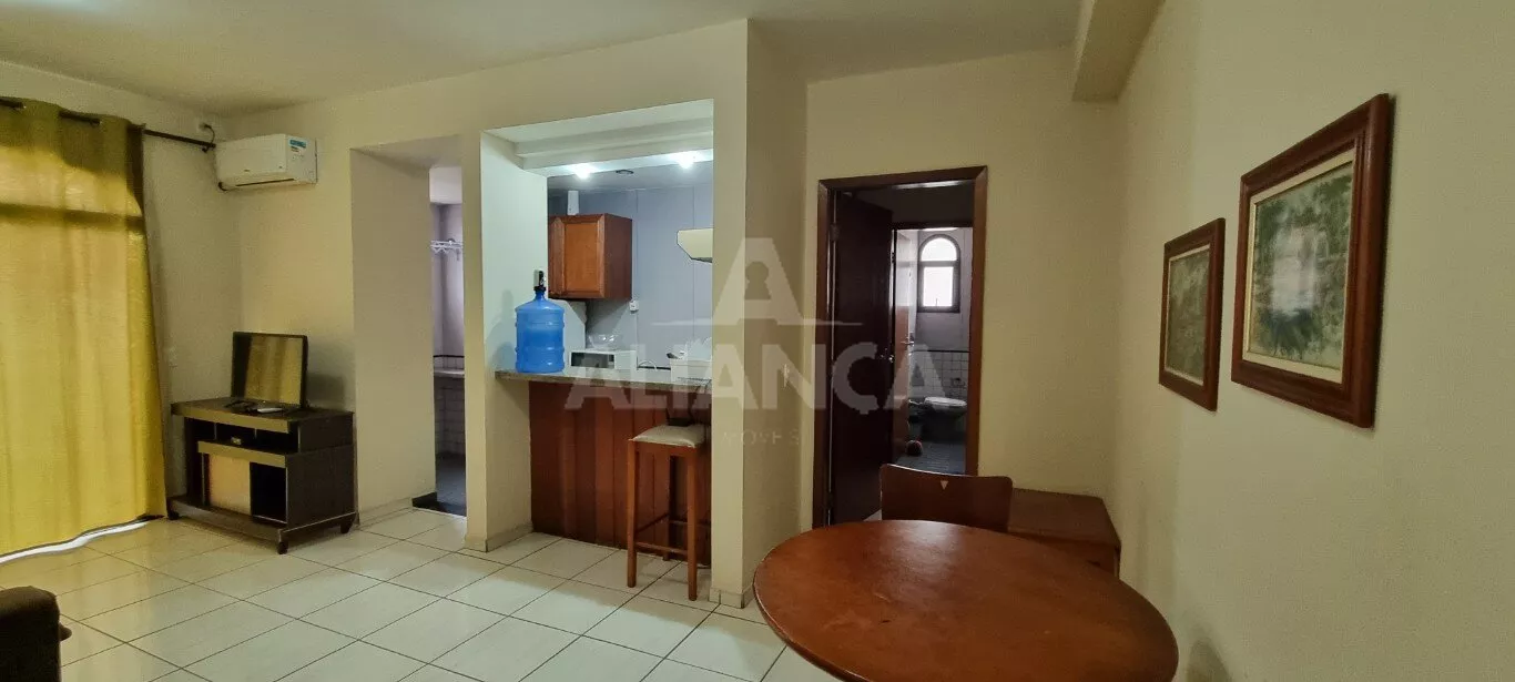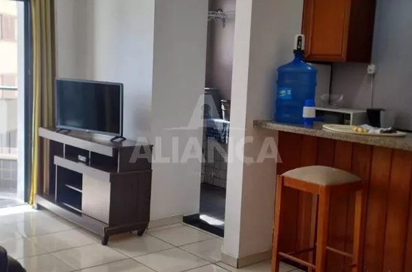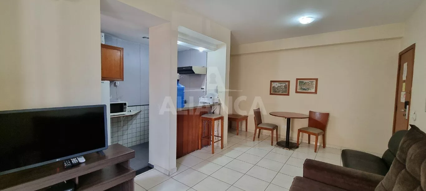 Excelente oportunidade para morar ou investir, flat com 54 metros, localizado na região central, sendo sala de estar com sacada, cozinha com armários, banheiro social, quarto com ar condicionado e armário, todo mobiliado com sofá, rack, Tv, mesa com 02 cadeiras, geladeira, fogão, forno micro ondas, cama de casal. Condomínio com portaria 24 horas, área de lazer (piscina, sauna, vestiários, academia, quadra para esporte, sala de jogos), manobrista para carros. 01 vaga.