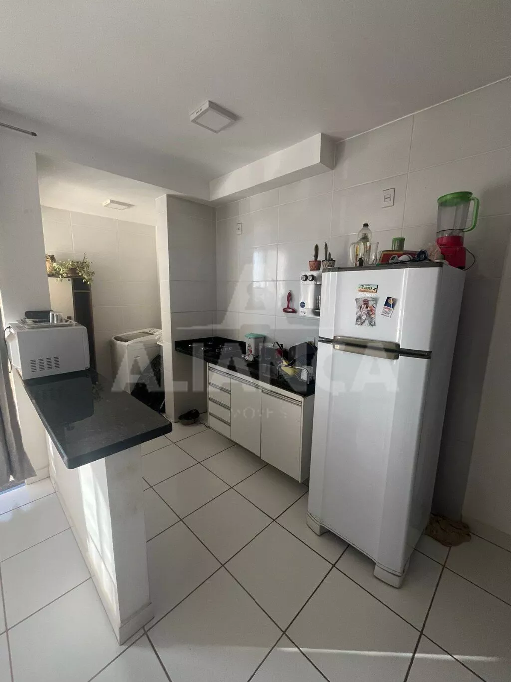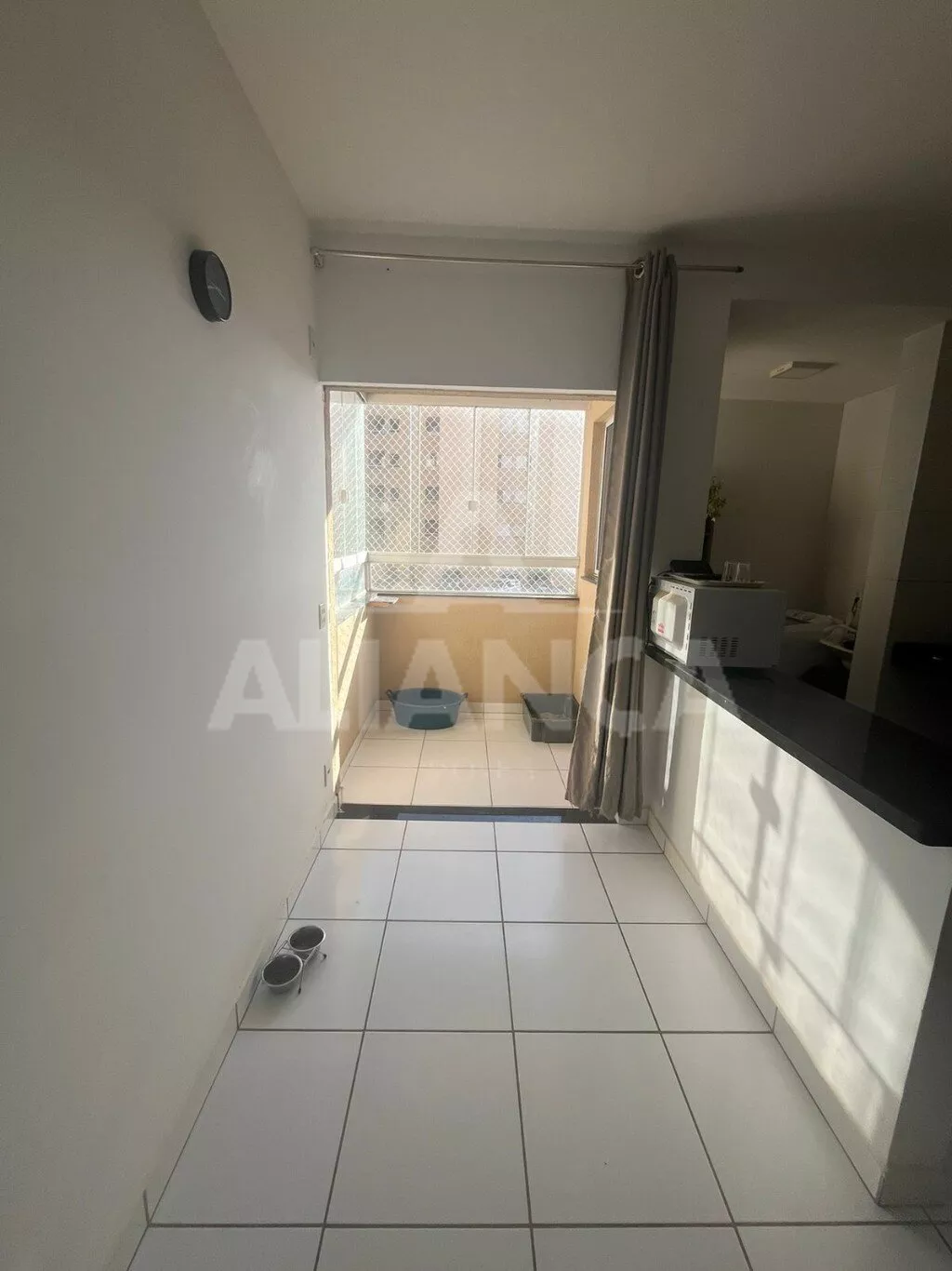 Sala de estar em dois ambientes com sacada fechada com vidro temperado, 02 quartos sendo 01 suíte com box , banheiro social, cozinha, com armário, cooktop instalado, área de serviço, elevador, 01 vaga, portaria. espaço gourmet.
