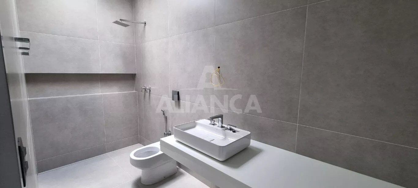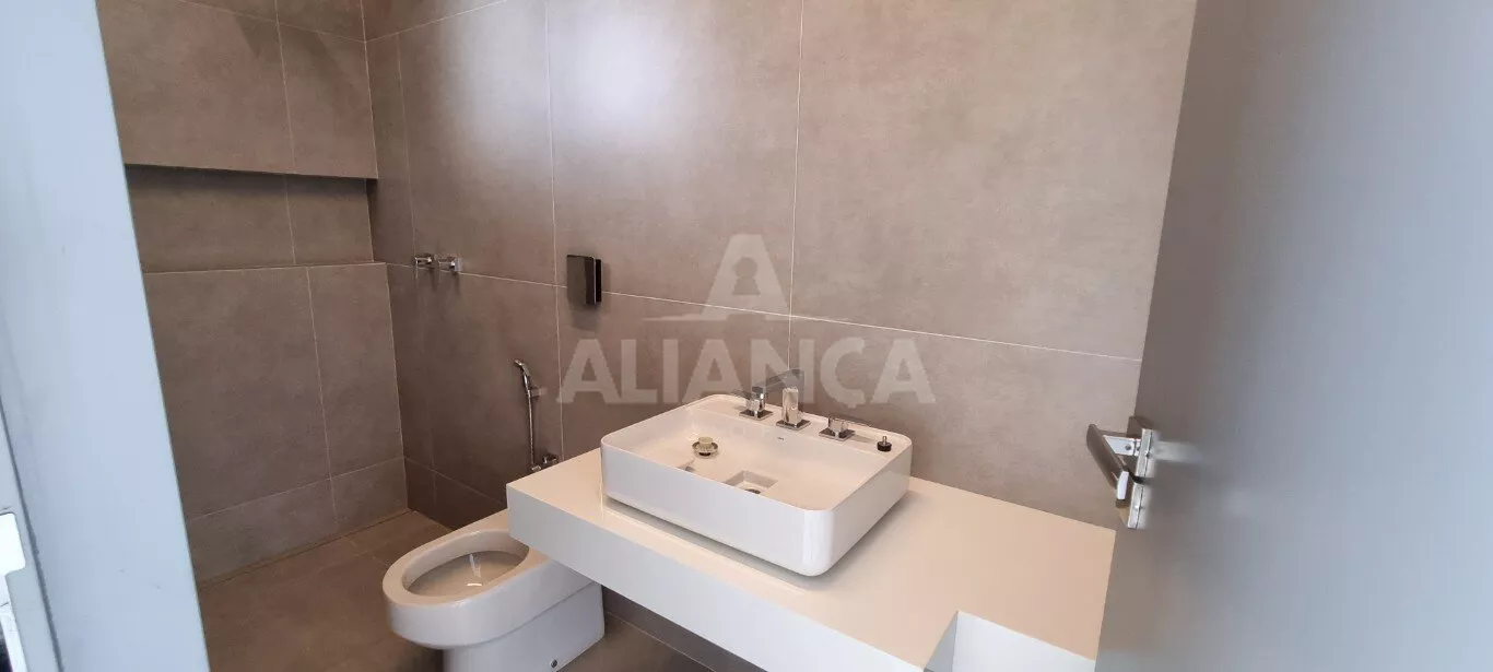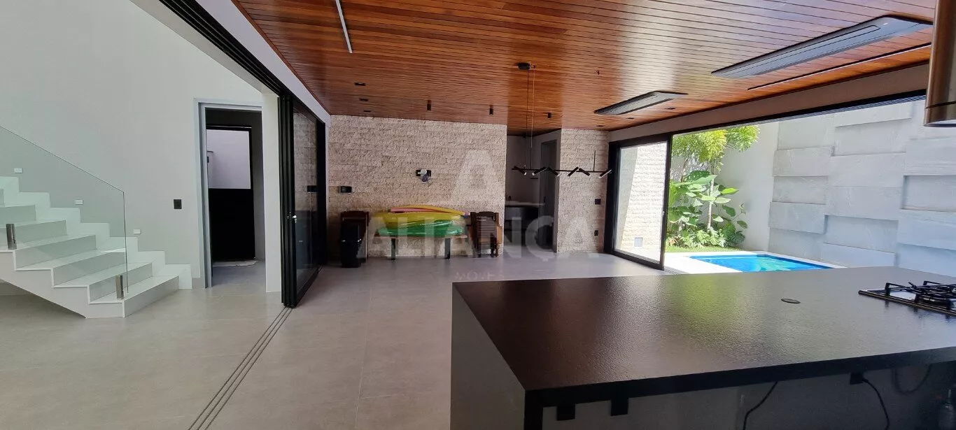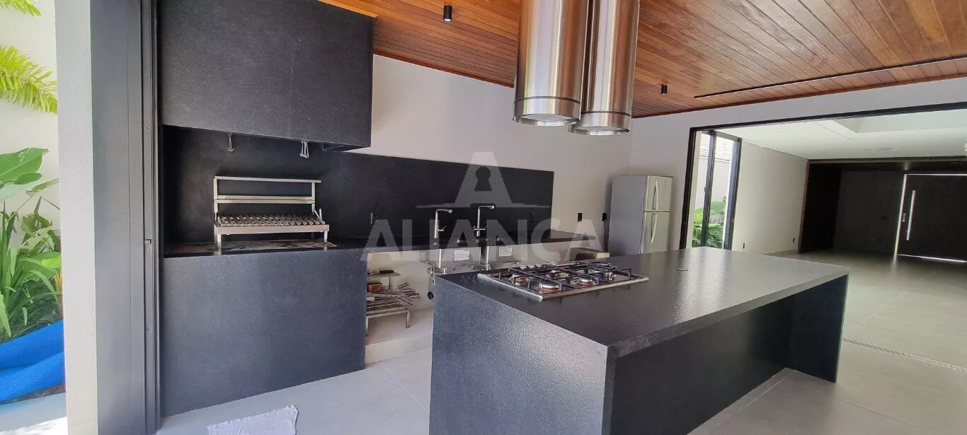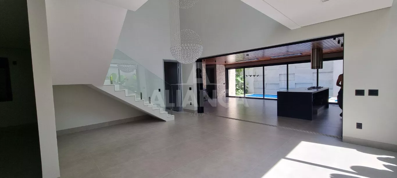 Imóvel 02 pavimentos, alto padrão, excelente acabamento, primeiro piso Sala de estar, sala jantar com pé direito duplo, sala de TV, escritório, cozinha integrada com área gourmet com ilha e churrasqueira tipo parrilla, lavabo masculino e feminino, área de serviço, depósito, garagem para 04 carros, piscina aquecida toda revestida em porcelanato, trocador de calor, gerador de cloro, automatização completa, spa com jatos de hidromassagem e led multicoloridos, segundo piso - mini copa para atendimento rápido ao segundo piso, 04 suítes, 03 com varanda, 01 master com closet e banheira de imersão, portas internas em ACM, projeto luminotécnico, piso porcelanato portinari 90x90, bancadas e escada em nonoglass branco, soleiras e bordas da piscina em mármore dolomiítico branco paraná montecristo, bacias e metais Deca e Docol, todas as suítes com ponto para ar condicionado cassete, sala de tv e área gourmet já climatizada com ar condicionado cassete de teto, venezianas automatizadas, preparação para ar condicionado, jardinagem com irrigação automatizada, sistema de alarme , cercas e CFTV instalados e funcionando, o imóvel conta com aquecimento solar de água e usina fotovoltáica com capacidade de geração de 900 kw mês, localização privilegiada.