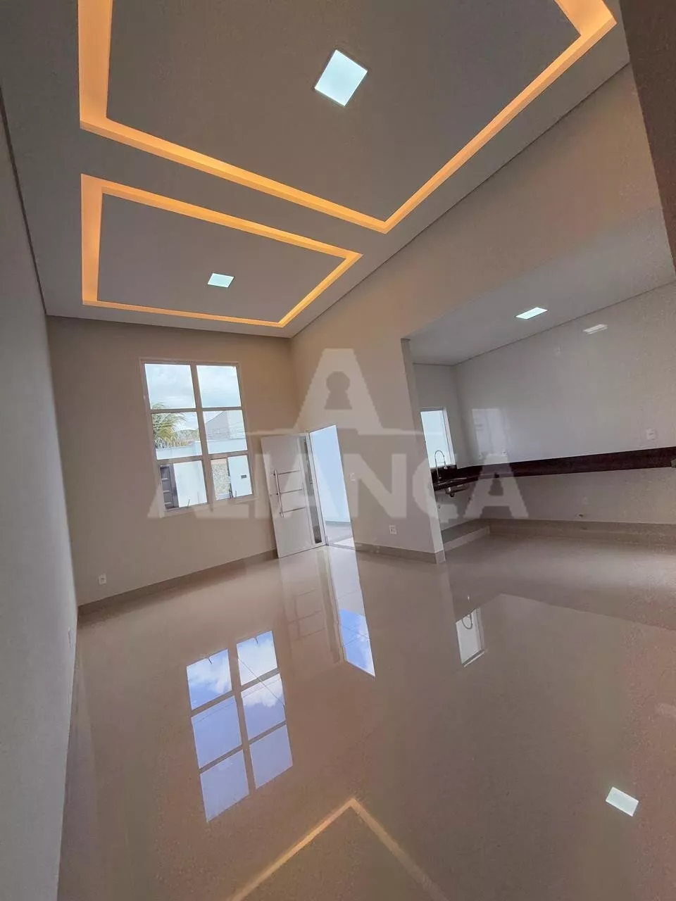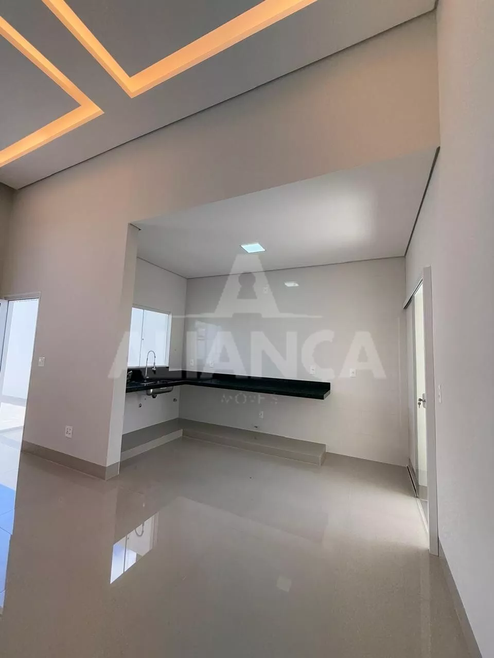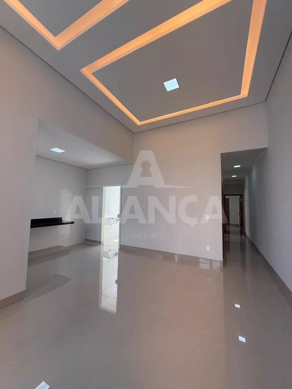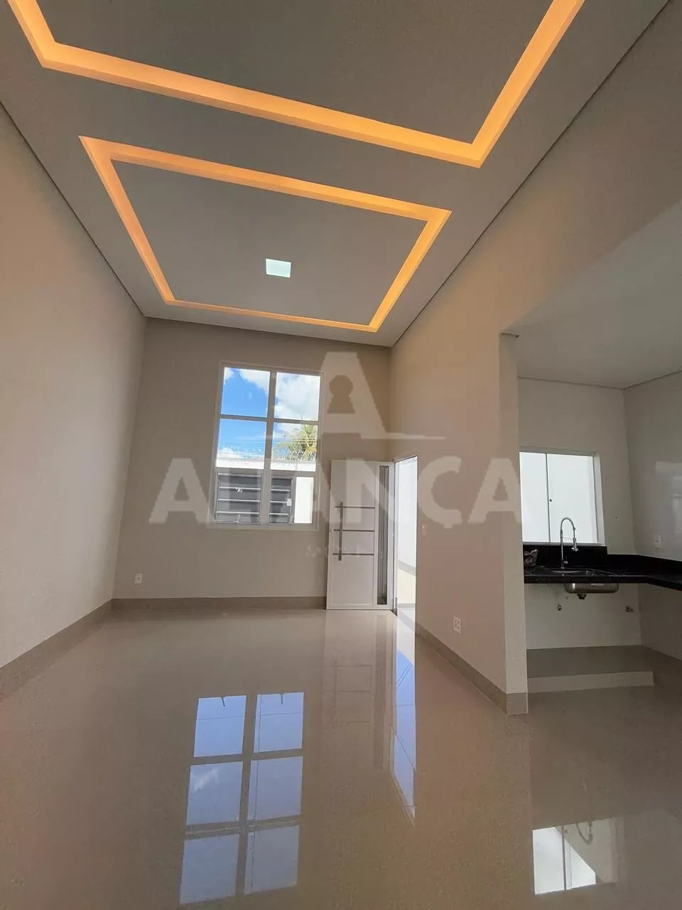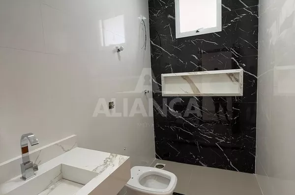 Sala de estar com pé direito duplo, cozinha americana, banheiro social, 03 quartos sendo 01 suíte, 02 vagas, quintal com espaço para lazer/ gourmet, ótimo acabamento.