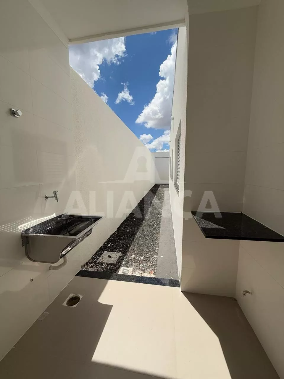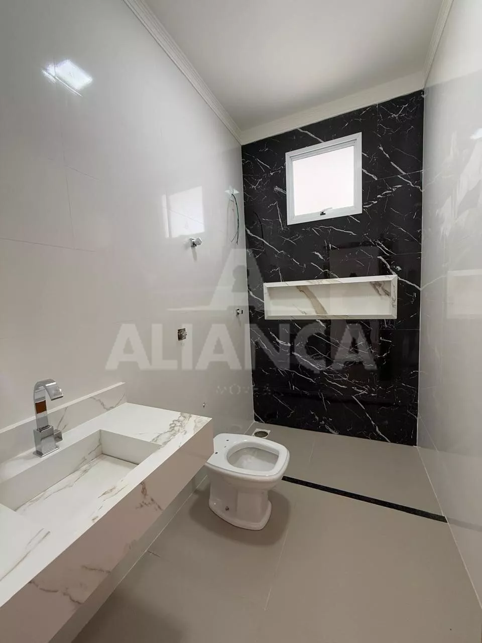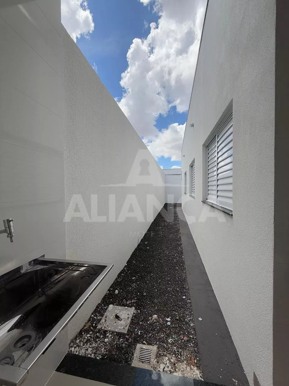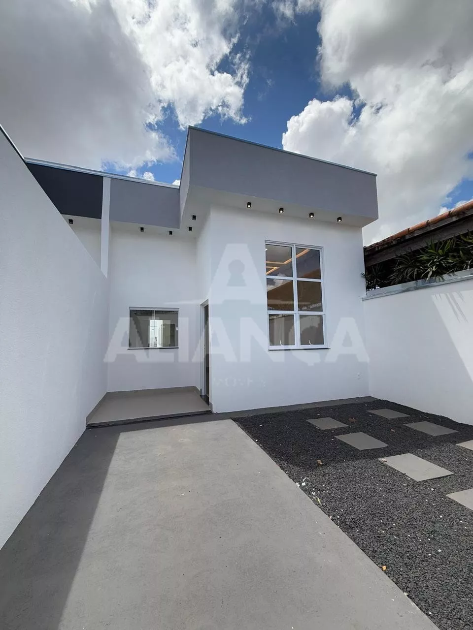 Sala de estar com pé direito duplo, cozinha americana, banheiro social, 03 quartos sendo 01 suíte, 02 vagas, quintal com espaço para lazer/ gourmet, ótimo acabamento.