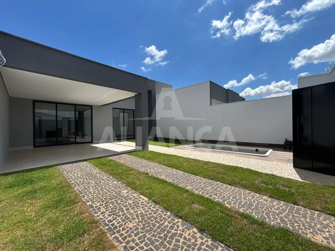 Sala e copa com pé direito de 4,5 metros, cozinha gourmet com churrasqueira a carvão, 03 quartos sendo 01 suíte com closet e jardim de inverno, escritório, piscina aquecida, água quente nos banheiros e cozinha, garagem para 04 carros sendo 02 cobertos, projeto moderno, jardinagem.
