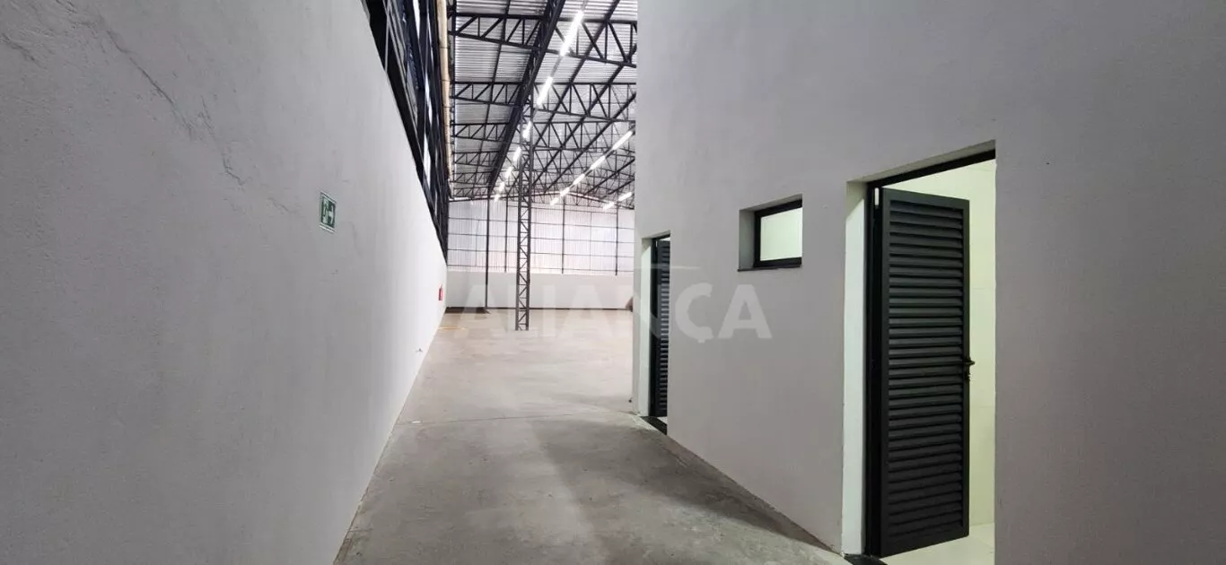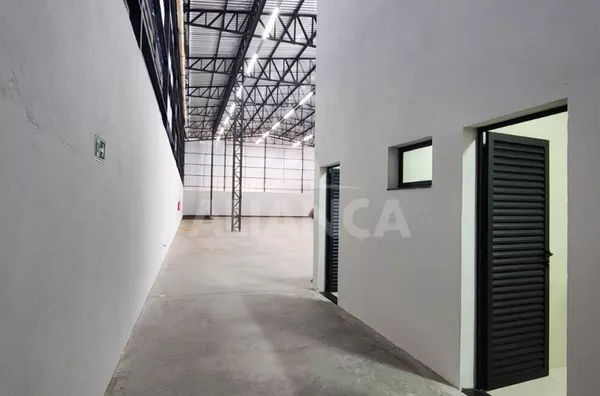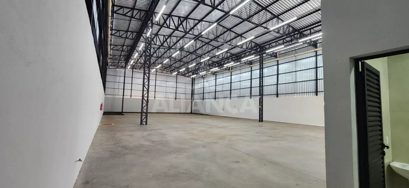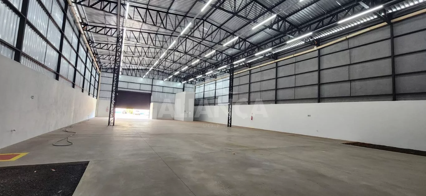 Excelente barracão novo com 1000m² de terreno, 900m² de construção com cozinha, banheiros masculino e feminino, 8 metros de pé direito, estacionamento.