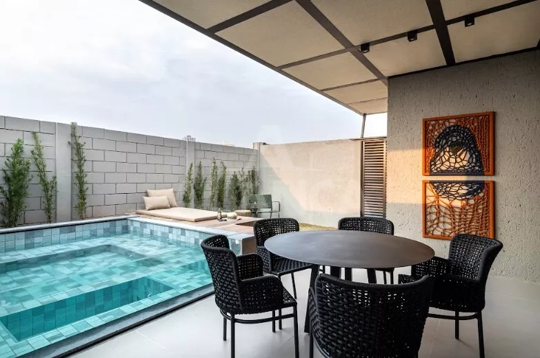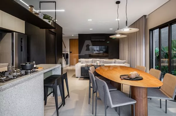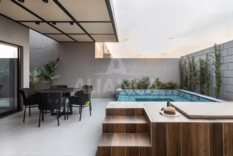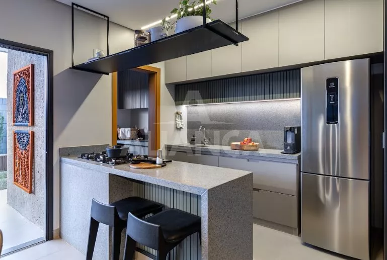 Casa em condomínio, sendo no primeiro piso sala, lavabo, cozinha, integrada com varanda, área de serviço, garagem, segundo piso suíte com closet, 02 suítes americana, estação de trabalho, arquitetura moderna, alto padrão de acabamento, condomínio com lazer completo e todo montado, piscina com deck molhado, quadra de beach tenis, academia equipada com espaço para crossfit/funcional, brinquedoteca, playground, salão de festas, espaço gourmet, coworking, pet place, sauna, segurança, guarita, portaria 24 hs, câmeras de monitoramento.