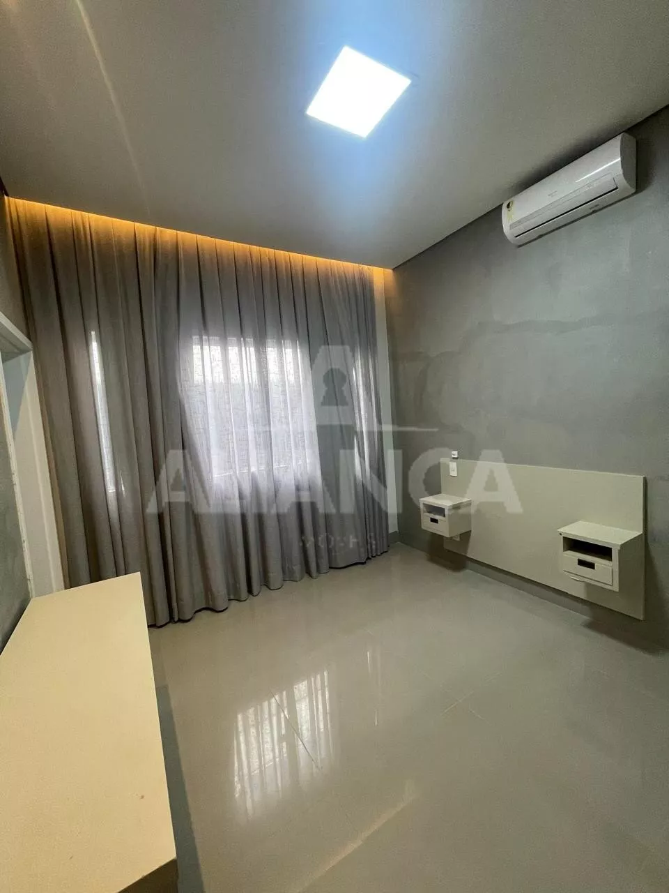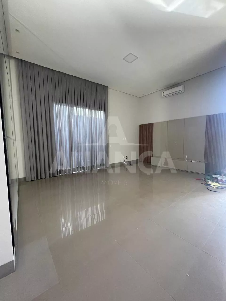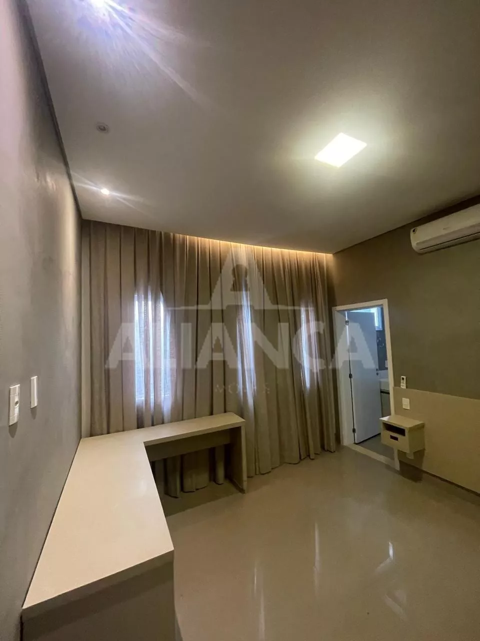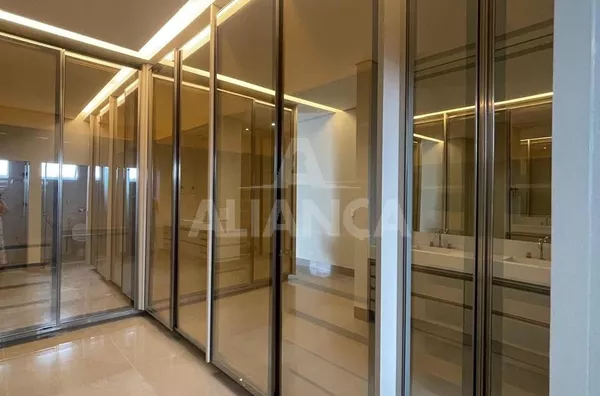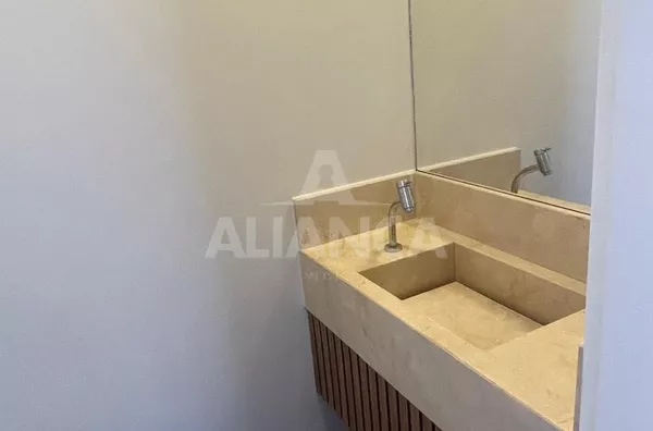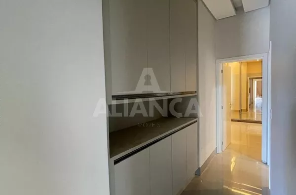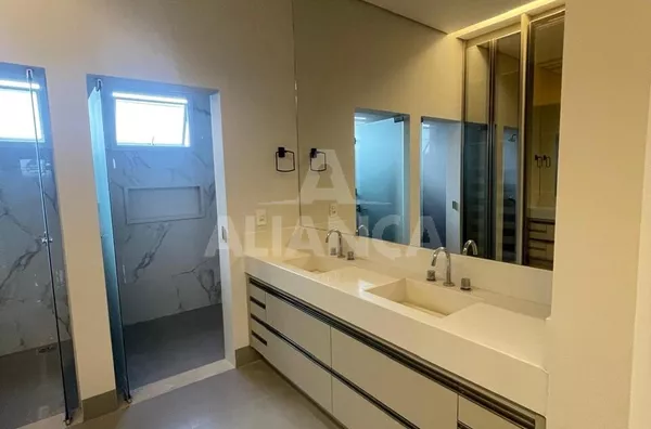 Sala ampla, com cortinas automatizadas, integrada com cozinha, lavabo, lavanderia, despensa, 03 suítes sendo 01 master com closet e banheiro com 02 cubas, armários em todos os cômodos, piscina, área pet, condomínio com lazer completo, alto padrão.