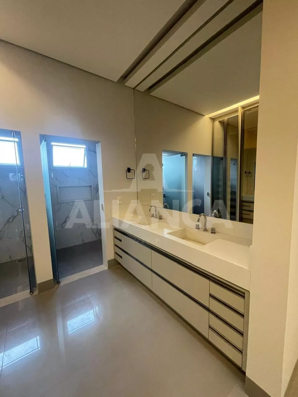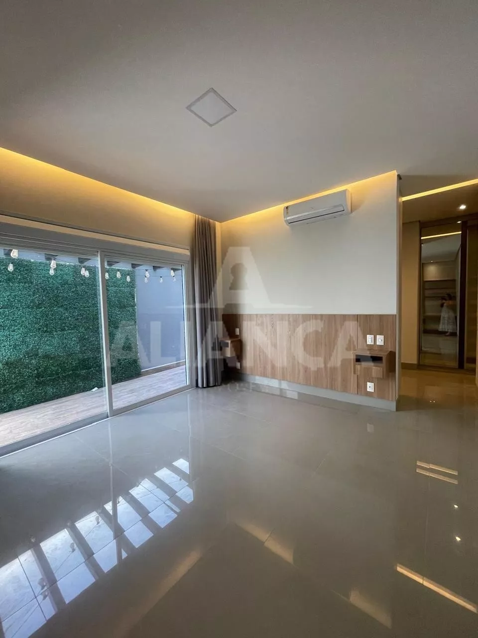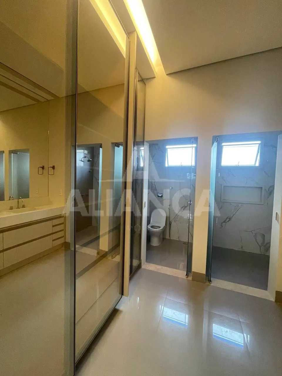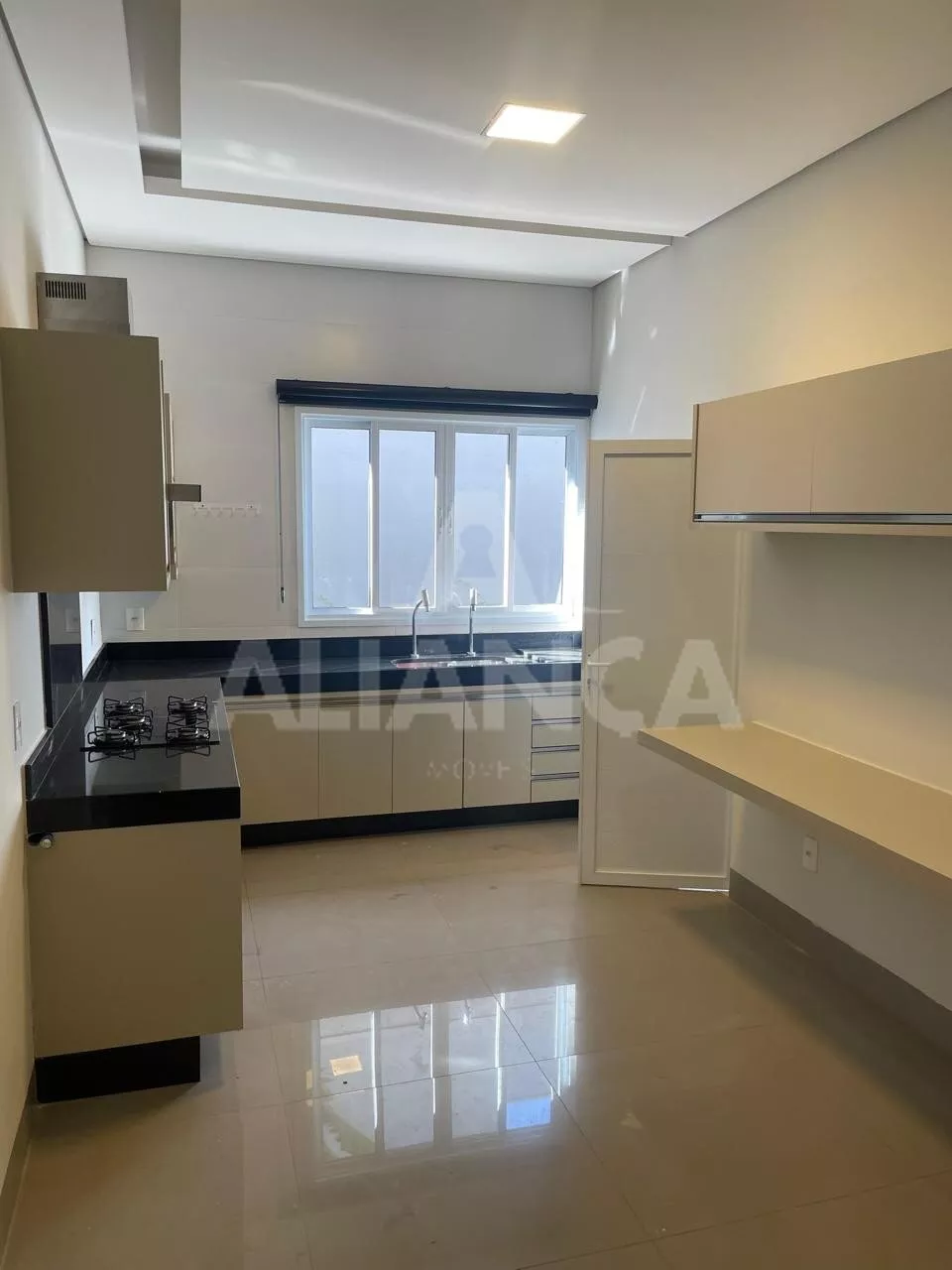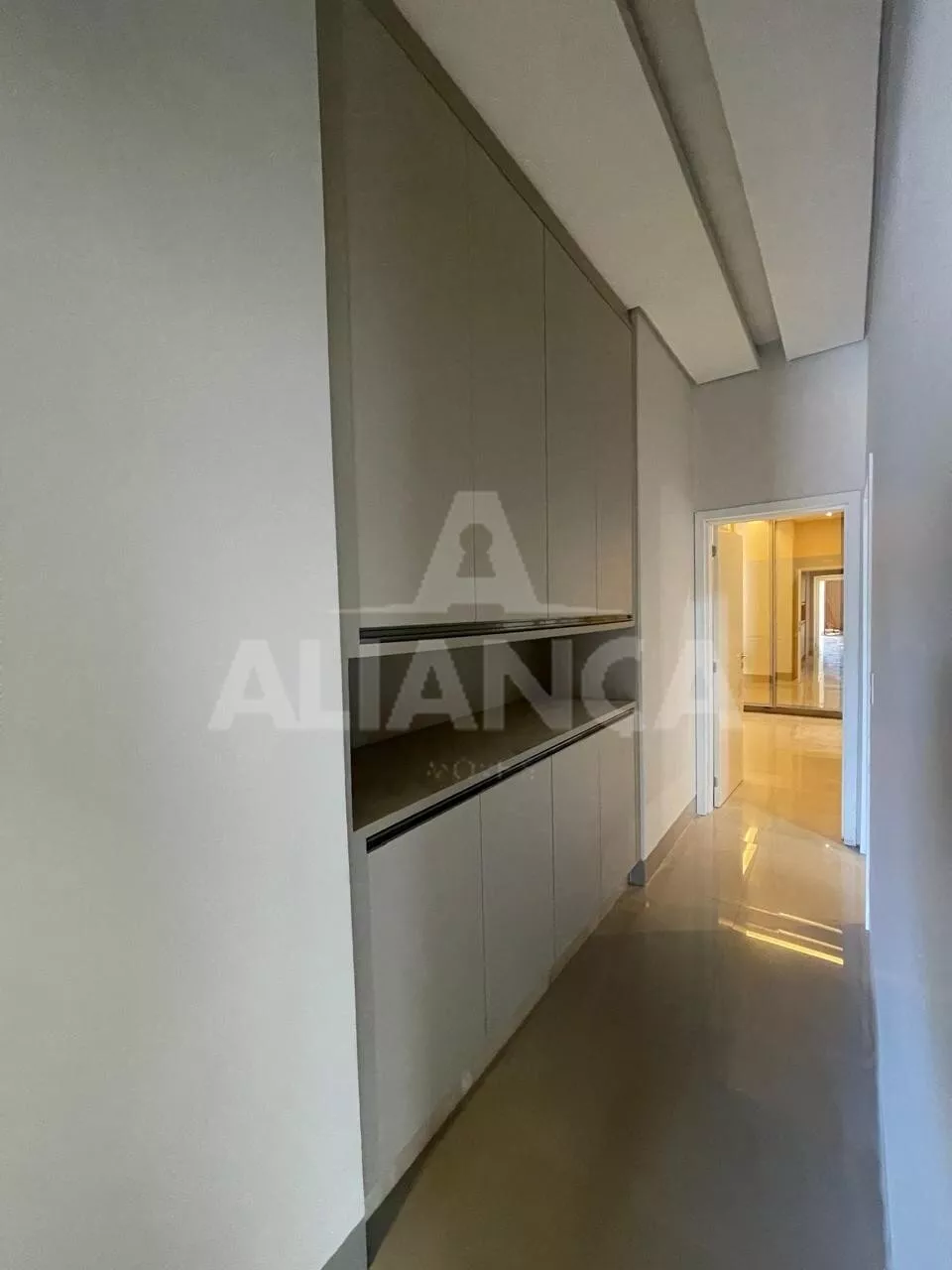 Sala ampla, com cortinas automatizadas, integrada com cozinha, lavabo, lavanderia, despensa, 03 suítes sendo 01 master com closet e banheiro com 02 cubas, armários em todos os cômodos, piscina, área pet, condomínio com lazer completo, alto padrão.
