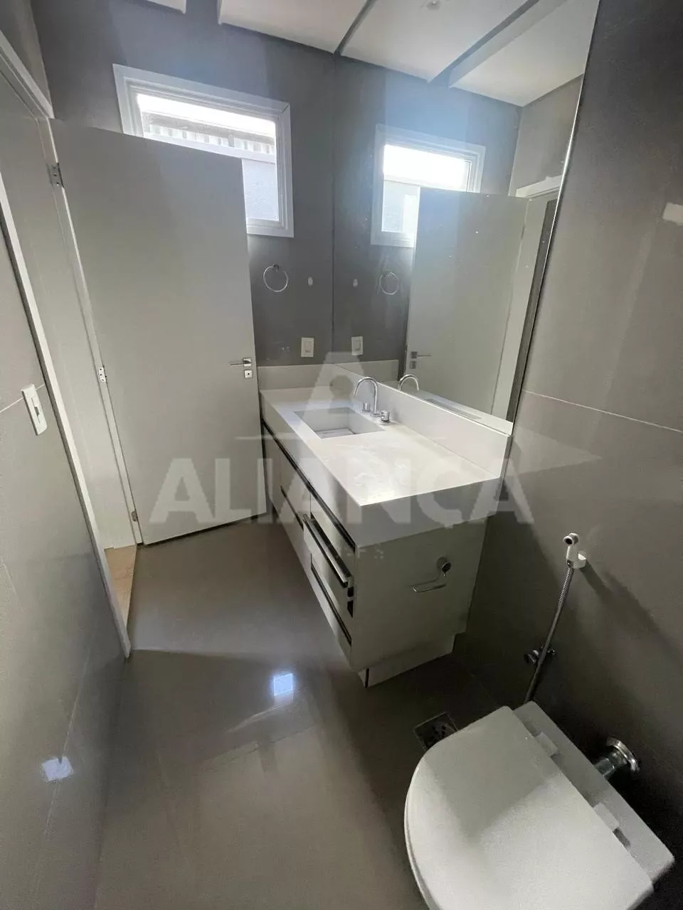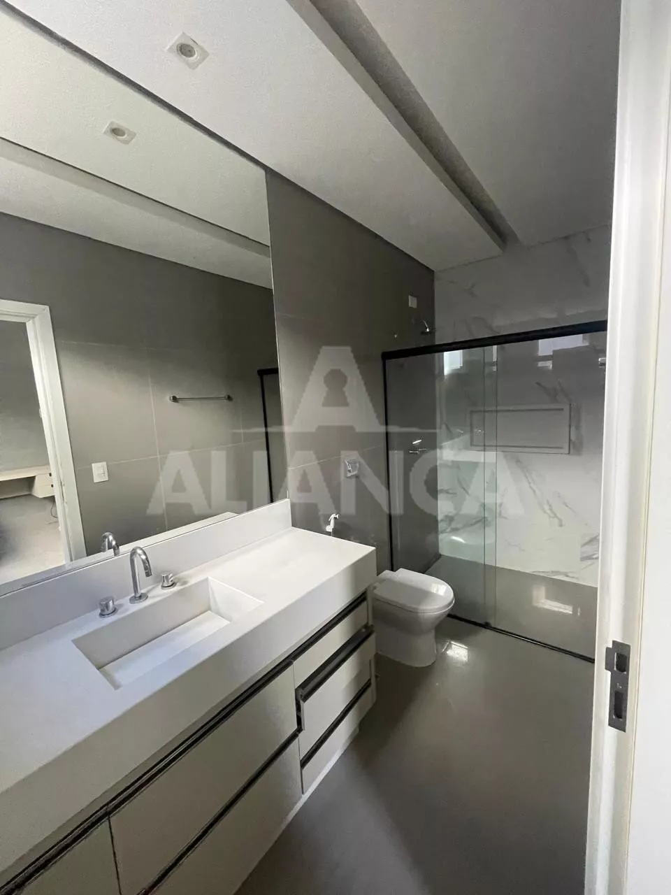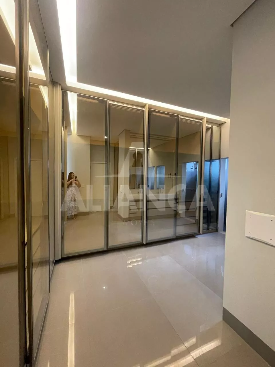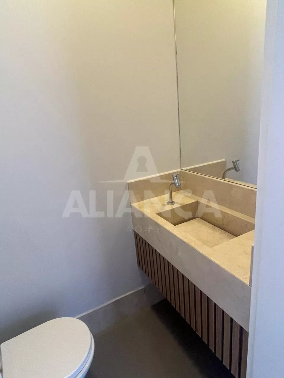 Sala ampla, com cortinas automatizadas, integrada com cozinha, lavabo, lavanderia, despensa, 03 suítes sendo 01 master com closet e banheiro com 02 cubas, armários em todos os cômodos, piscina, área pet, condomínio com lazer completo, alto padrão.