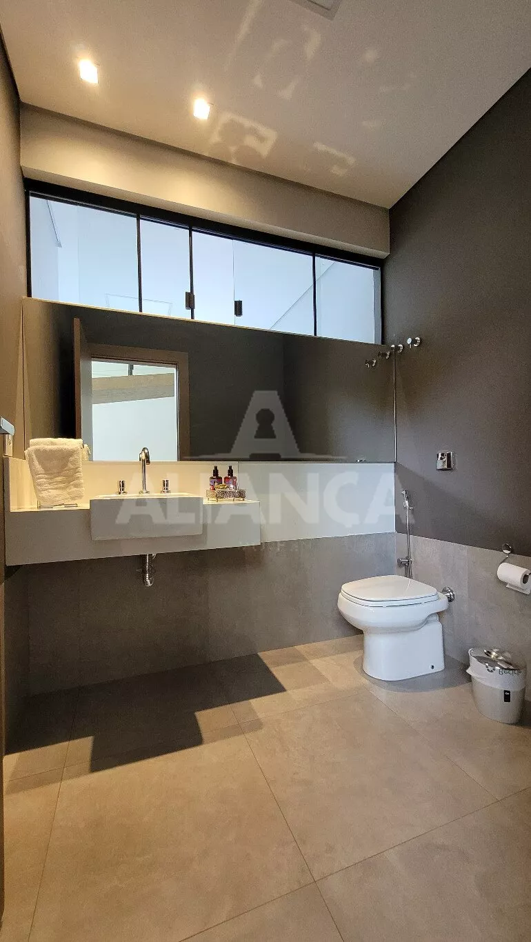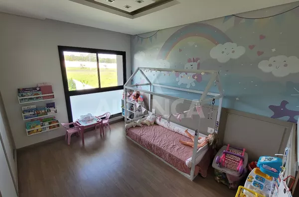 Casa de 2 andares com rampa para acessibilidade, toda montada com armários, sendo no primeiro andar: escritório, lavabo, sala de estar e jantar integradas, cozinha com ilha central, despensa, banheiro, lavanderia e quintal. Segundo andar: sala de TV, 3 quartos sendo 2 suítes, 1 master com closet e 1 comum. Garagem para 2 carros cobertos e 02 descobertos, aquecedor solar e placas fotovoltaicas.