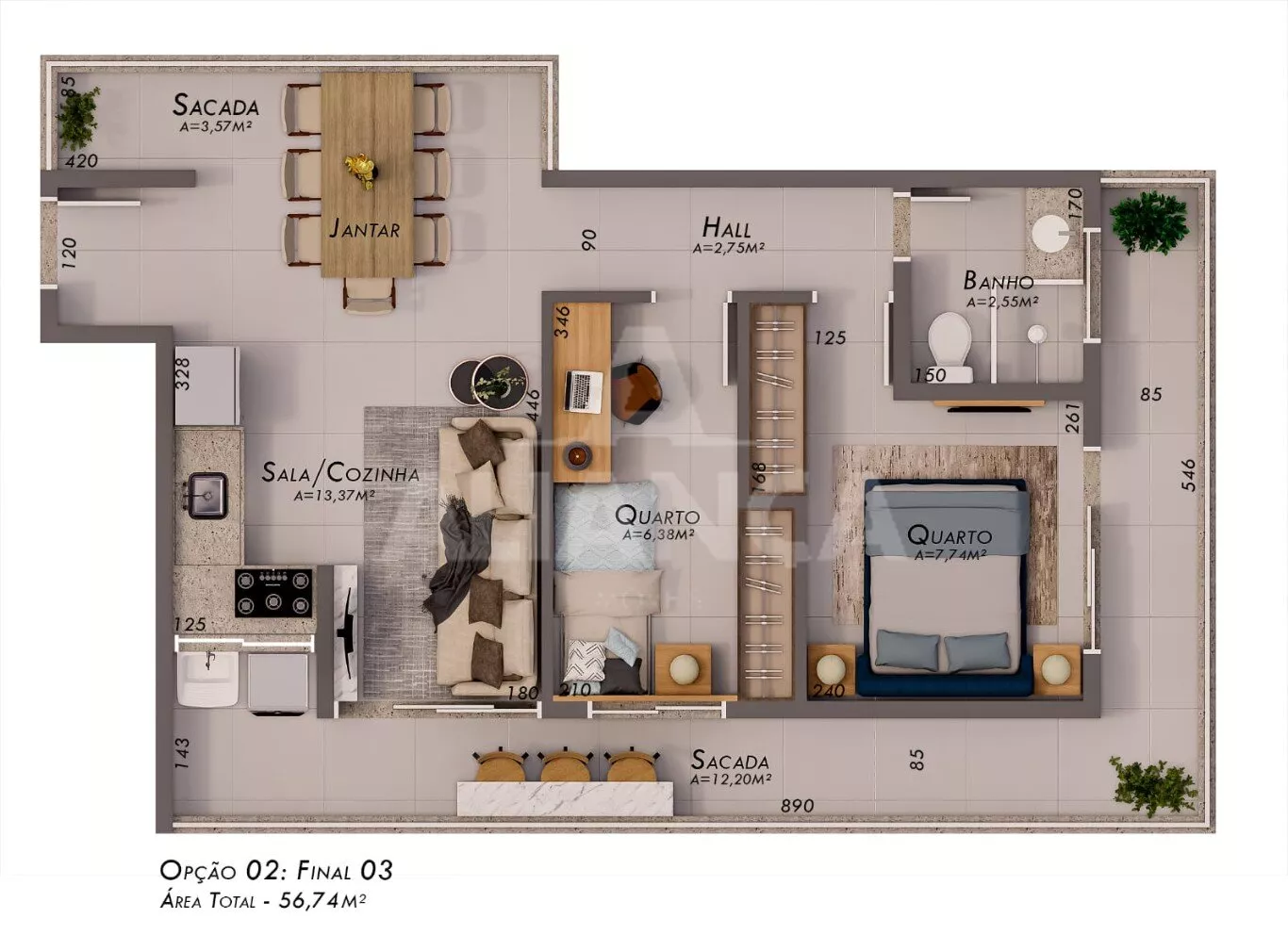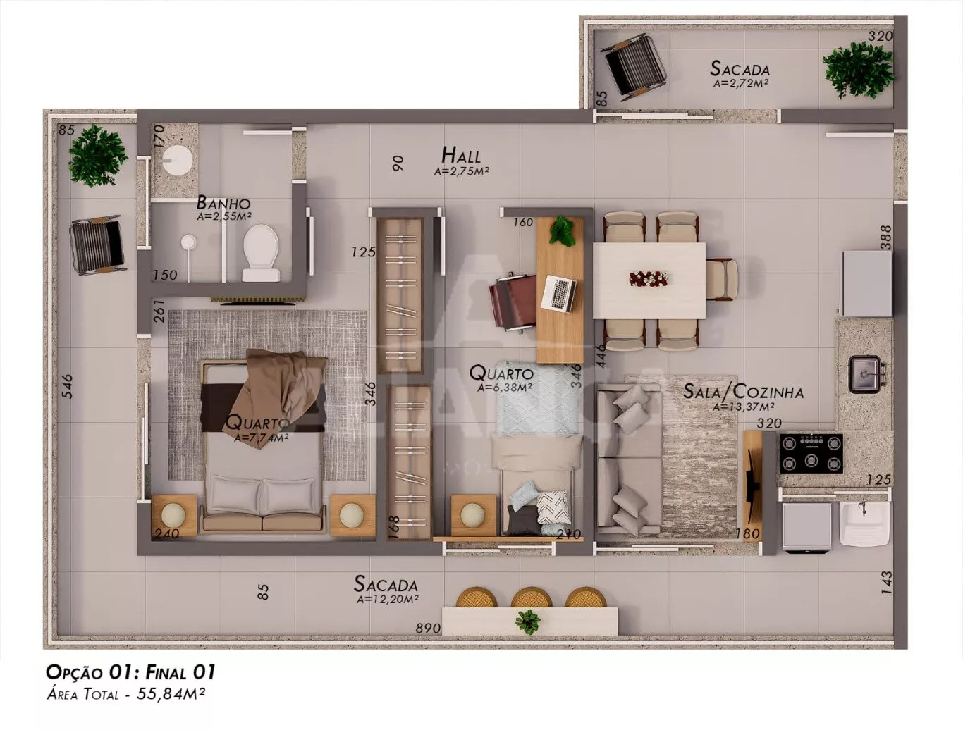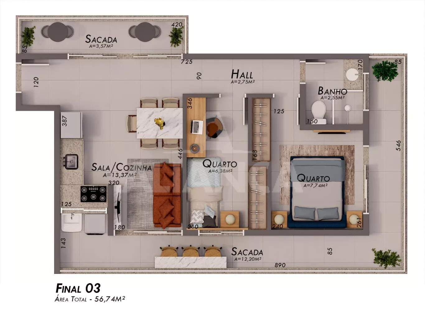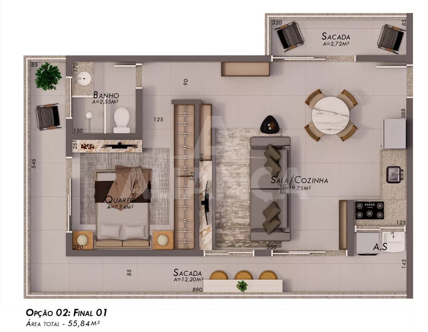 Apartamento tipo studio, sala de estar, quartos, banheiro social, cozinha, área de serviço, 01 vaga de garagem, elevador, quiosque de lazer com churrasqueira e carvão, pia, geladeira e mesas. Localização privilegiada,.