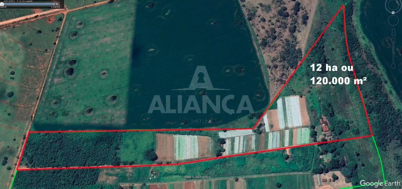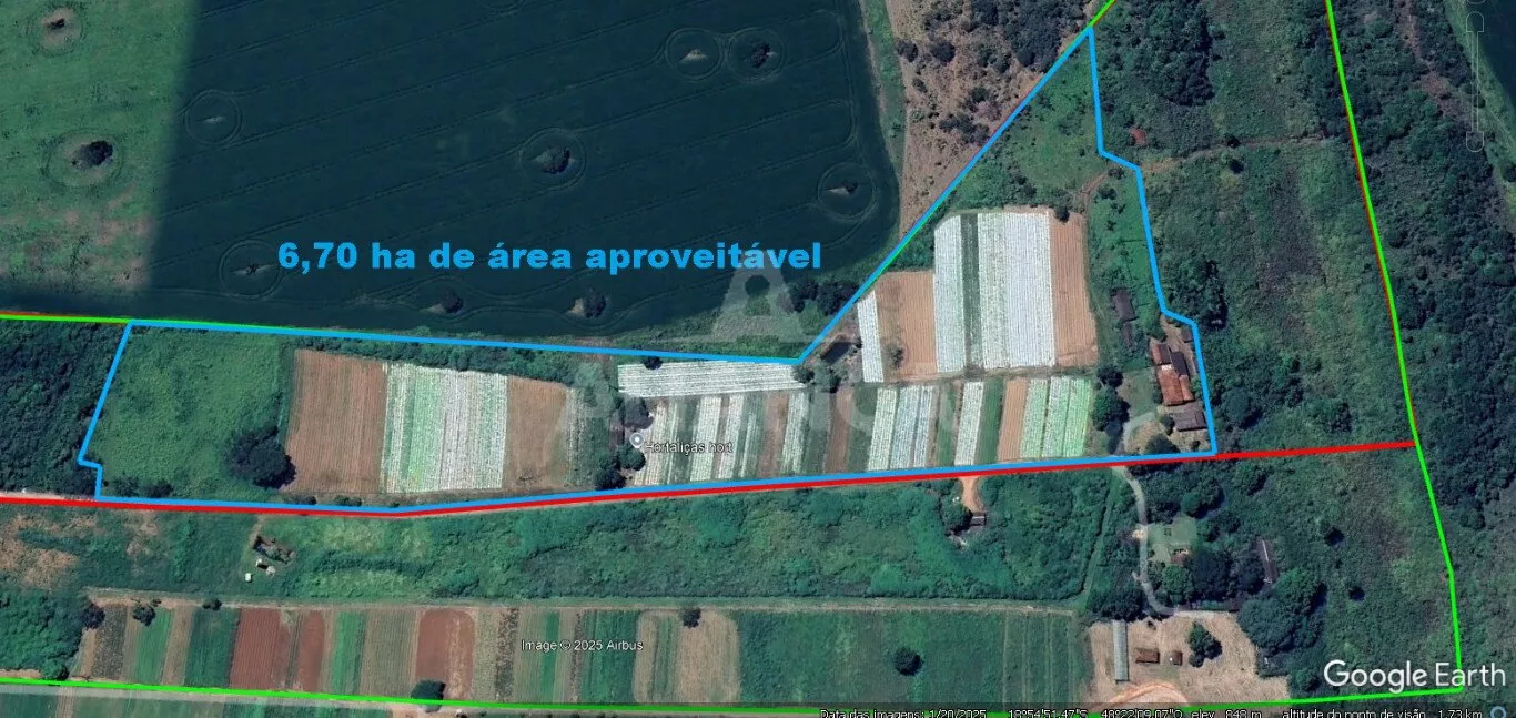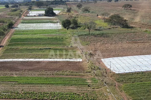 Uma gleba de terras de 12,10 Hectares destinada à finalidade de exploração rural para plantio de hortaliças, com aproveitamento girando em torno de 56 %, , sendo o restante (44 %) compõe Área de Reserva Legal e APP; possui benfeitorias ocupando aproximadamente 2.000 m² da área total, com sede avarandada, galpão, curral e demais pequenas construções.