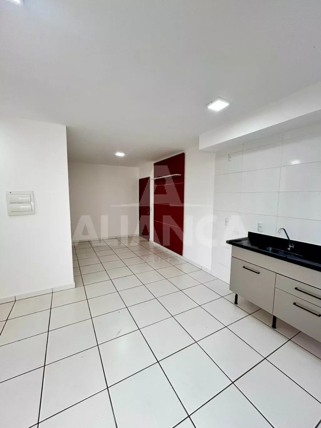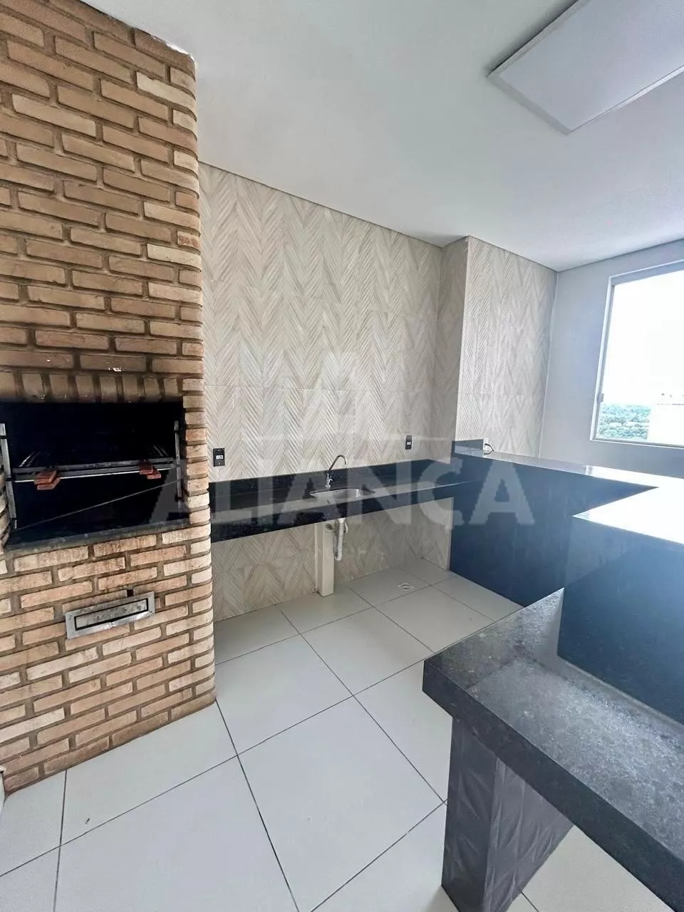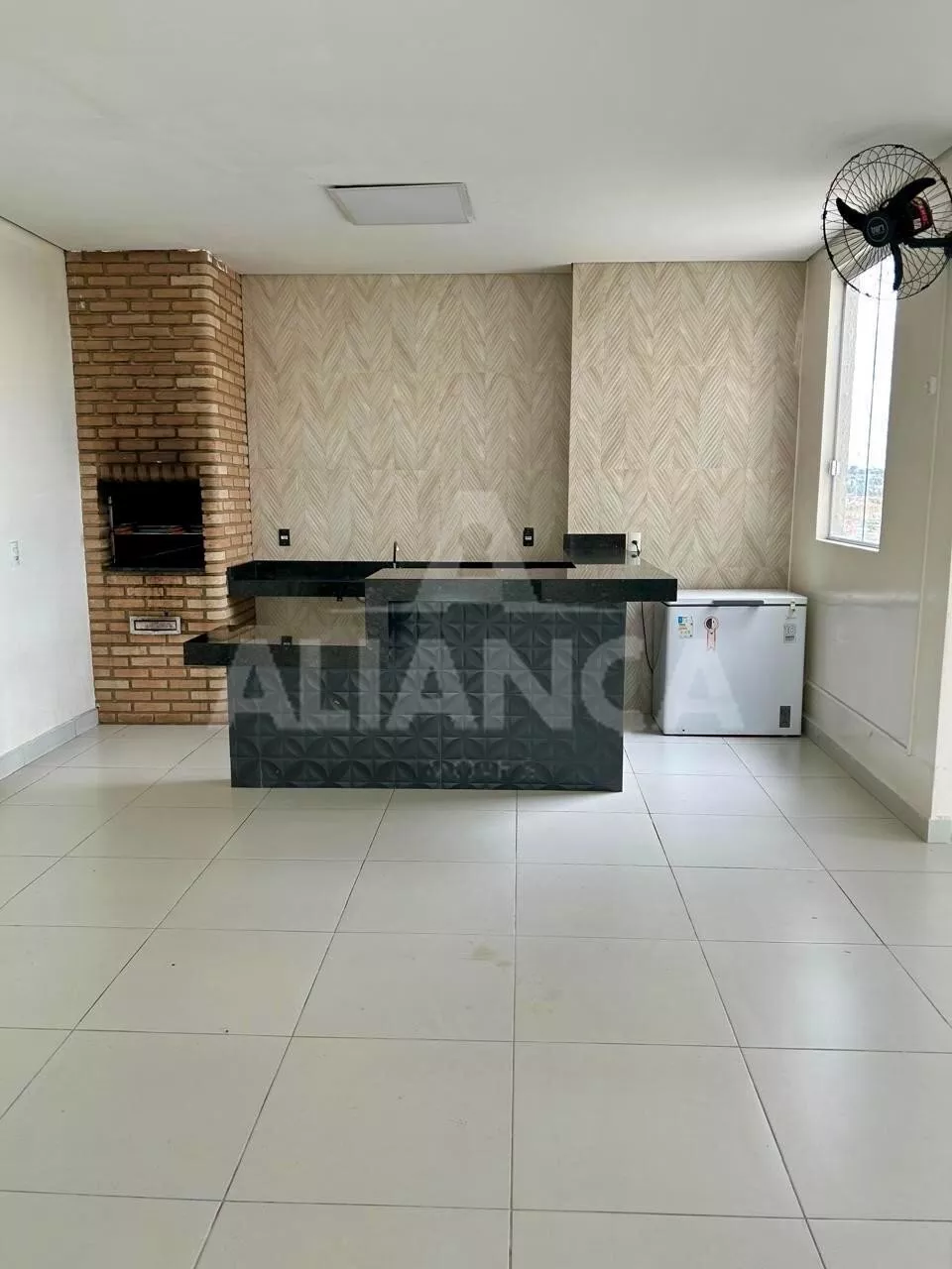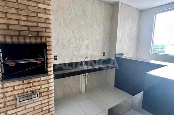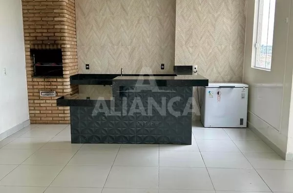 Sala em 02 ambientes com sacada, 02 quartos sendo 01 suíte, banheiro social, cozinha, área de serviço, estacionamento para 01 carro, 02 elevadores, gás canalizado, portaria 24 hs, mini mercado, churrasqueira, bicicletario.