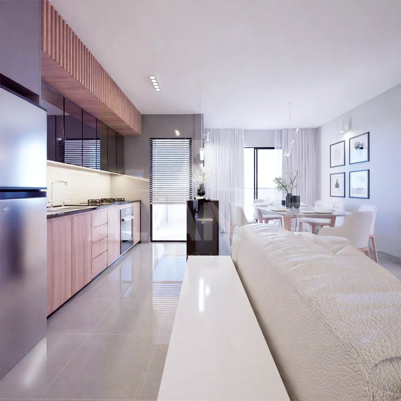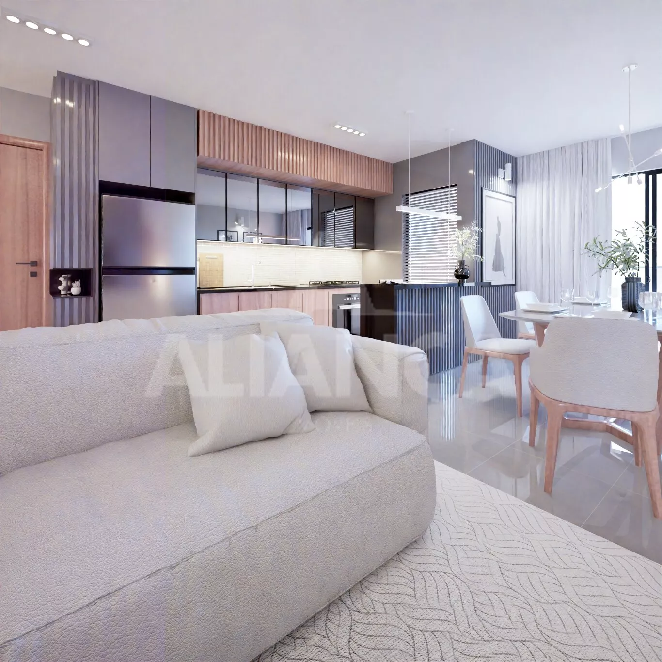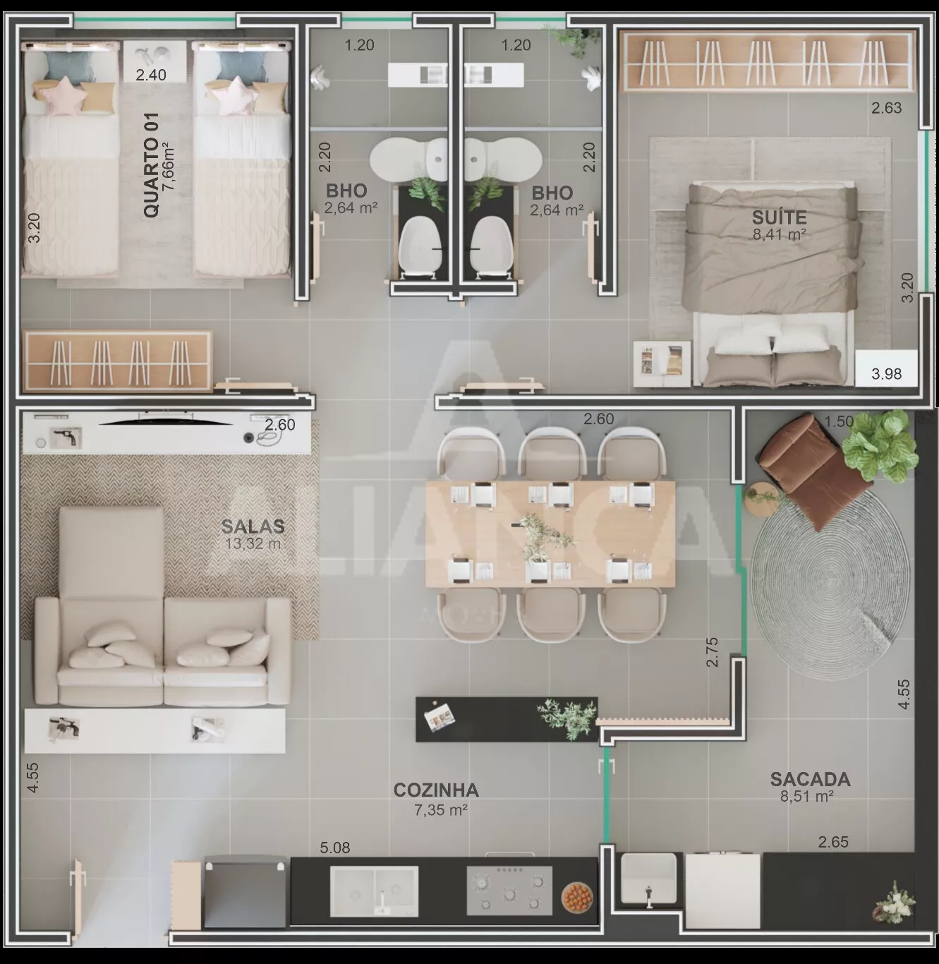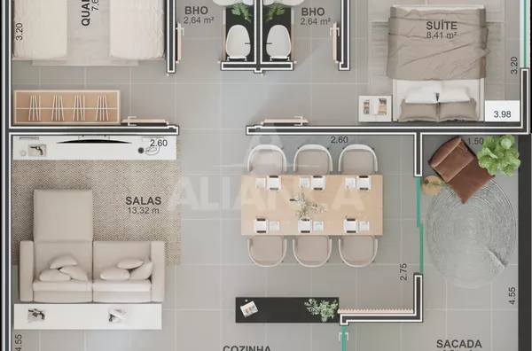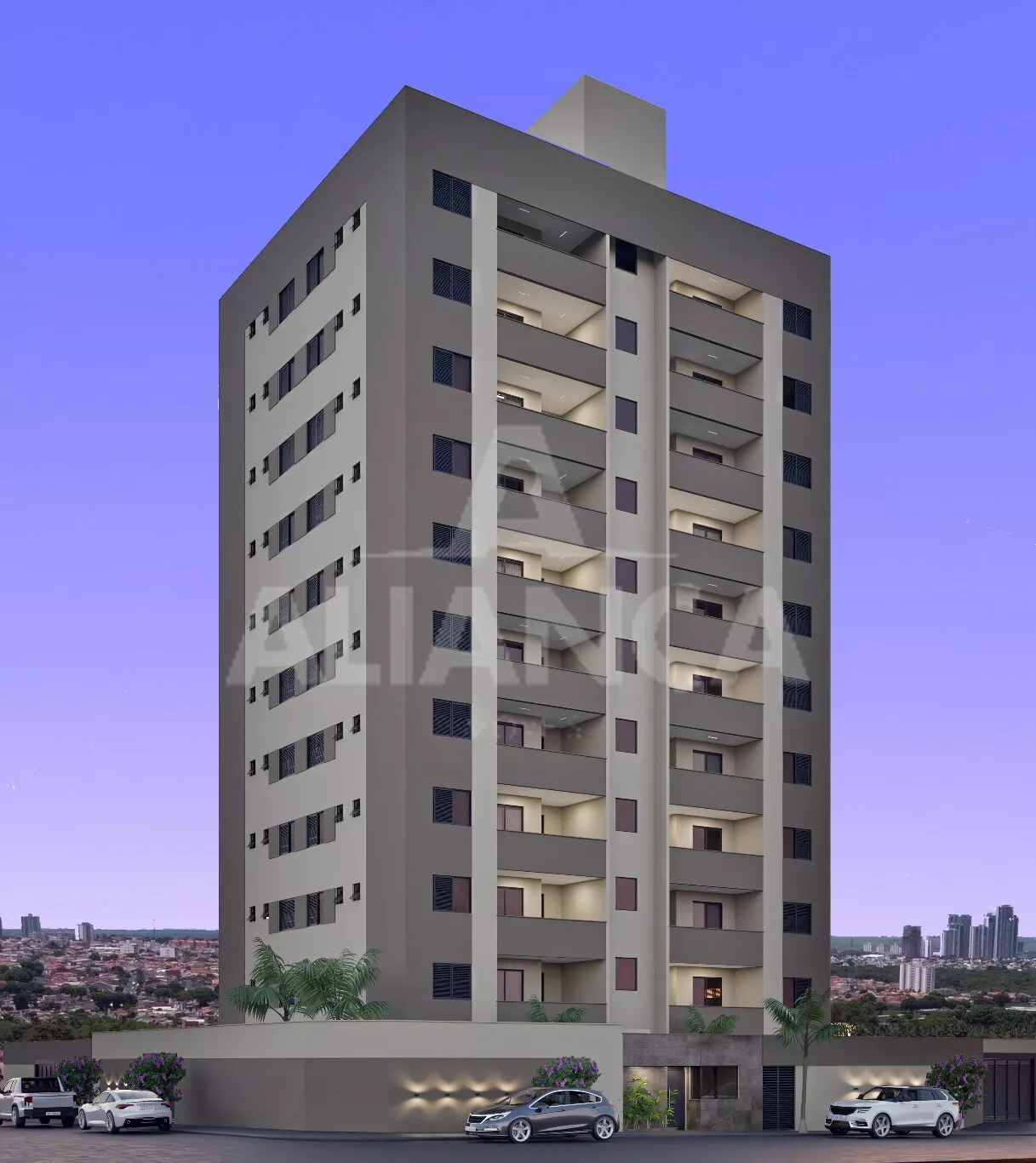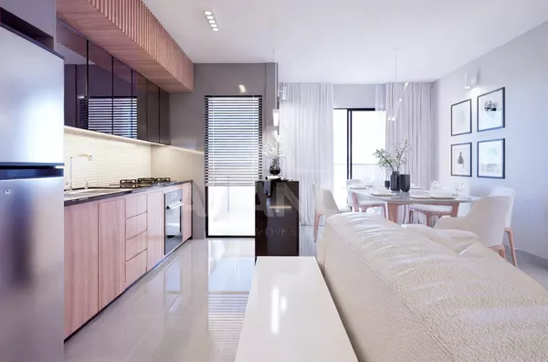 Empreendimento com 11 pavimentos, apartamentos de 02 quartos sendo 01 suíte, banheiro social, sala de estar, cozinha americana (com opção de fechar com paredes), sacada, 01 vaga de garagem, com possibilidade de adquirir vaga extra.