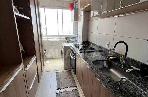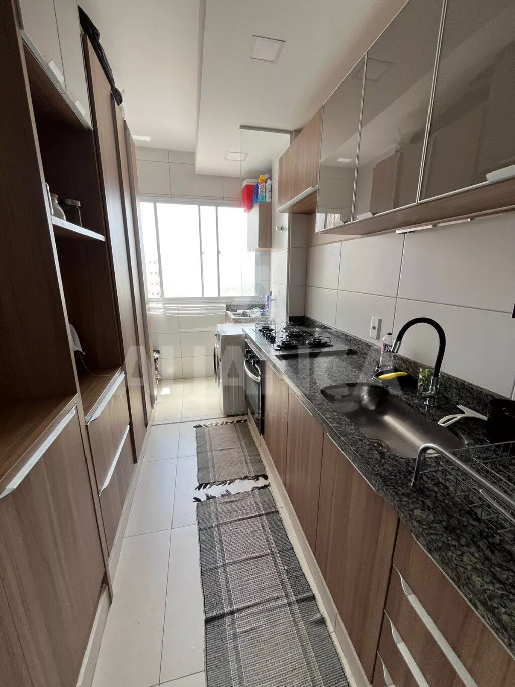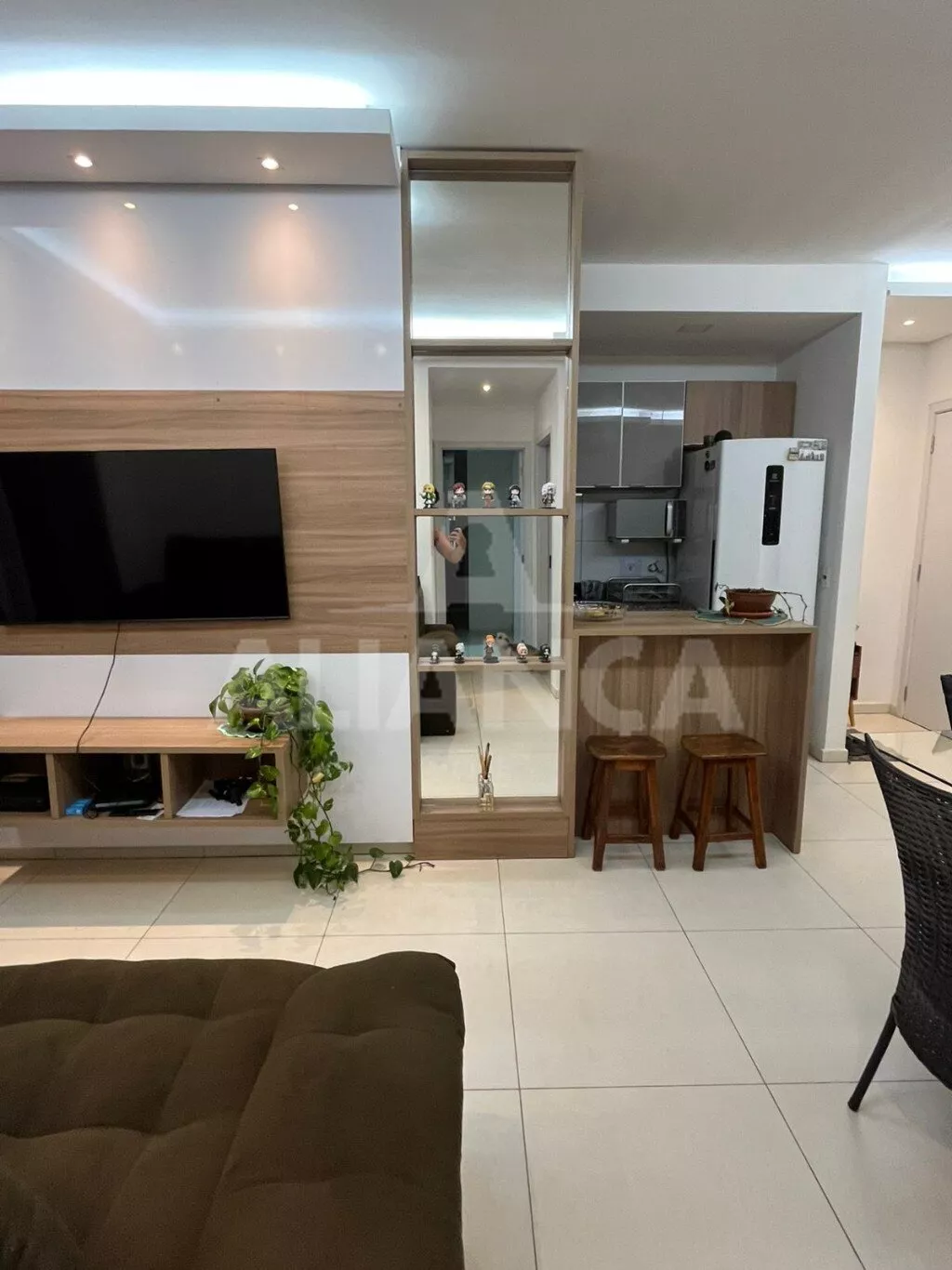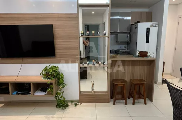 Apartamento com sala de estar em dois ambientes moveis planejados, ar condicionado. Varanda gourmet com churrasqueira, 02 quartos com armários e ar condicionado sendo 01 suíte, banheiro social com box e armário, cozinha planejada, área de serviço com armário, 01 vaga de garagem, portaria 24 horas, salão de festas, piscina adulto e infantil, quadra poliesportiva, varanda gourmet com churrasqueira, mini mercado 24 horas.