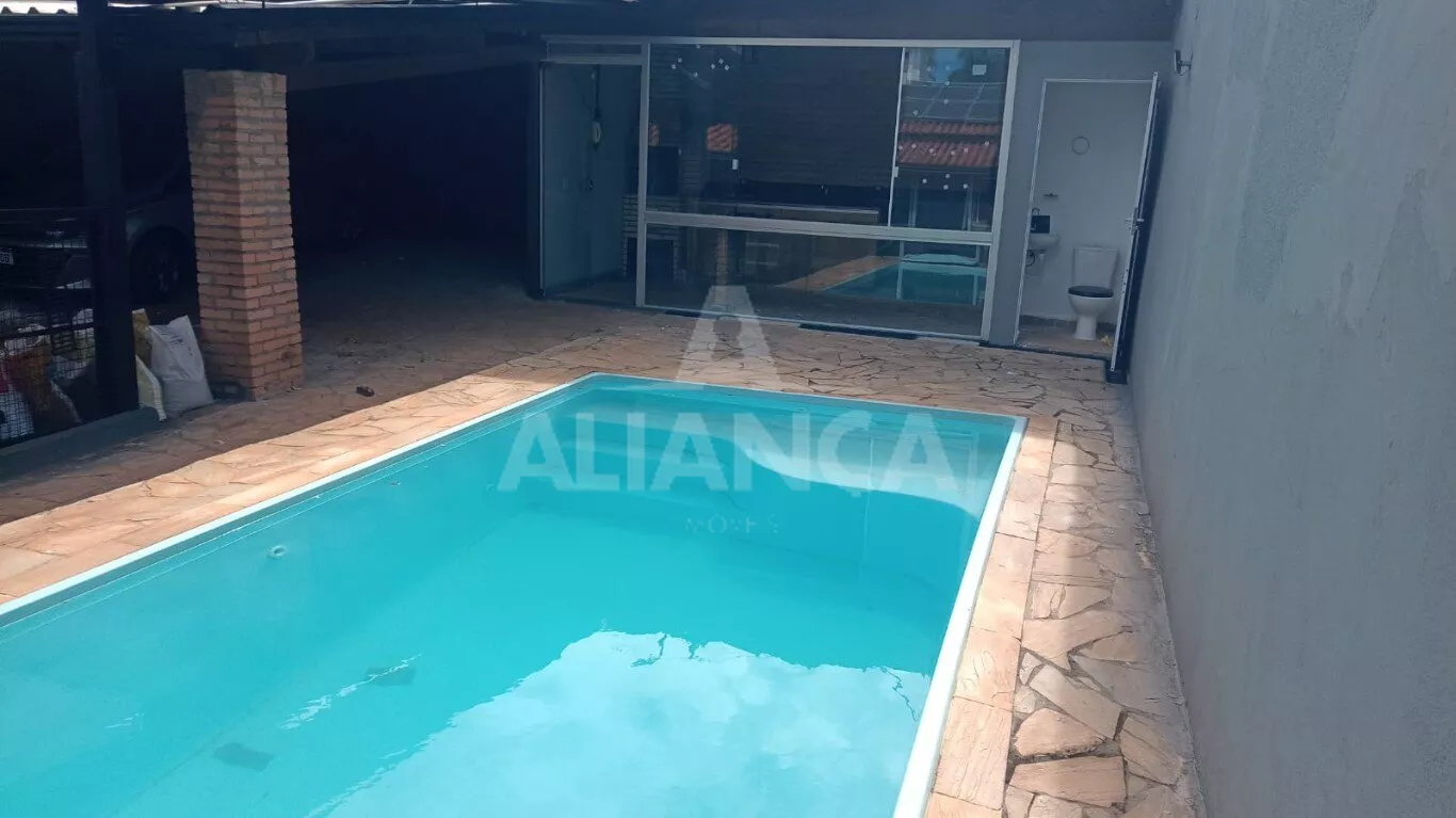 Casa térrea sendo sala de esta com varanda, lavabo, 04 quartos sendo 02 suíte e 03 com armário, banheiro social, cozinha gourmet com churrasqueira e armários, , lavanderia com armários, piscina aquecida, 04 vagas, sendo 02 coberta e 02 descoberta, energia solar, quintal, cerca elétrica, portão eletrônico.