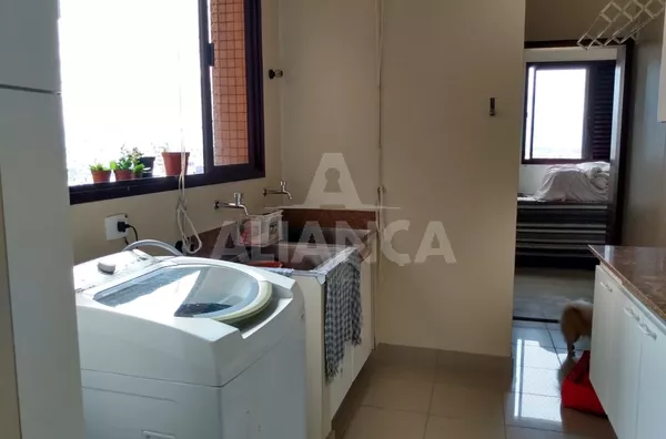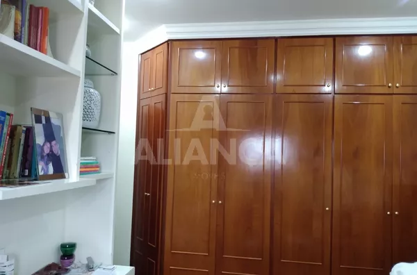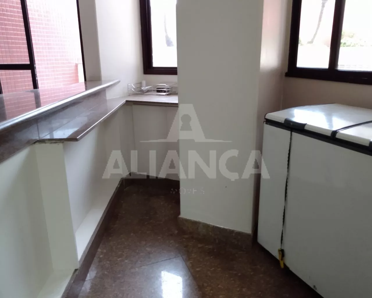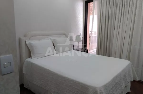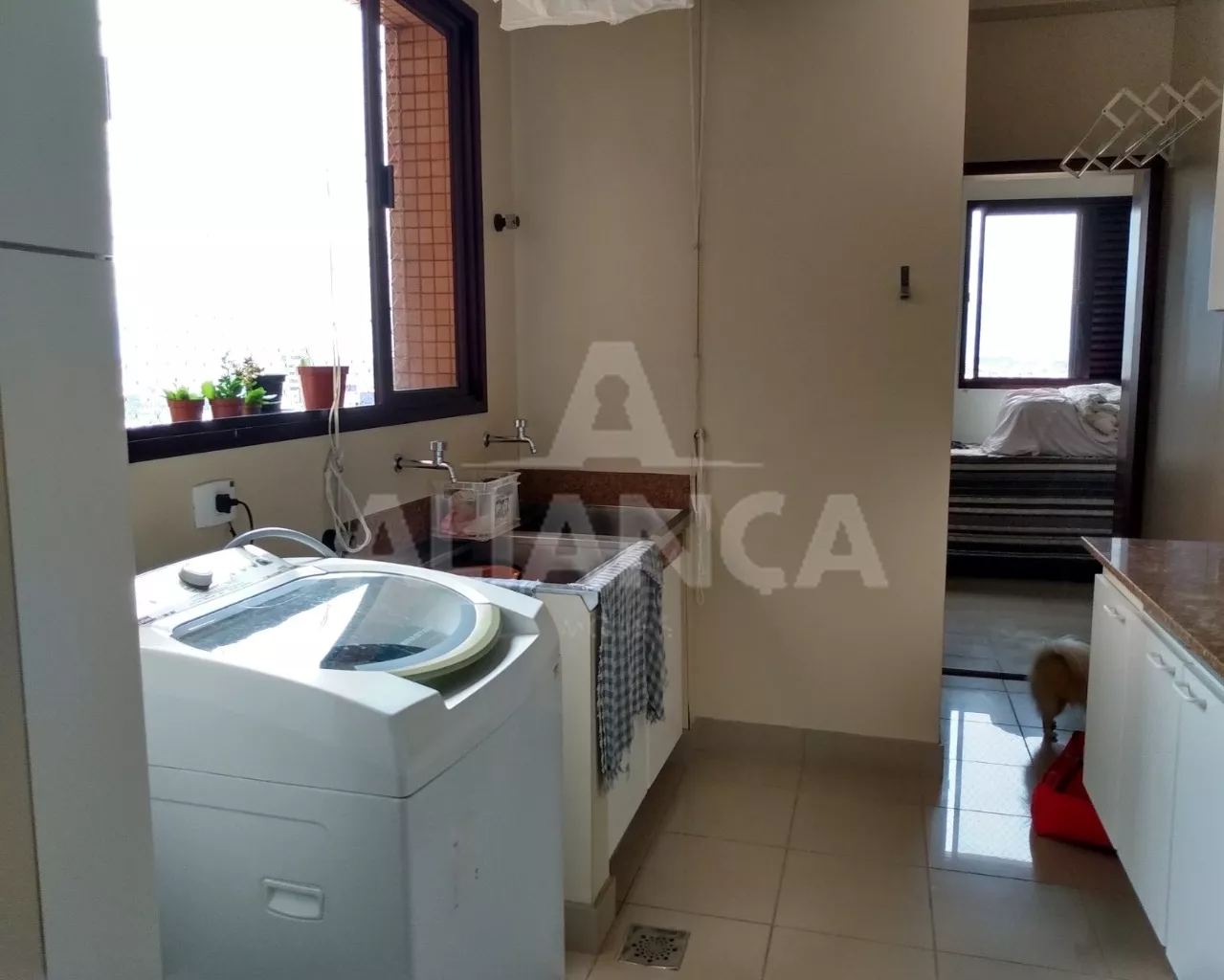 Sala de estar em 03 ambientes com varanda ampla, sala de tv, hall com armário, 03 suítes com armários, sendo 01 master com banheira, closet, varanda, cozinha planejada, área de serviço com armários, despensa, dependência completa de empregada, 02 vagas de garagem, salão de festas, academia, piscina, sauna, portaria 24 hs, 02 elevadores, andar alto com vista privilegiada, SOMENTE UM APARTAMENTO POR ANDAR.