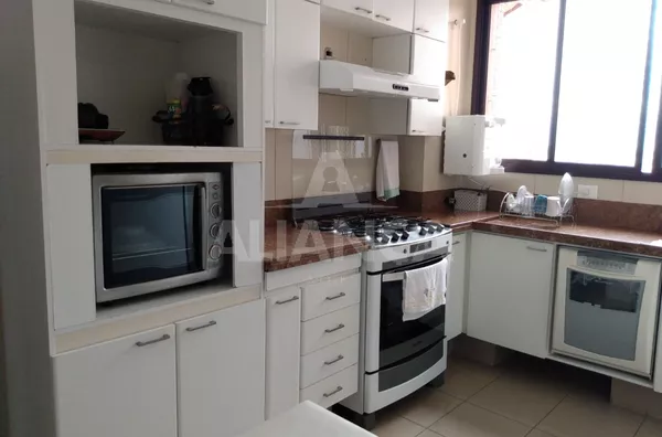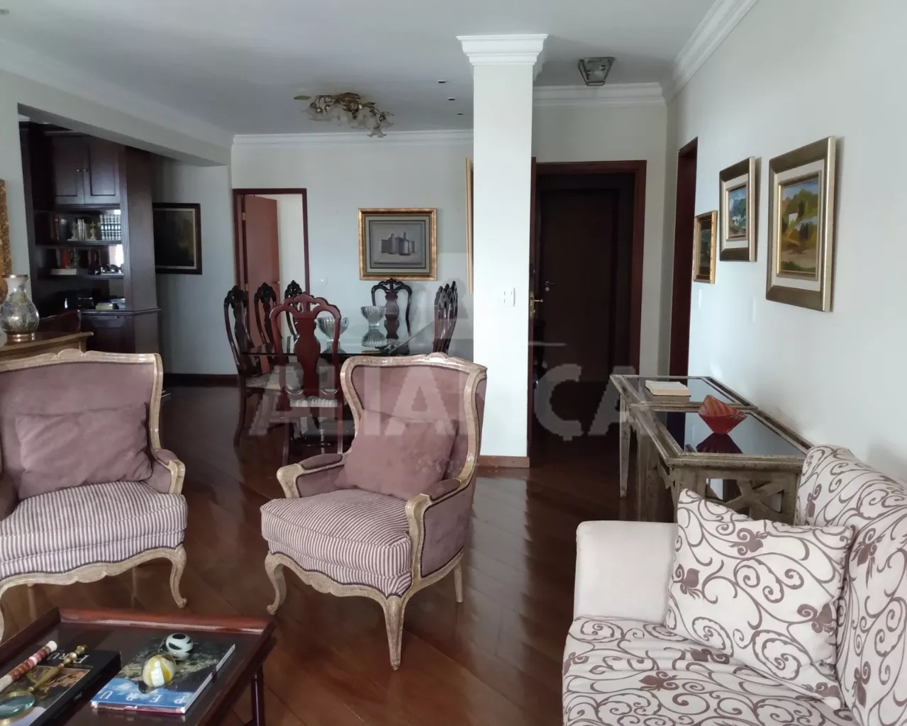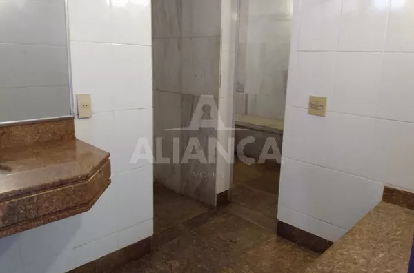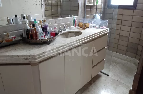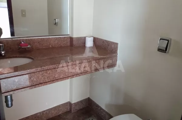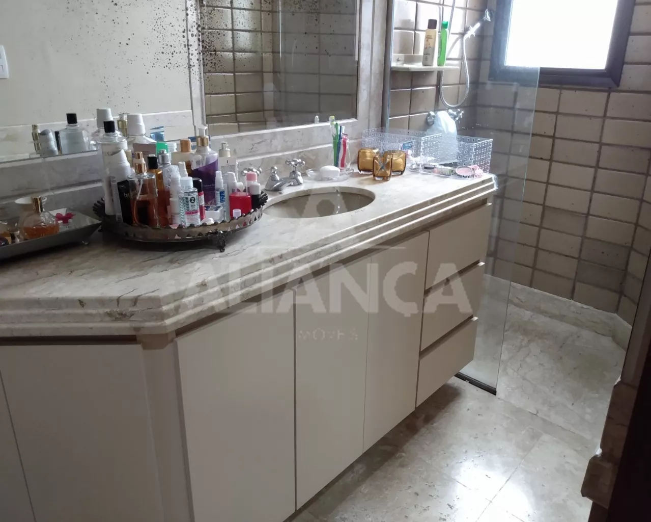 Sala de estar em 03 ambientes com varanda ampla, sala de tv, hall com armário, 03 suítes com armários, sendo 01 master com banheira, closet, varanda, cozinha planejada, área de serviço com armários, despensa, dependência completa de empregada, 02 vagas de garagem, salão de festas, academia, piscina, sauna, portaria 24 hs, 02 elevadores, andar alto com vista privilegiada, SOMENTE UM APARTAMENTO POR ANDAR.