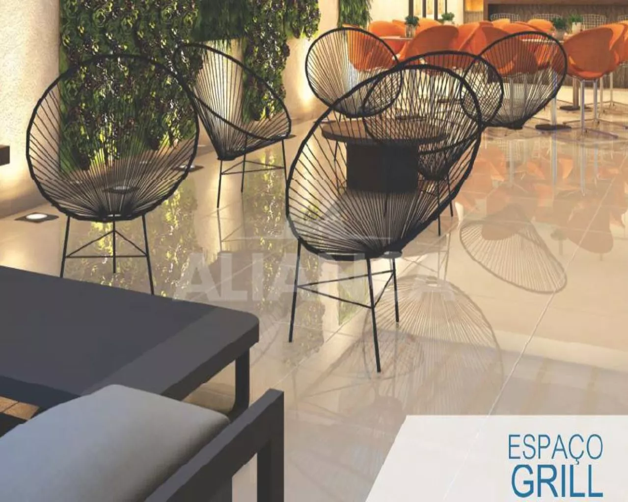 Sala de estar em dois ambientes com varanda gourmet, 03 quartos sendo 01 suíte com closet, banho social, cozinha, área de serviço, 02 vagas de garagem, elevador, espaço fitness, salão de festas, espaço kids, home cinema,espaço saúde, espaço massagem, espaço beleza, espaço office, espaço grill, espaço chef, bicicletário, espaço jogos. localização privilegiada de fácil acesso.