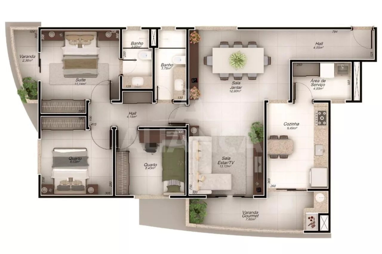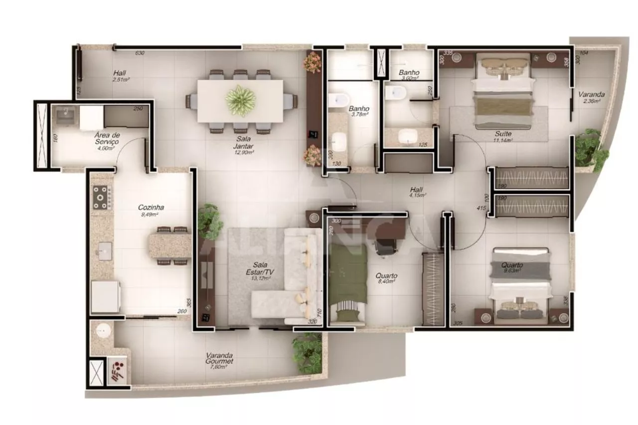 Pronto para morar, 116 metros sendo: Sala ampla com varanda gourmet, 03 quartos sendo 01 suíte com armários, banheiro social, cozinha, área de serviço, iluminação, 02 vagas de garagem, 02 elevadores. O condomínio possui salão de eventos, academia, espaço de convivência, deck seco e molhado, piscina para crianças, a poucos metros do shopping, fácil acesso, localização privilegiada. A área comum mobiliada.